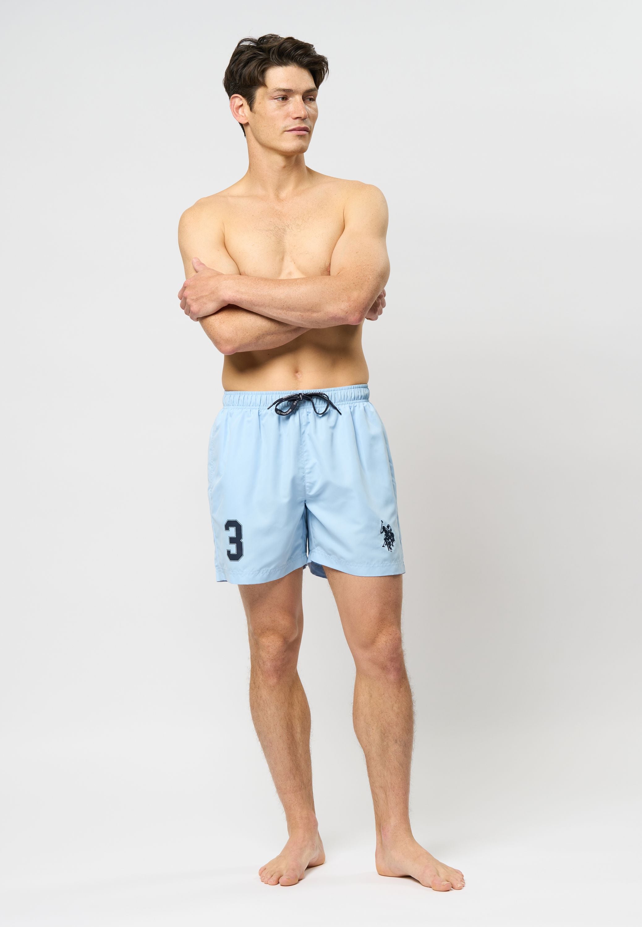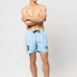 Alexander är våra badshorts med extra sportig design. De har en nummer tre på benet, vilket är en referens till polosporten, eftersom det indikerar den bästa spelaren på planen. Alexander har mesh inuti och en större logga på benet samt spetsar och resår i midjan.