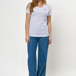 Amy är vår klassiska bas-T-shirt för kvinnor. Amy är ett måste i varje garderob och finns i en mängd olika färger. T-shirten är Slim Fit vilket gör att den sitter snyggt och går att kombinera med både jeans och träningsbyxor – beroende på tillfälle. Amy har vår logga broderad på bröstet.
