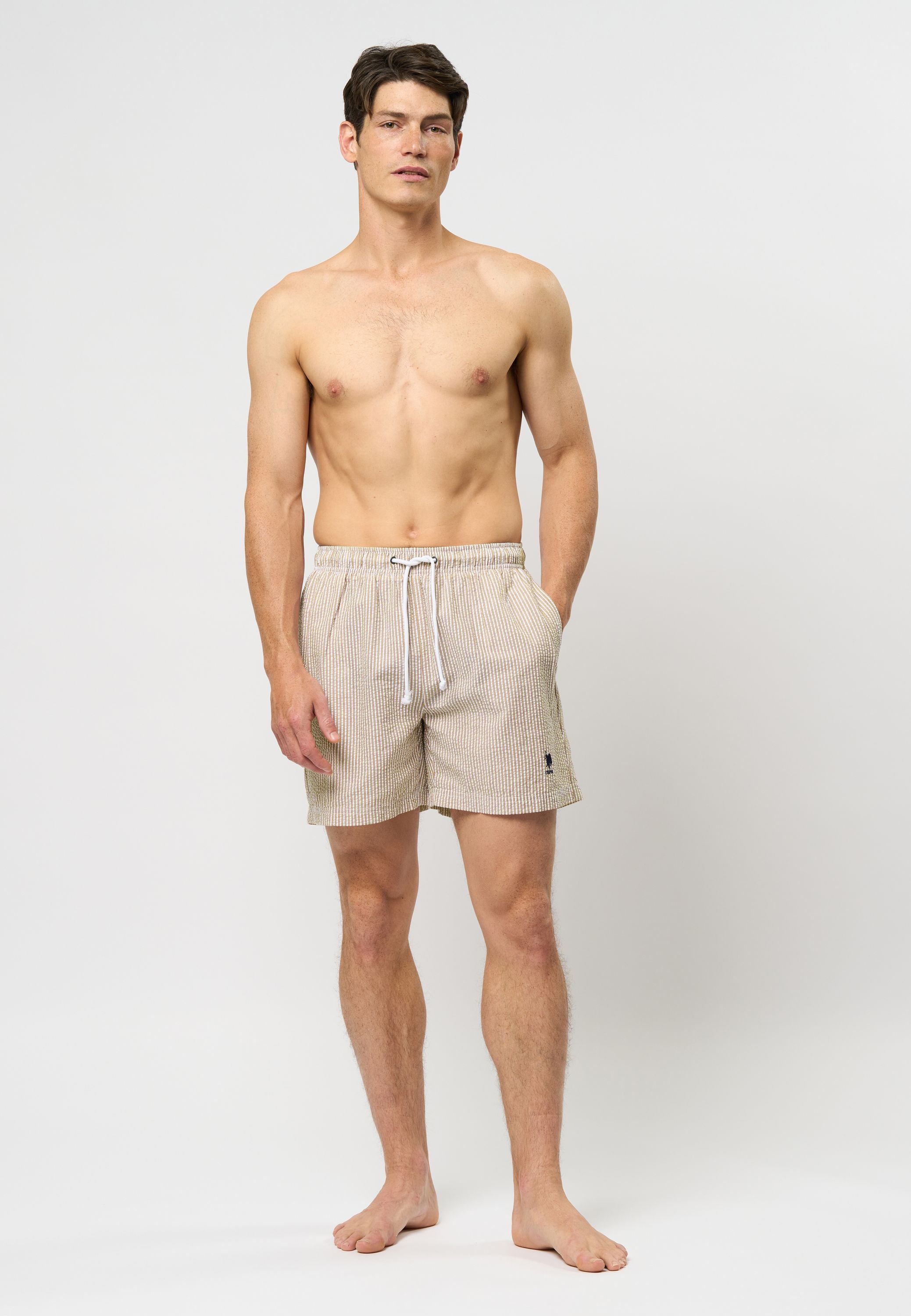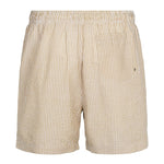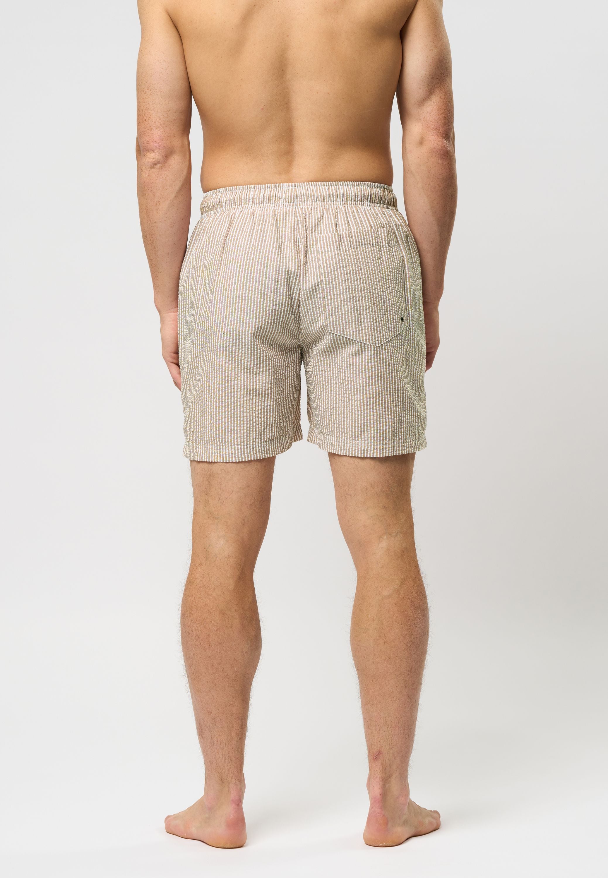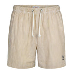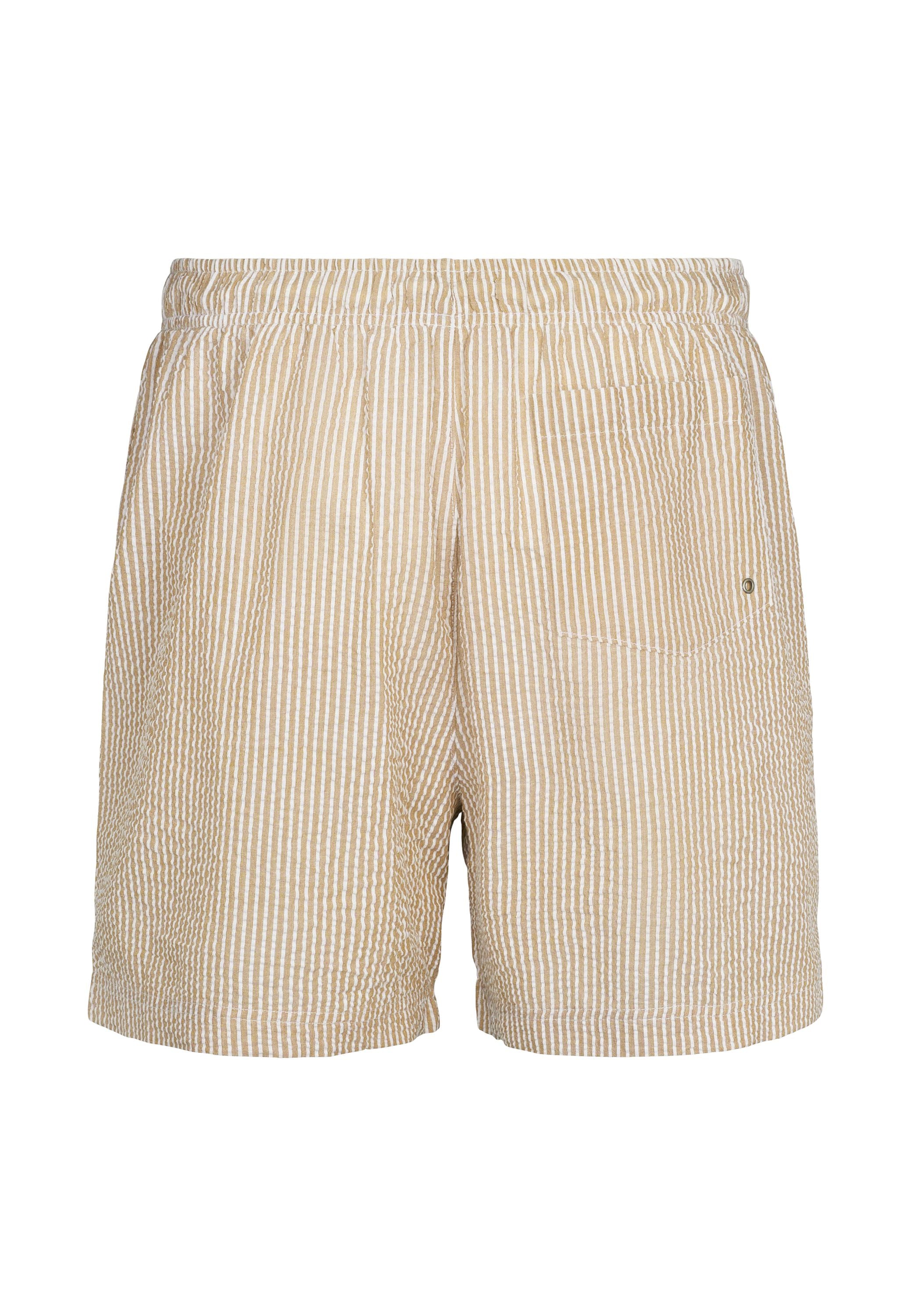 Briggs är ett par snygga och moderna badshorts med resår och dragsko i midjan. De har mesh på insidan och vår logotyp broderad på ena benet. Briggs är tillverkad i ett bäckebölja-kvalitet och har tunna ränder för en sofistikerad look. Ett perfekt val för en dag vid vattnet med stil.