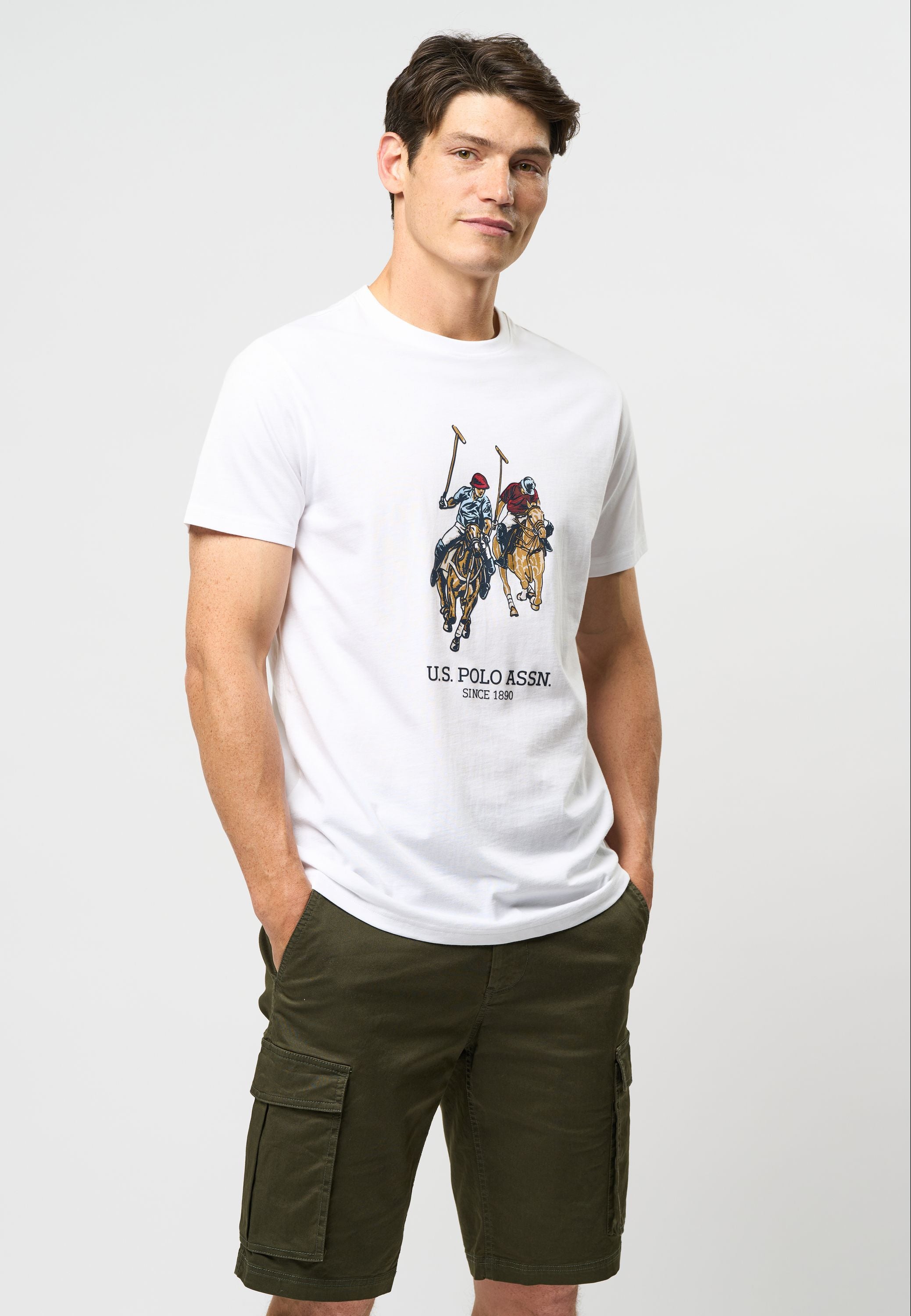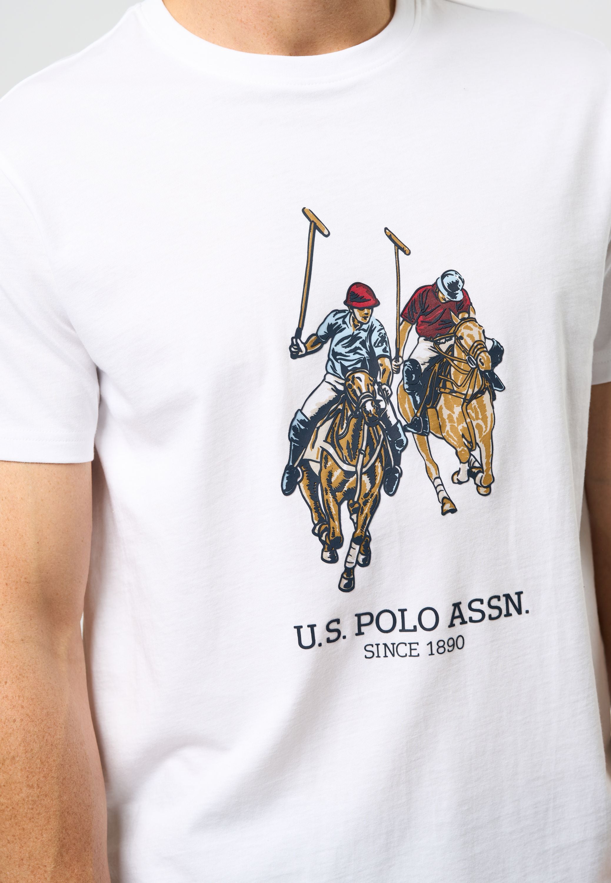 Eivind är en klassisk T-shirt som kan användas för alla tillfällen. Den har ett stort tryck på magen på våra igenkännbara polospelare och varumärke. Eivind har en rund hals.