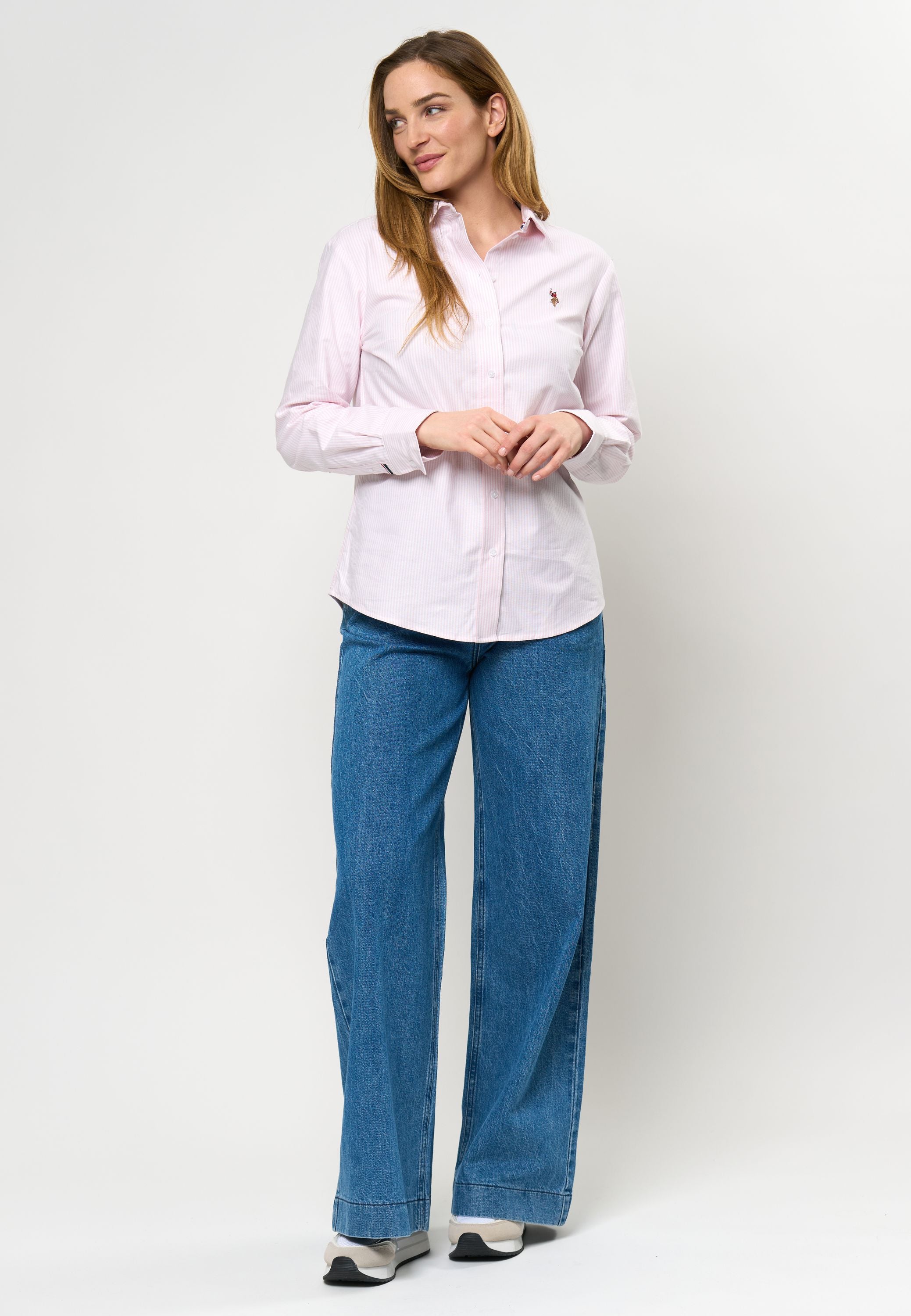 Gina är en klassisk skjorta med en tidlös siluett, perfekt för både vardag och fest. Med en knapp framtill, klassisk krage och vår eleganta logotyp broderad på bröstet är denna skjorta ett mångsidigt val för alla garderober.