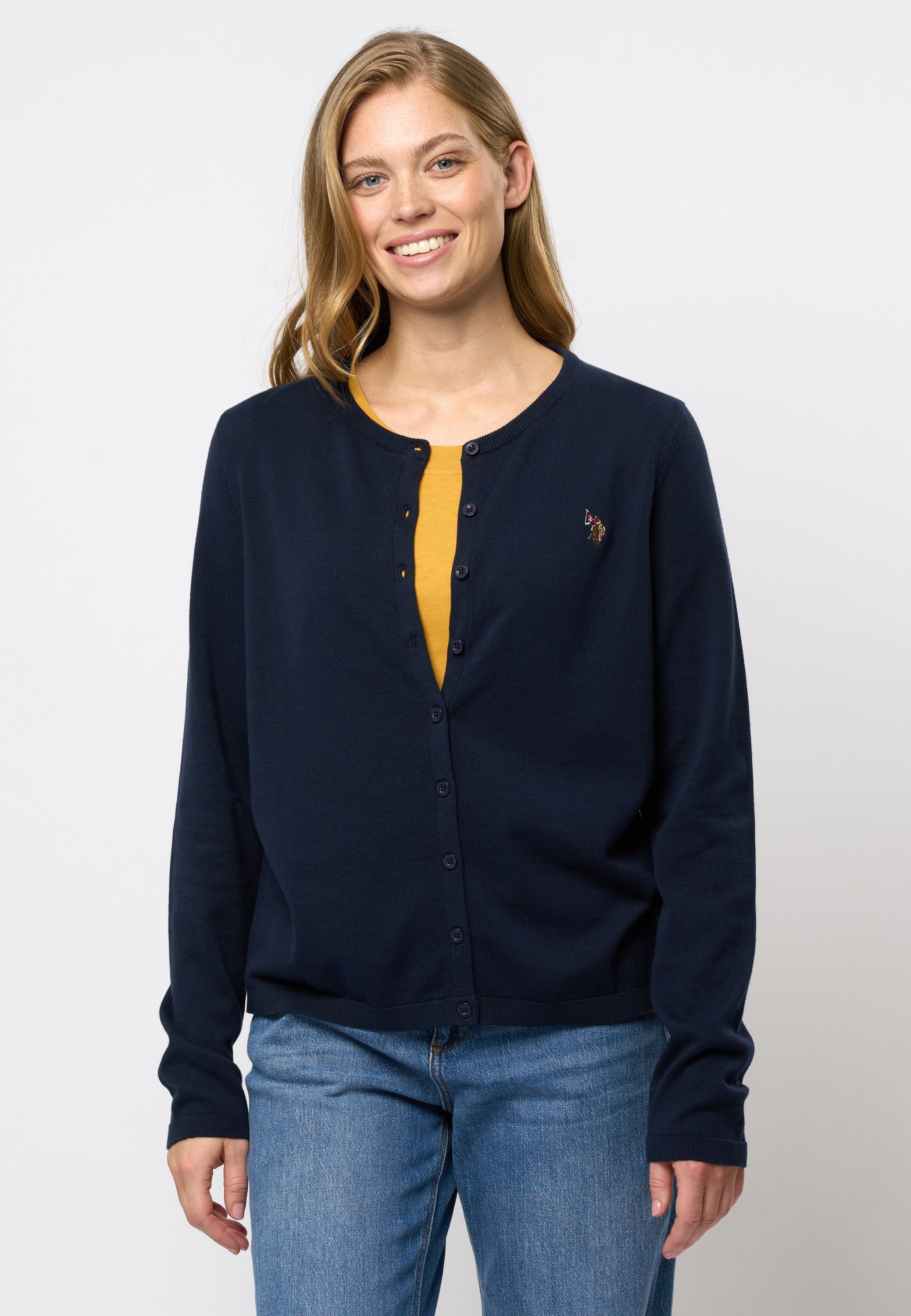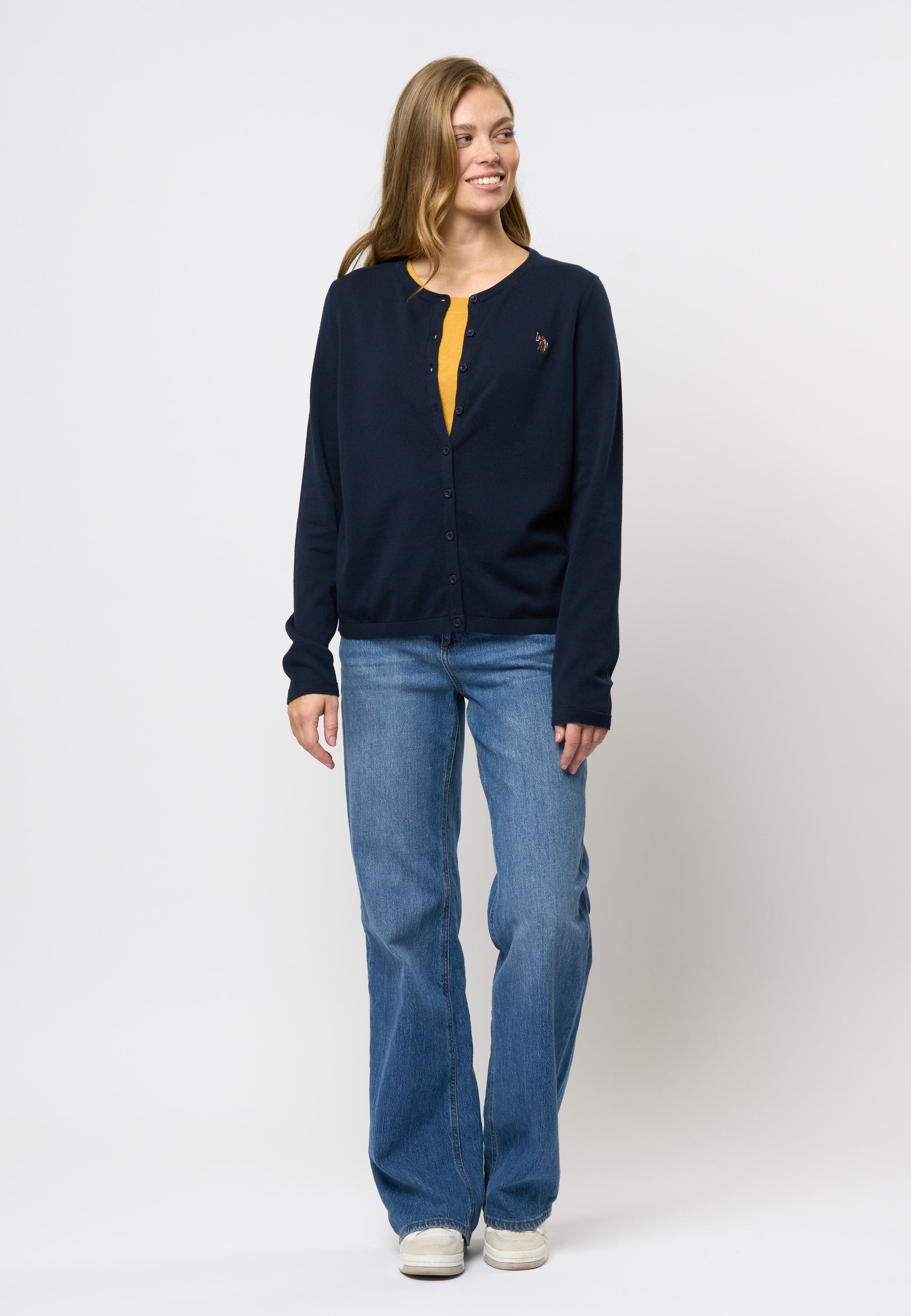 Kimmi är en klassisk cardigan med ett enkelt, feminint uttryck. Den har en fin och lätt kvalitet, rund halsringning och en elegant knäppning framtill. Cardiganen pryds av en diskret, broderad logga på bröstet, och den bekväma passformen gör den perfekt som ett lätt plagg både till vardags och på kontoret. Bär den öppen över en topp eller stängd för en mer stilren look.