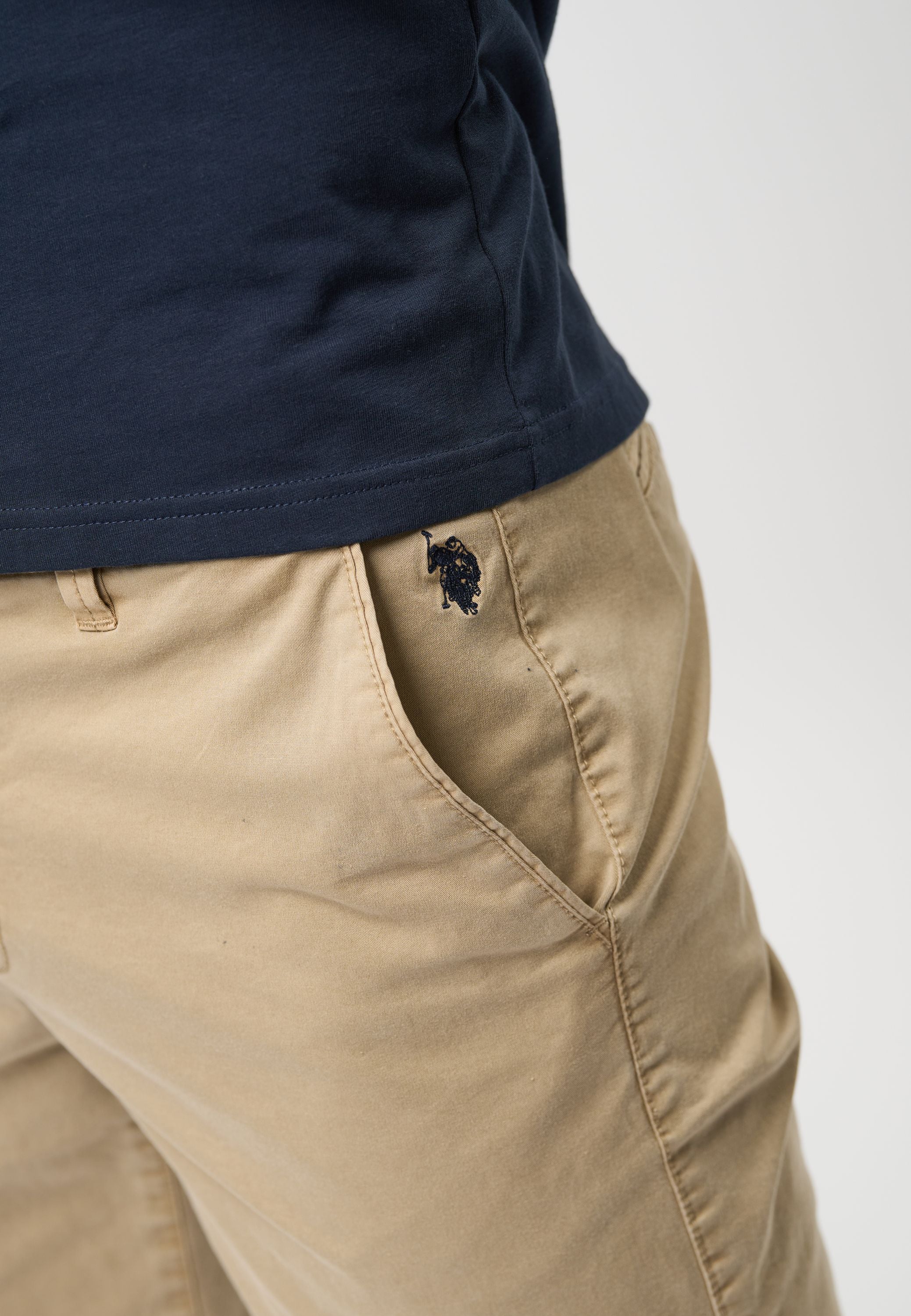 Lasse är våra klassiska chinoshorts som kombinerar komfort och stil. Dessa shorts är designade med fickor både på sidorna och bak samt en diskret broderad logotyp som ger en elegant touch. Det lätta stretchmaterialet ger en bekväm passform och gör Lasse perfekt till både vardag och somriga tillfällen.