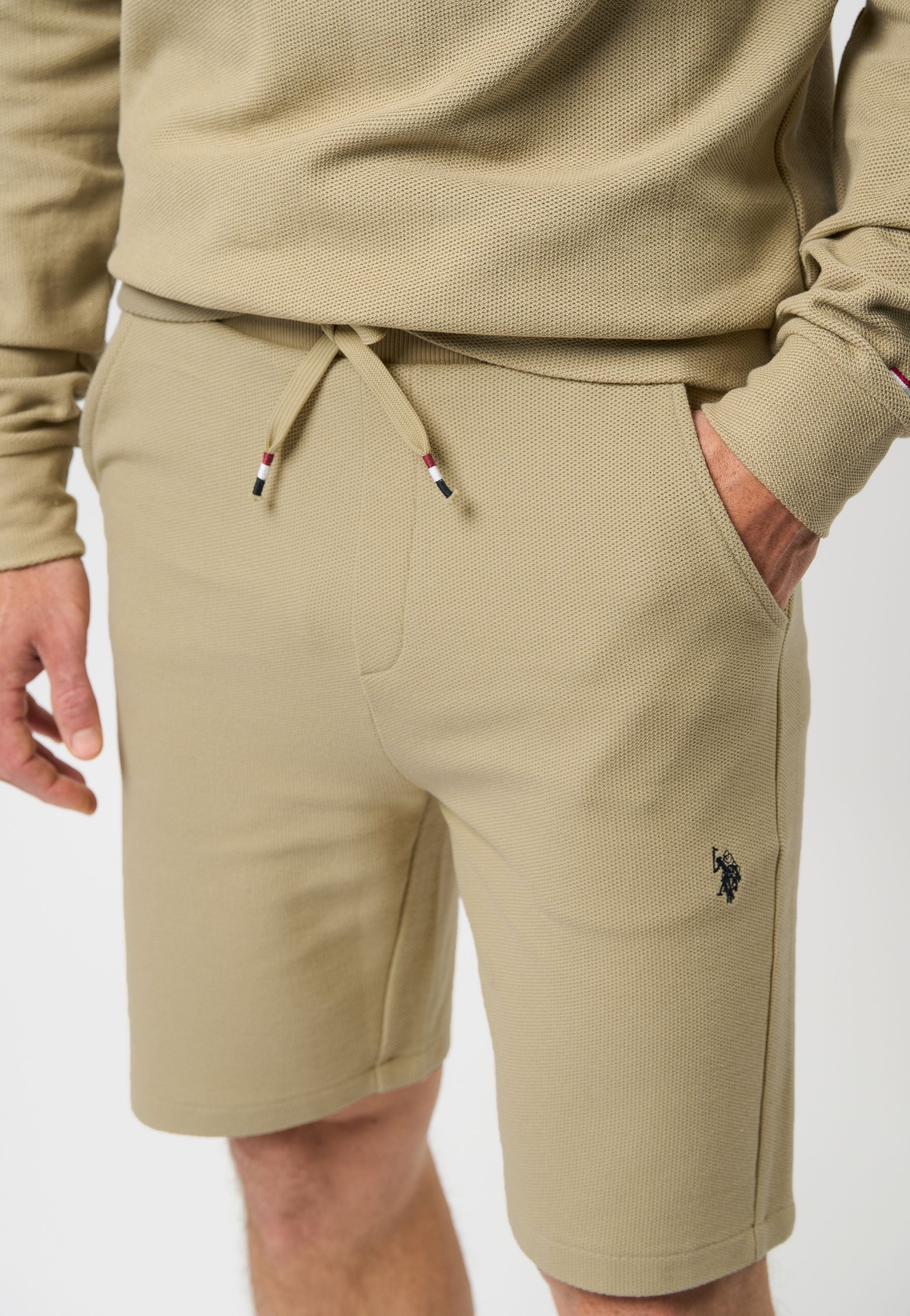 Våra shorts Malik är det perfekta valet till sommarens avslappnade och stilfulla stunder. De är tillverkade i ett snyggt piqué-kvalitet, som ger en unik look och hög komfort. Med sidfickor och justerbar midja med dragsko erbjuder de både funktionalitet och flexibilitet. Den ikoniska broderade logotypen på låret tillför en sportig detalj. Kombinera dem med vår sweatshirt Malo för ett komplett set.