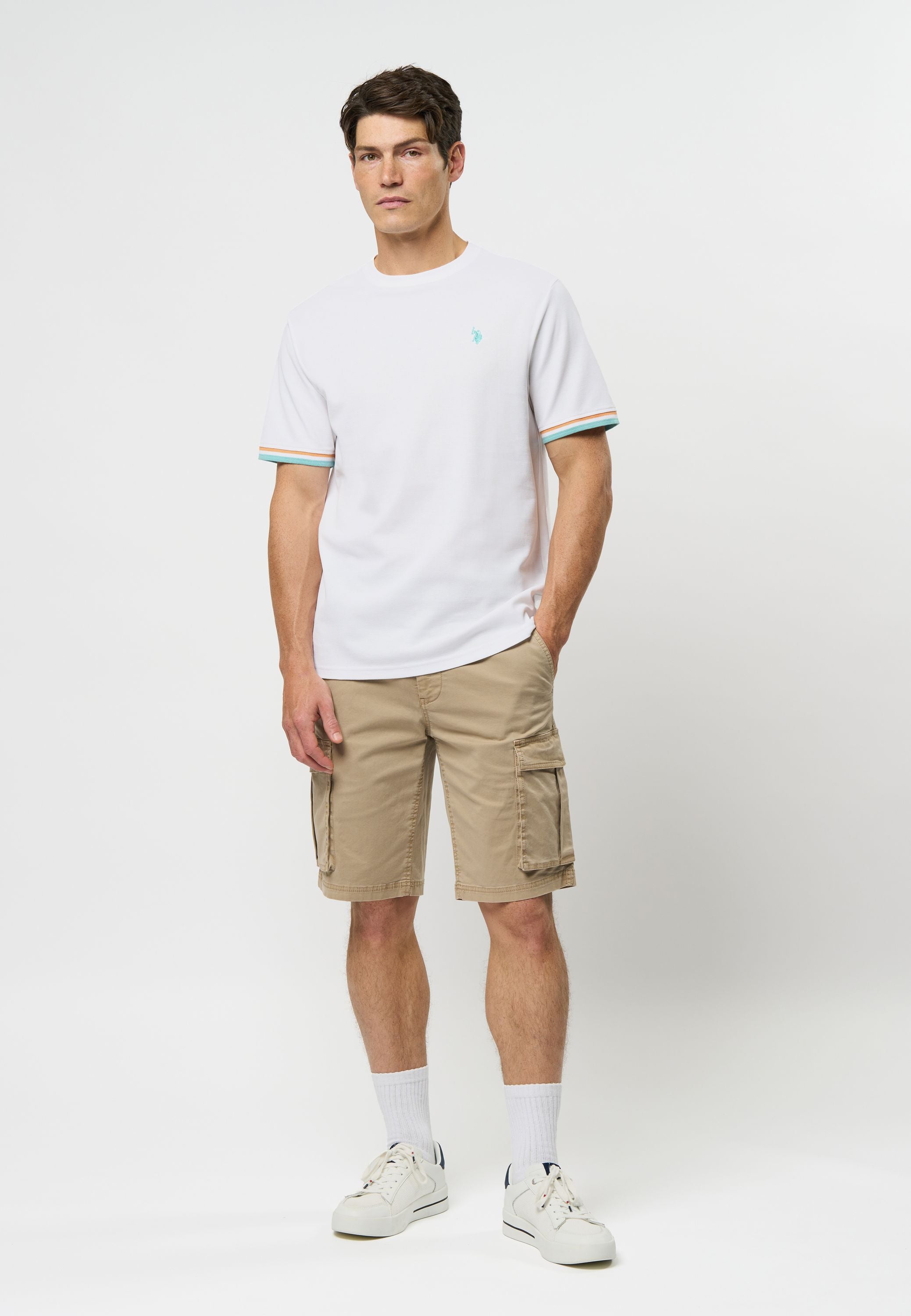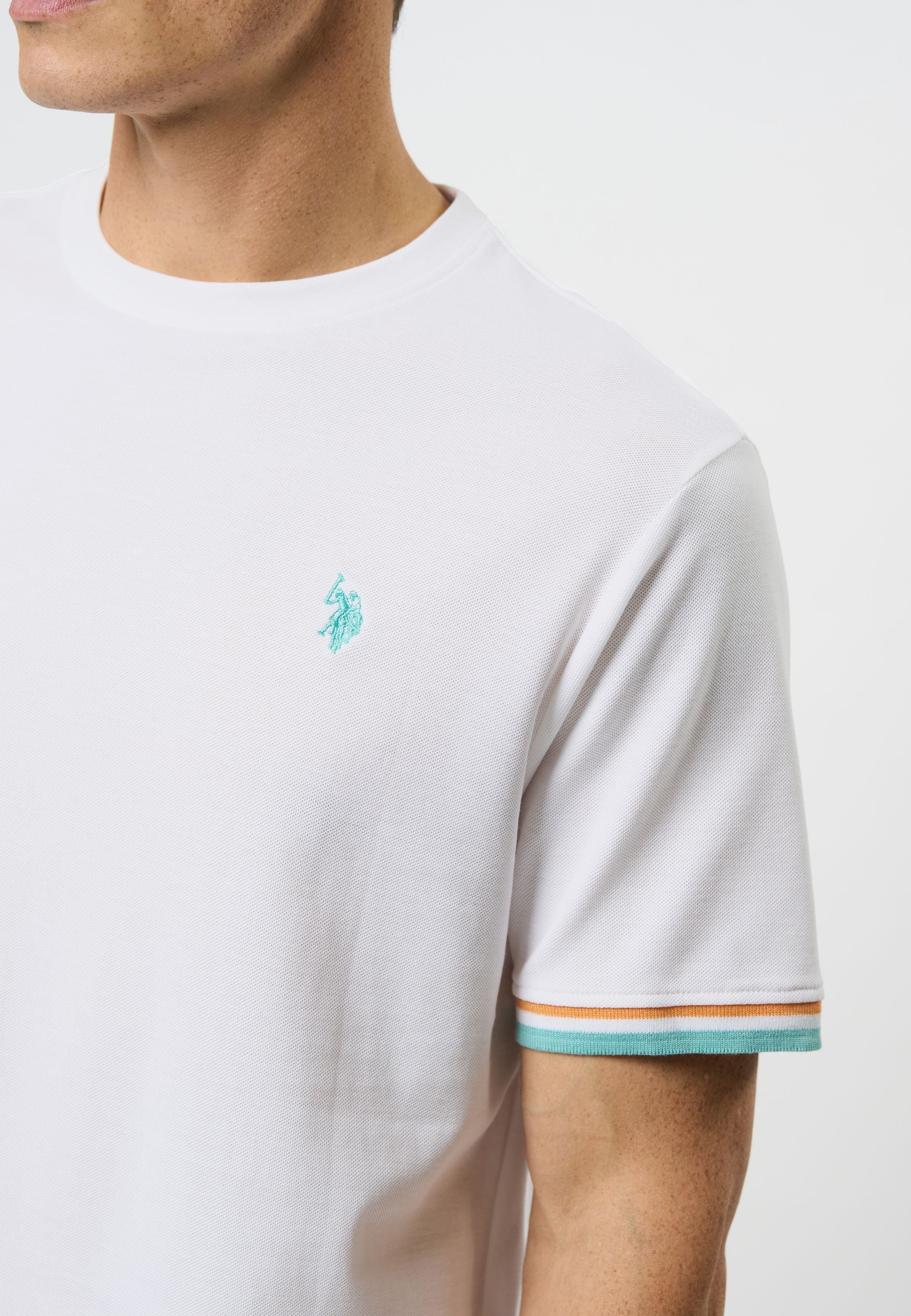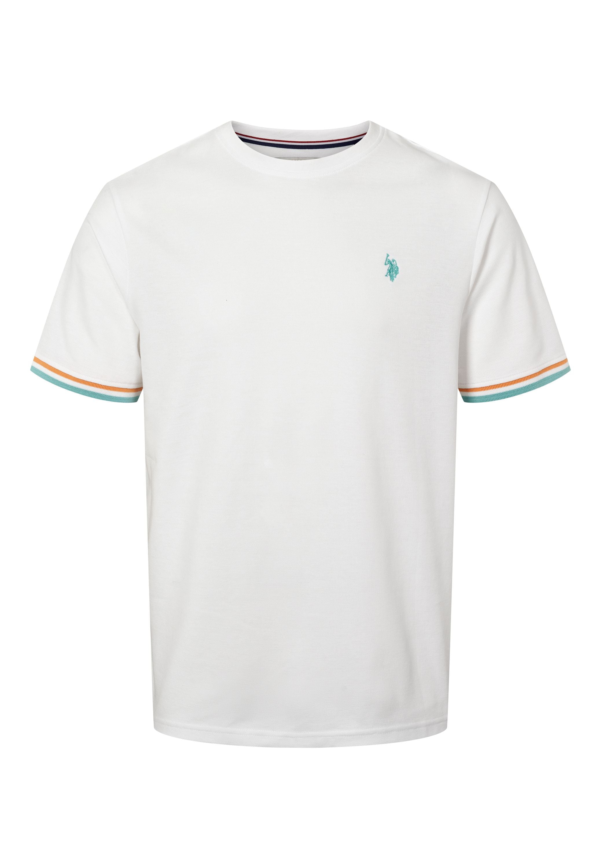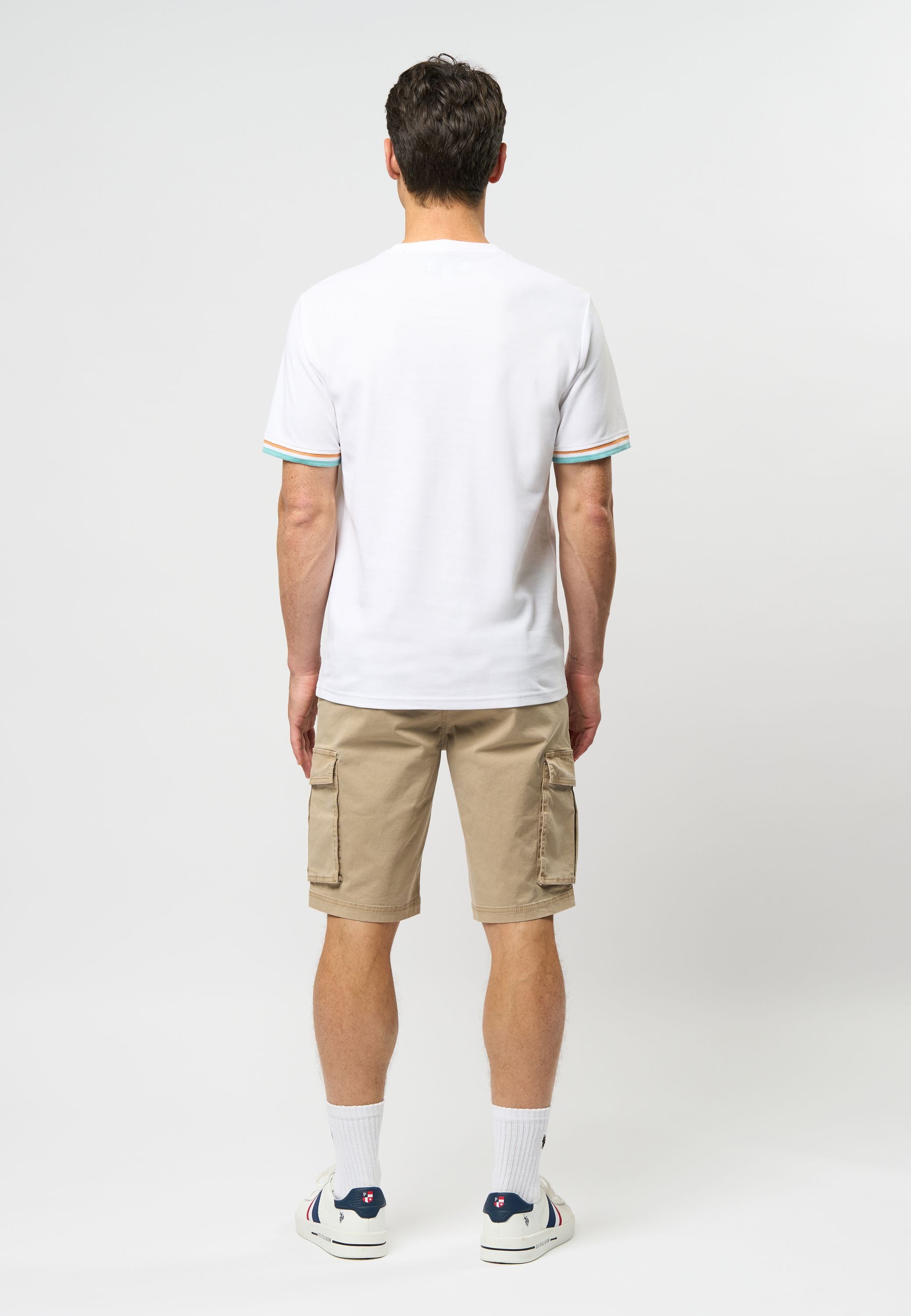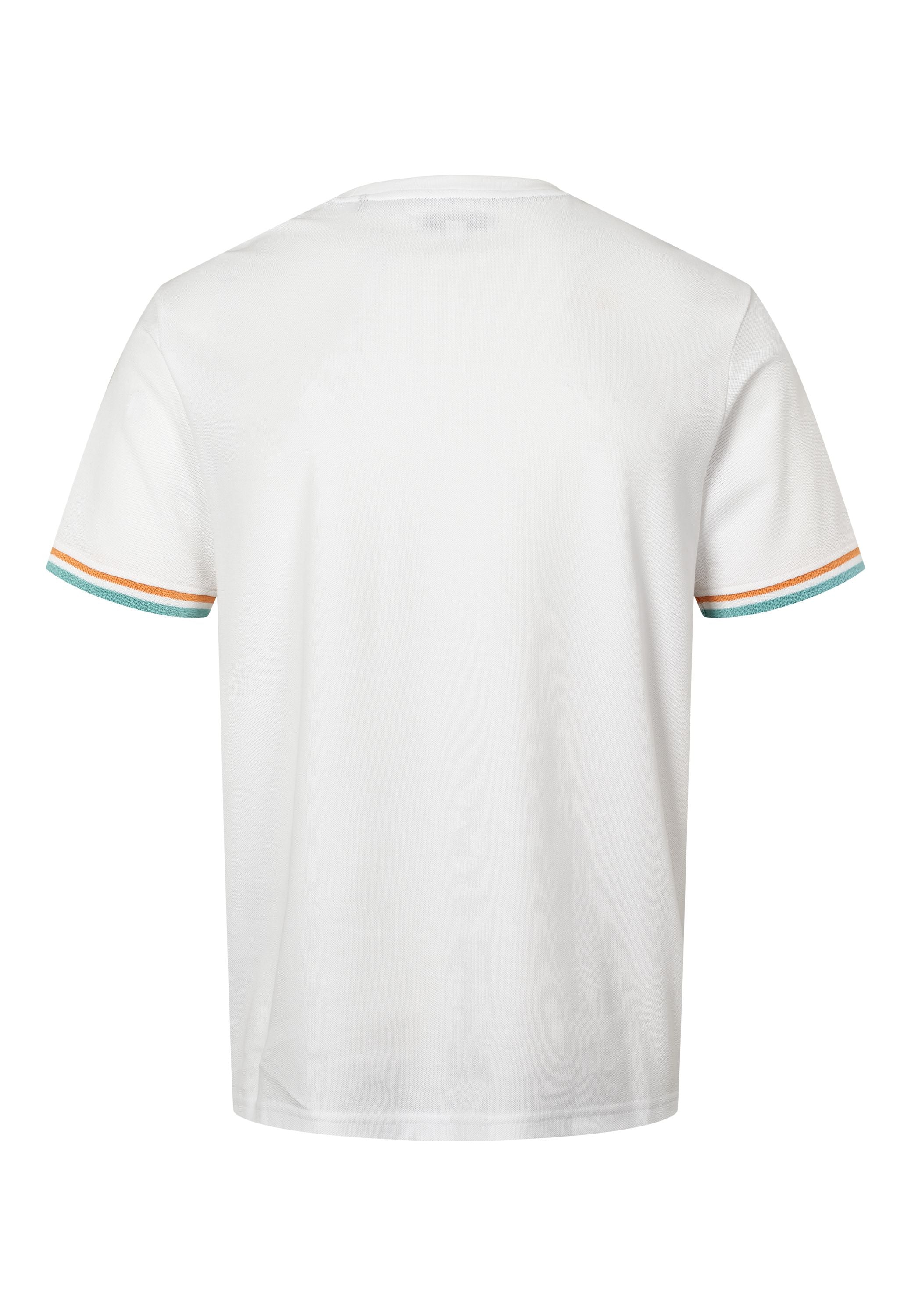 Nils är en tidlös T-shirt med en ren och modern design. De korta ärmarna och den runda halsringningen skapar en enkel och elegant look, medan de kontrastfärgade ränderna på ärmarna skänker en sportig twist. Den broderade logotypen på bröstet fungerar som en elegant detalj som fulländar T-shirtens raffinerade look. Perfekt till både lediga dagar och vardagsbruk då det är fokus på både komfort och stil.