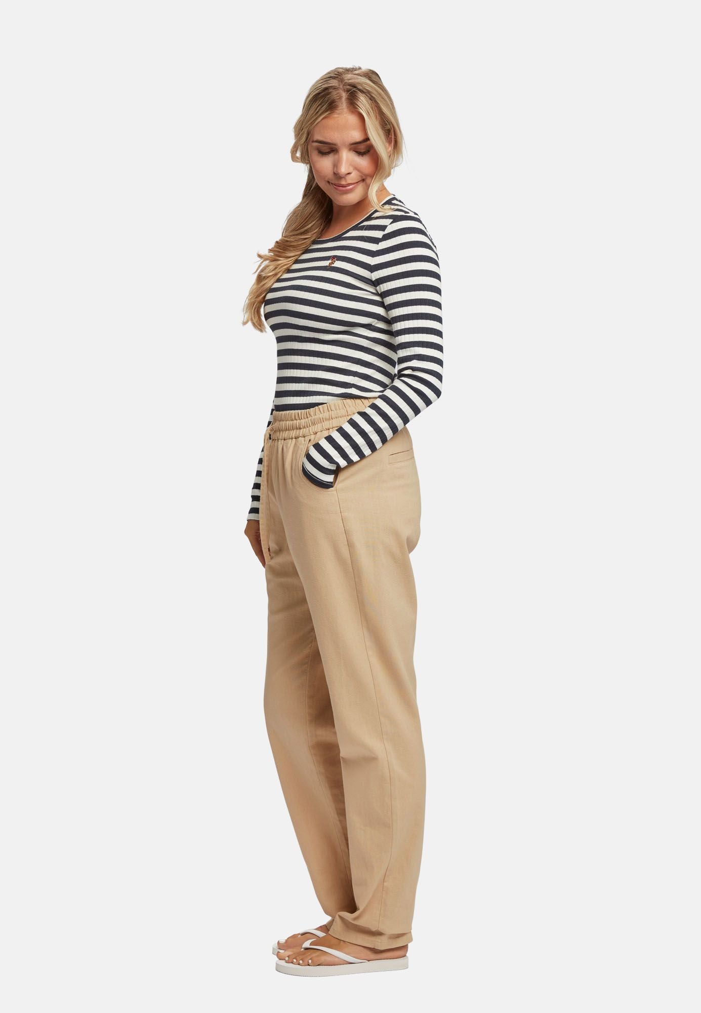 Claire är ett par härliga sommarbyxor gjorda av en blandning av linne och bomull, vilket gör dem superbekväma att bära och ger en lätt känsla. De har dragsko i midjan, fickor och lite vidd i benen. Även om Claire är en lättviktsbyxa är de inte genomskinliga. Köp Claire tillsammans med vår linneskjorta Else för ett komplett set.