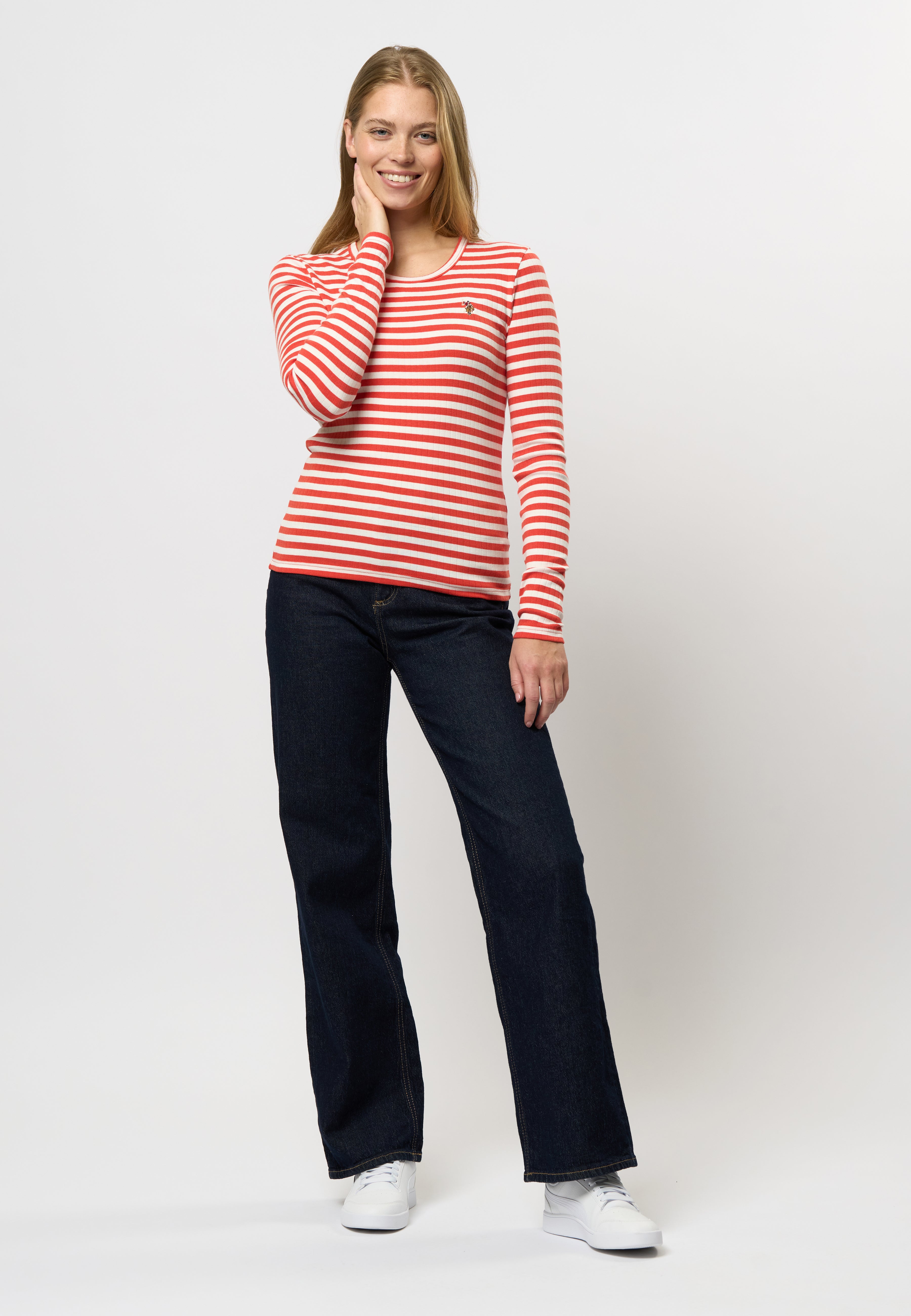 Chanett är en modern långärmad T-shirt med rund hals och sofistikerade ränder. Vår Chanett T-shirt har ett brett 9x1 ribb och vår logotyp broderad i färger på bröstet. Chanett är ett måste i varje kvinnas garderob och kan bäras ensam eller under en kavaj för lite lek.