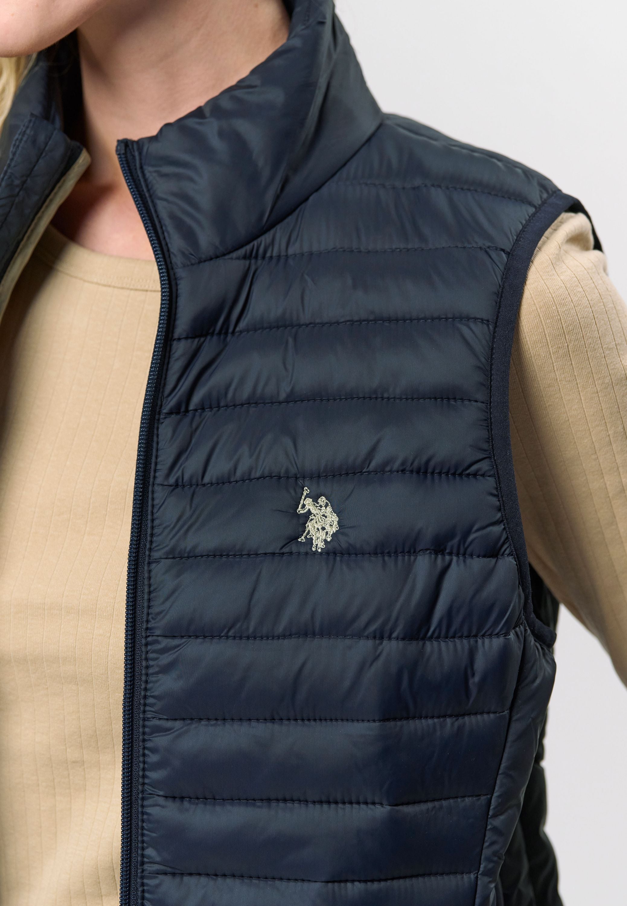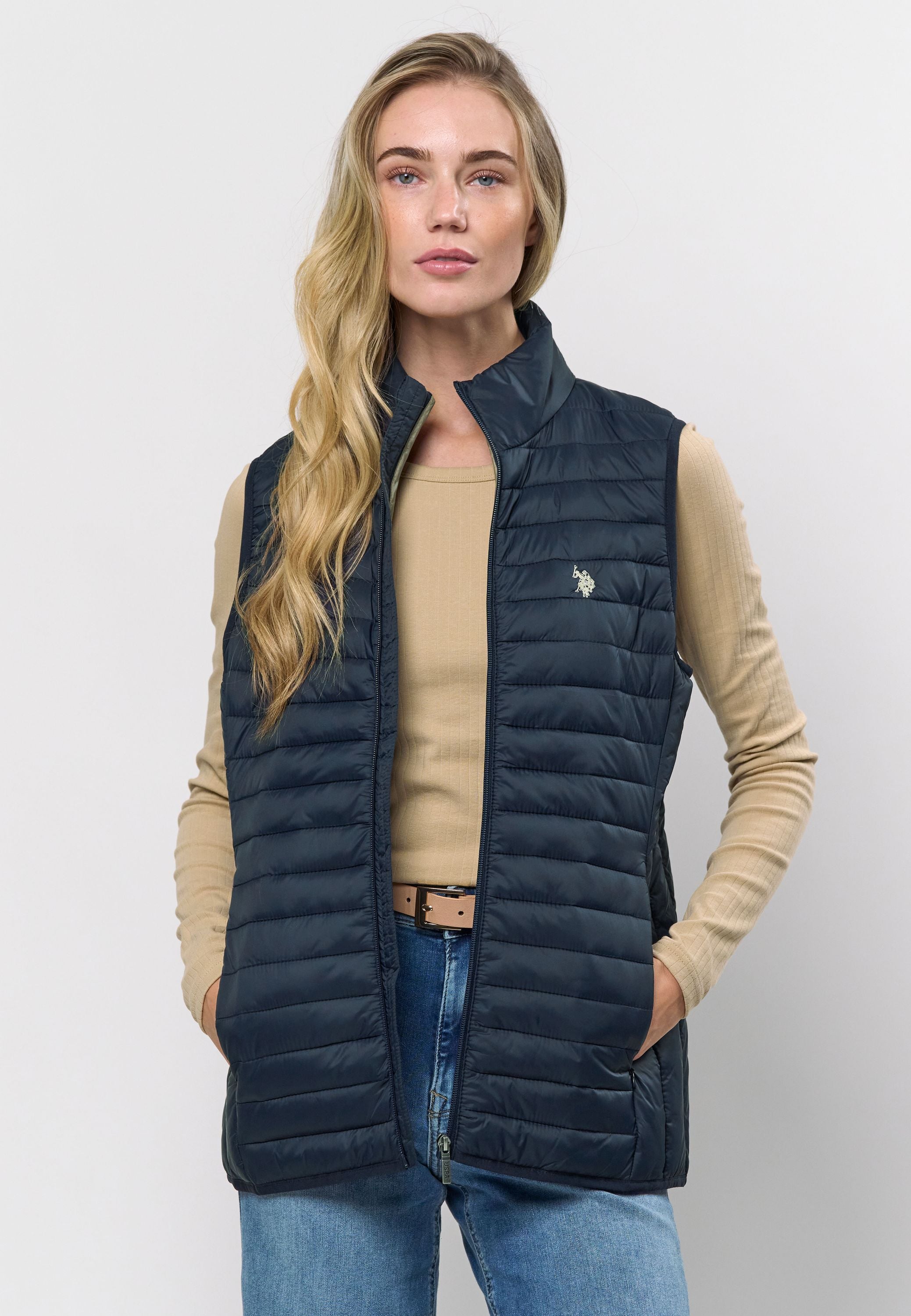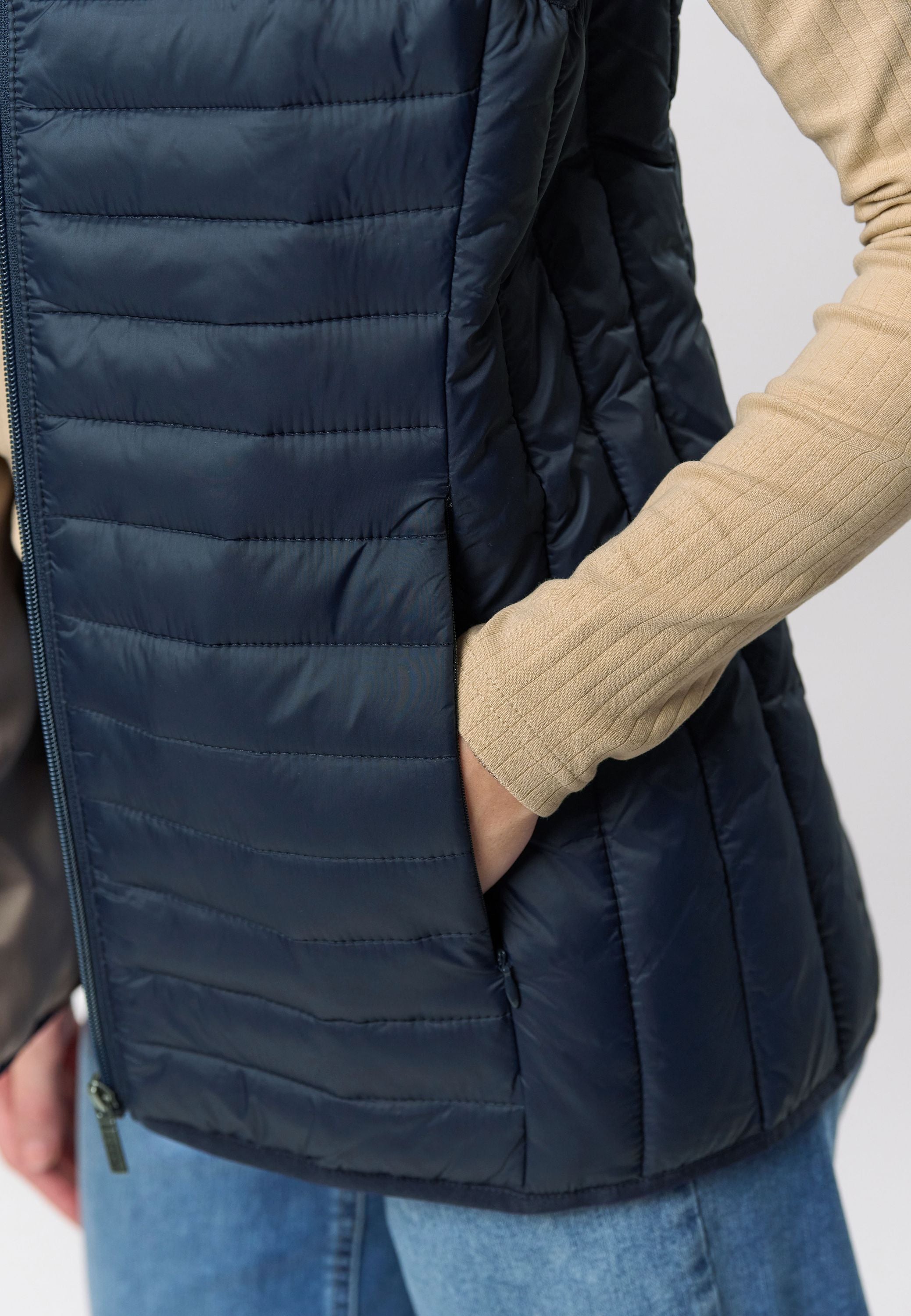 Jill är en stilren och funktionell väst som kombinerar lätthet och värme. Västen är designad med hög krage, dragkedja och en lätt quiltad struktur för en modern och sportig look. Den broderade logotypen på bröstet ger en elegant touch, medan det lätta materialet gör Jill till det perfekta valet vid kyliga dagar.