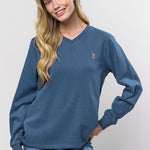 Macy är en klassisk V-ringad sweatshirt med en sportig twist, perfekt för vardagskläder. Den mjuka bomullsblandningen och den enkla silhuetten ger en bekväm och snygg passform. Tröjan har ribbade muddar och midja och vår ikoniska broderade logotyp på bröstet för en elegant, igenkännlig look.