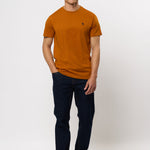 Arjun är vår klassiska basic T-shirt som varje man borde ha i sin garderob. Arjun kan bäras året runt och för alla tillfällen – både ensam eller med en skjorta eller stickad över. Den har vår igenkännliga logotyp broderad på bröstet för den klassiska pololooken och har en rund hals.