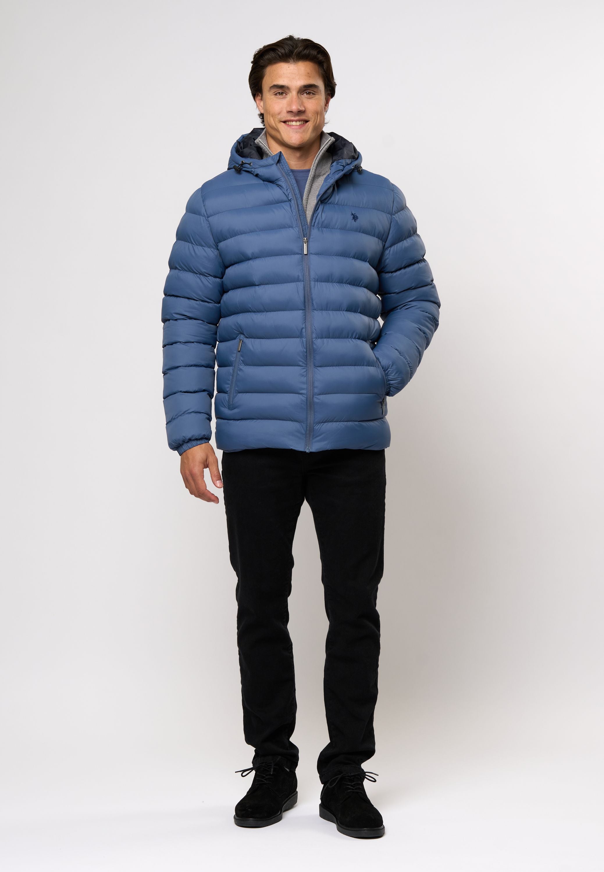 Artur är en modern och mångsidig jacka med en sportig och modern look. Det släta, slitstarka materialet och den breda quiltade designen ger jackan en lätt, puffig look - perfekt för skiftande årstider och svala dagar. Den stängs med en hel dragkedja framtill och har två rymliga sidfickor med dragkedjor för att hålla dina saker säkra när du är på språng. Huvan kan justeras och den diskreta loggan på bröstet fulländar den stilrena looken. En praktisk och snygg jacka som fungerar både i staden och till vardags.