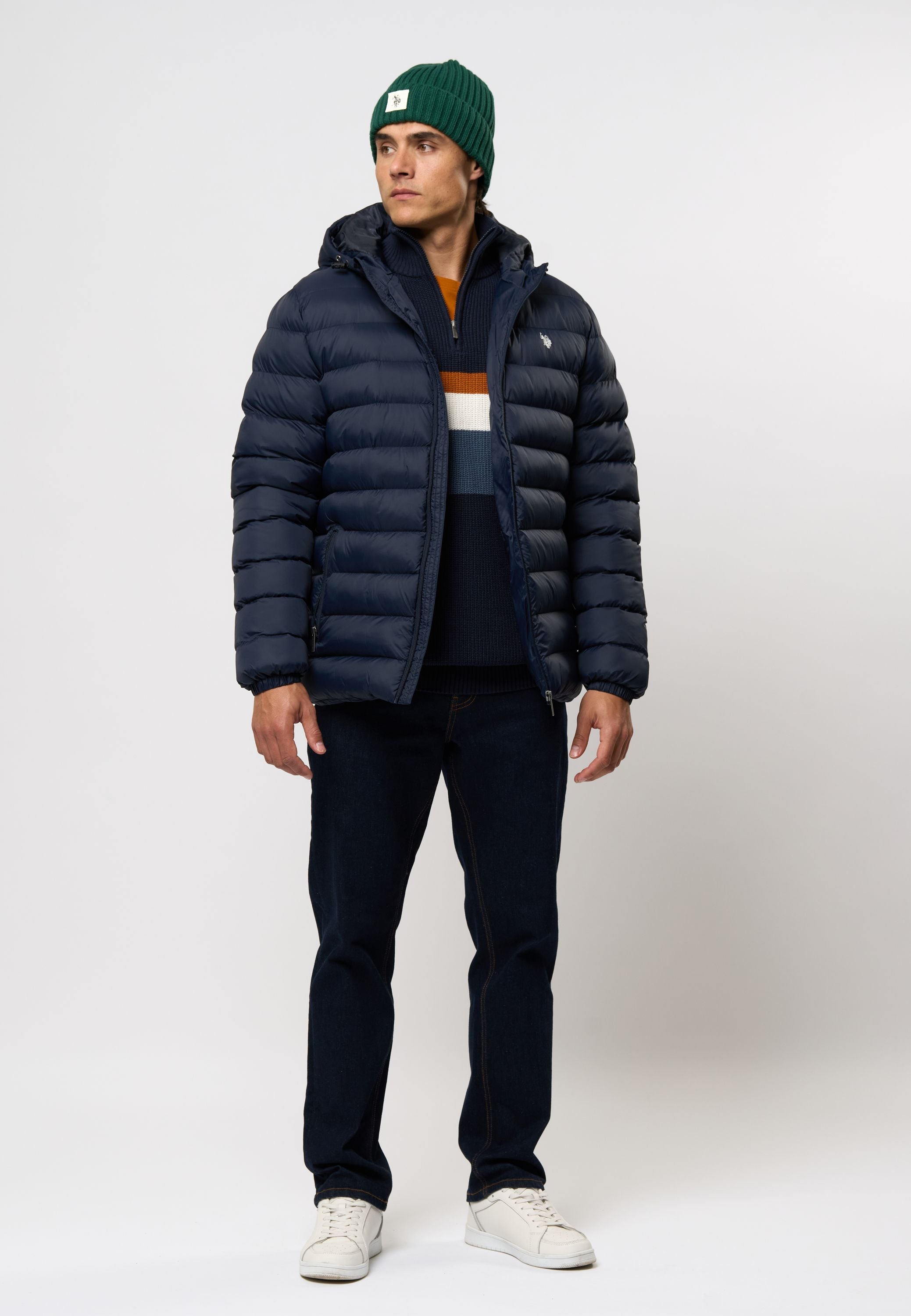 Artur är en modern och mångsidig jacka med en sportig och modern look. Det släta, slitstarka materialet och den breda quiltade designen ger jackan en lätt, puffig look - perfekt för skiftande årstider och svala dagar. Den stängs med en hel dragkedja framtill och har två rymliga sidfickor med dragkedjor för att hålla dina saker säkra när du är på språng. Huvan kan justeras och den diskreta loggan på bröstet fulländar den stilrena looken. En praktisk och snygg jacka som fungerar både i staden och till vardags.