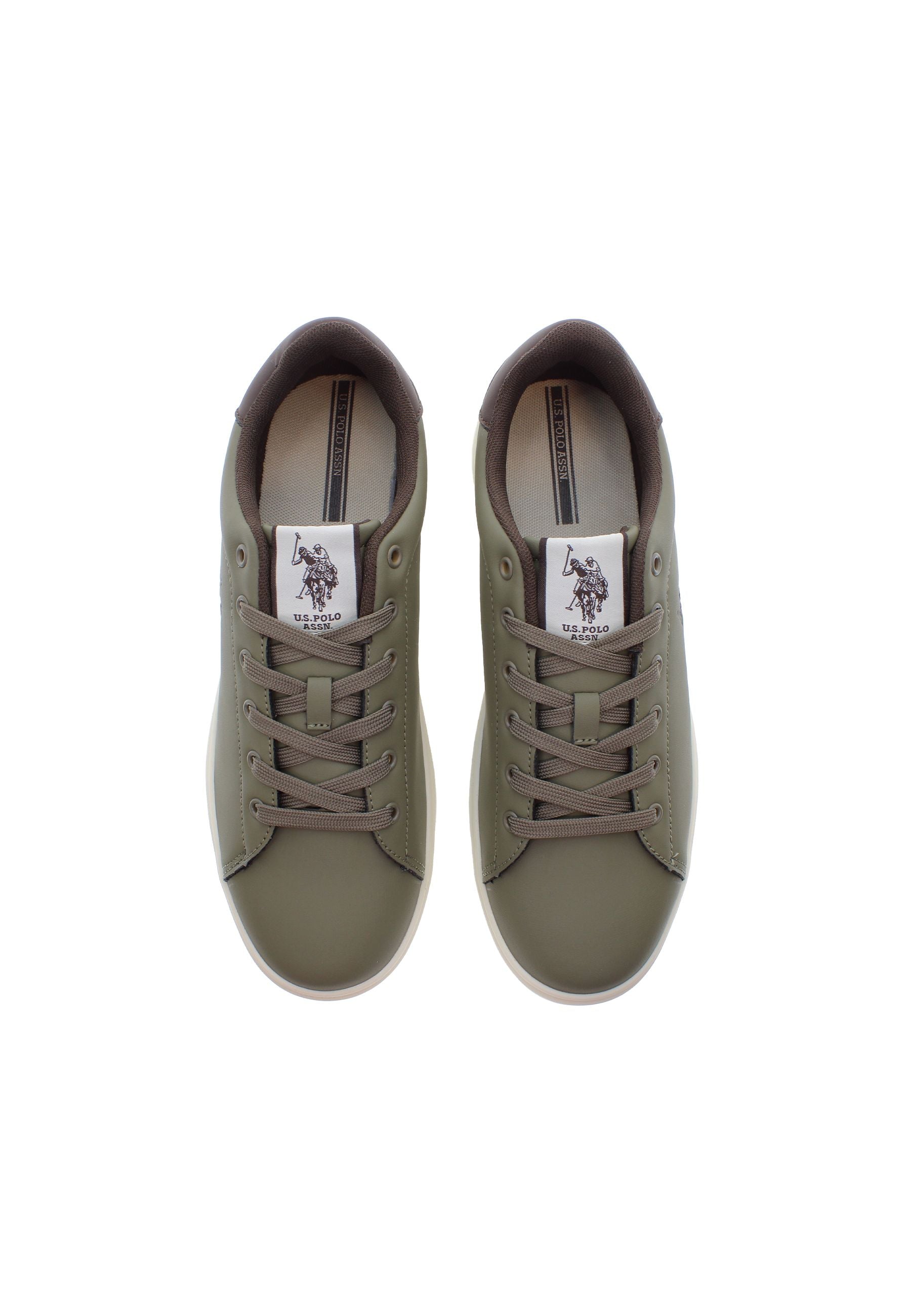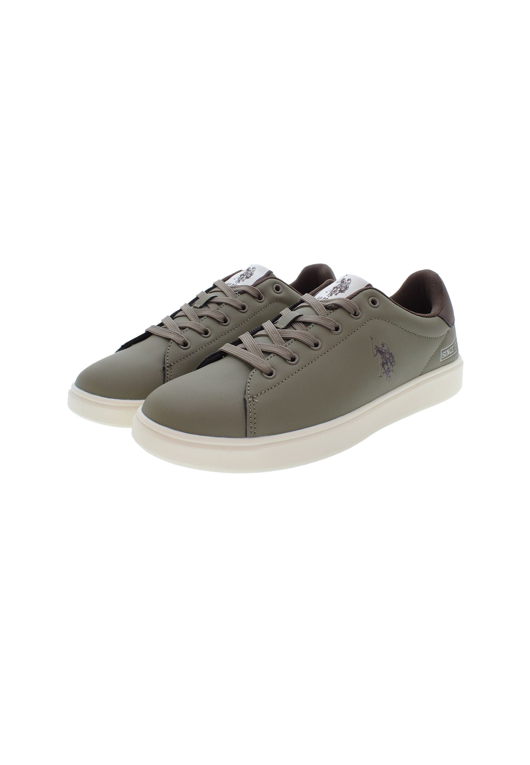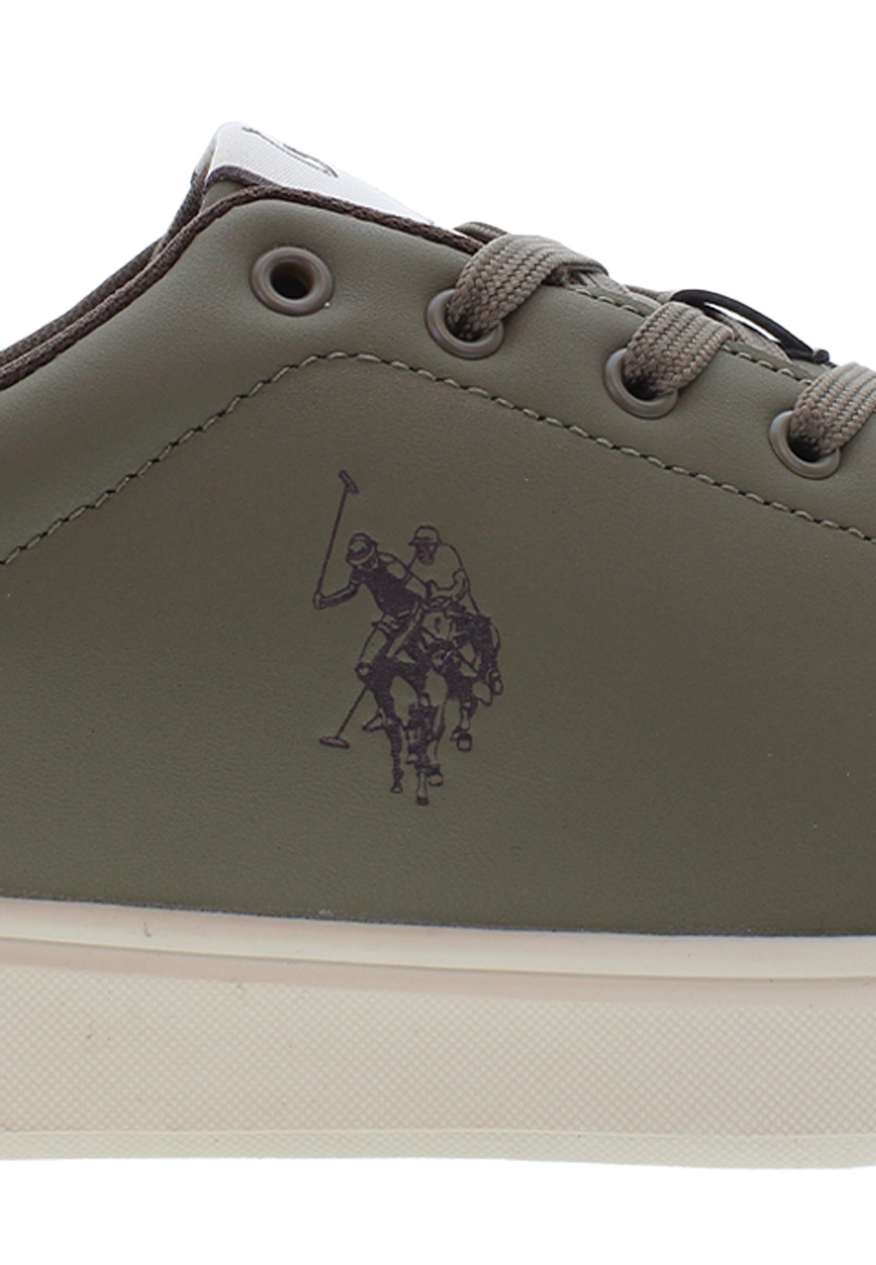 Byron är en olivgrön sneaker med svarta detaljer och ett rent, klassiskt uttryck. Den har lätt vaddering runt hälen och ankeln, vilket ger bra komfort hela dagen. Skon är dekorerad med U.S. Polo Assn.-logotypen i svart på sidan, och baktill fulländas looken med en svart hälkappa. Innersulan är enkel och nedtonad med diskret branding. En stilren sneaker som fungerar för både vardag och fritid.