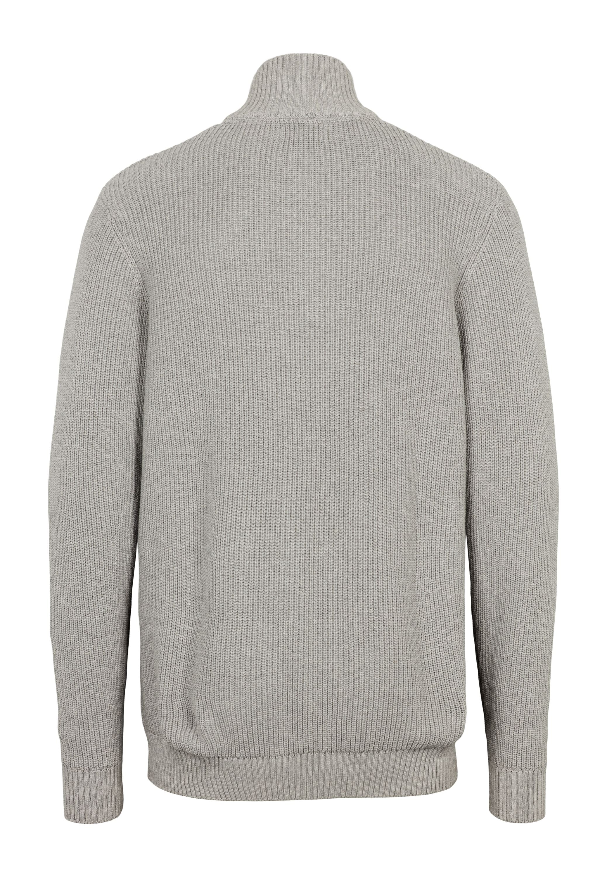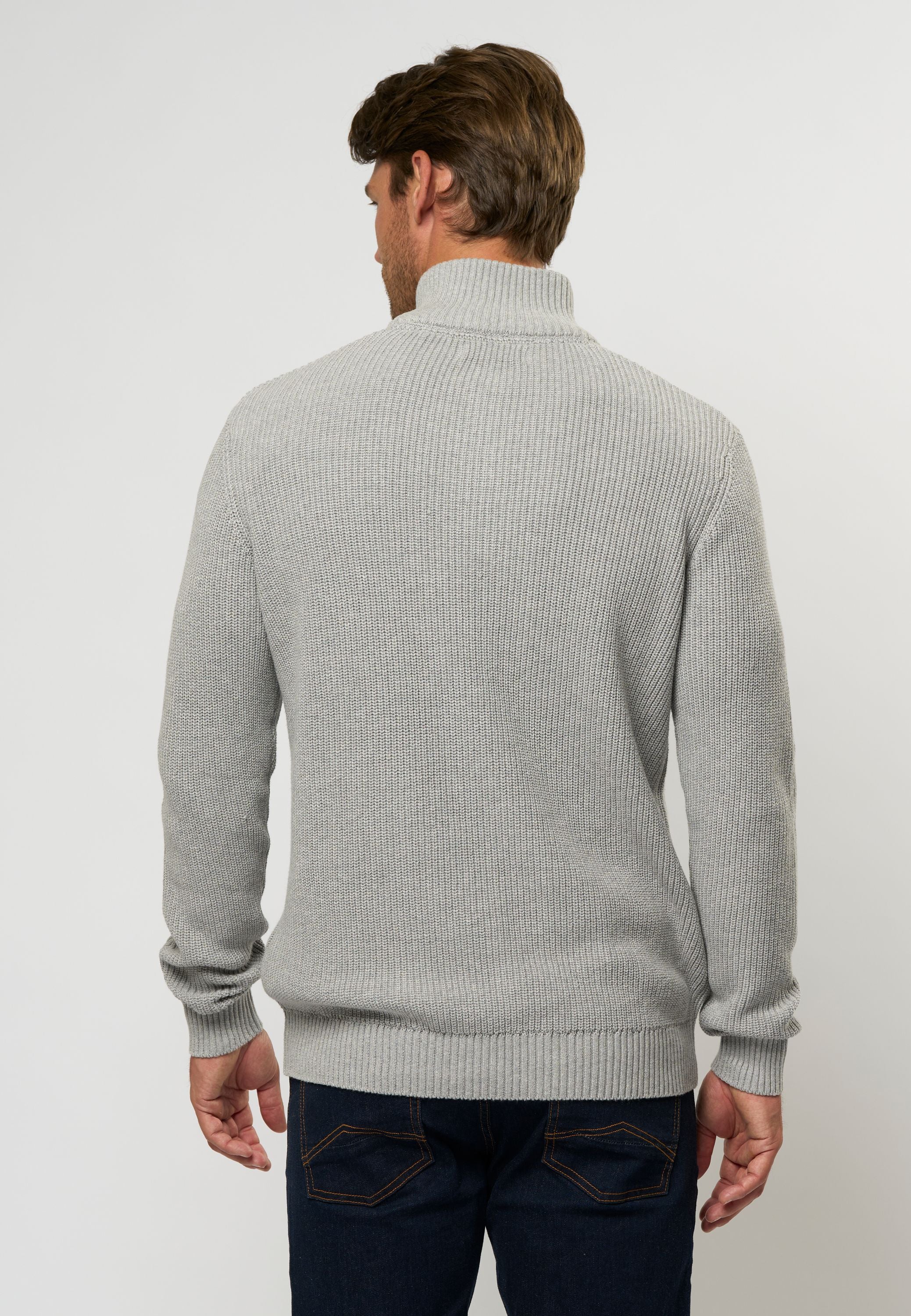 • Kraftig strukturstickad med hög krage och ribbade kanter