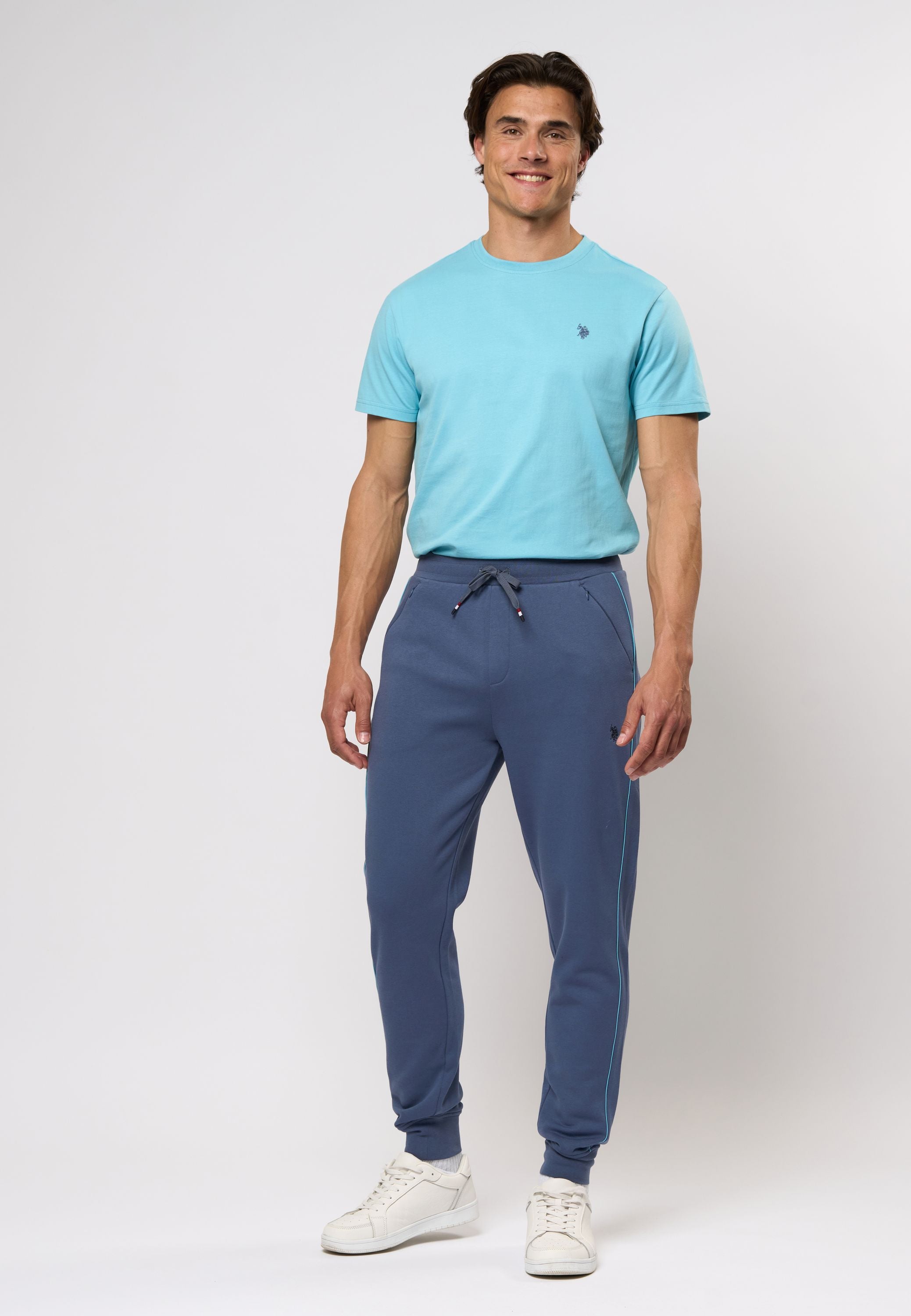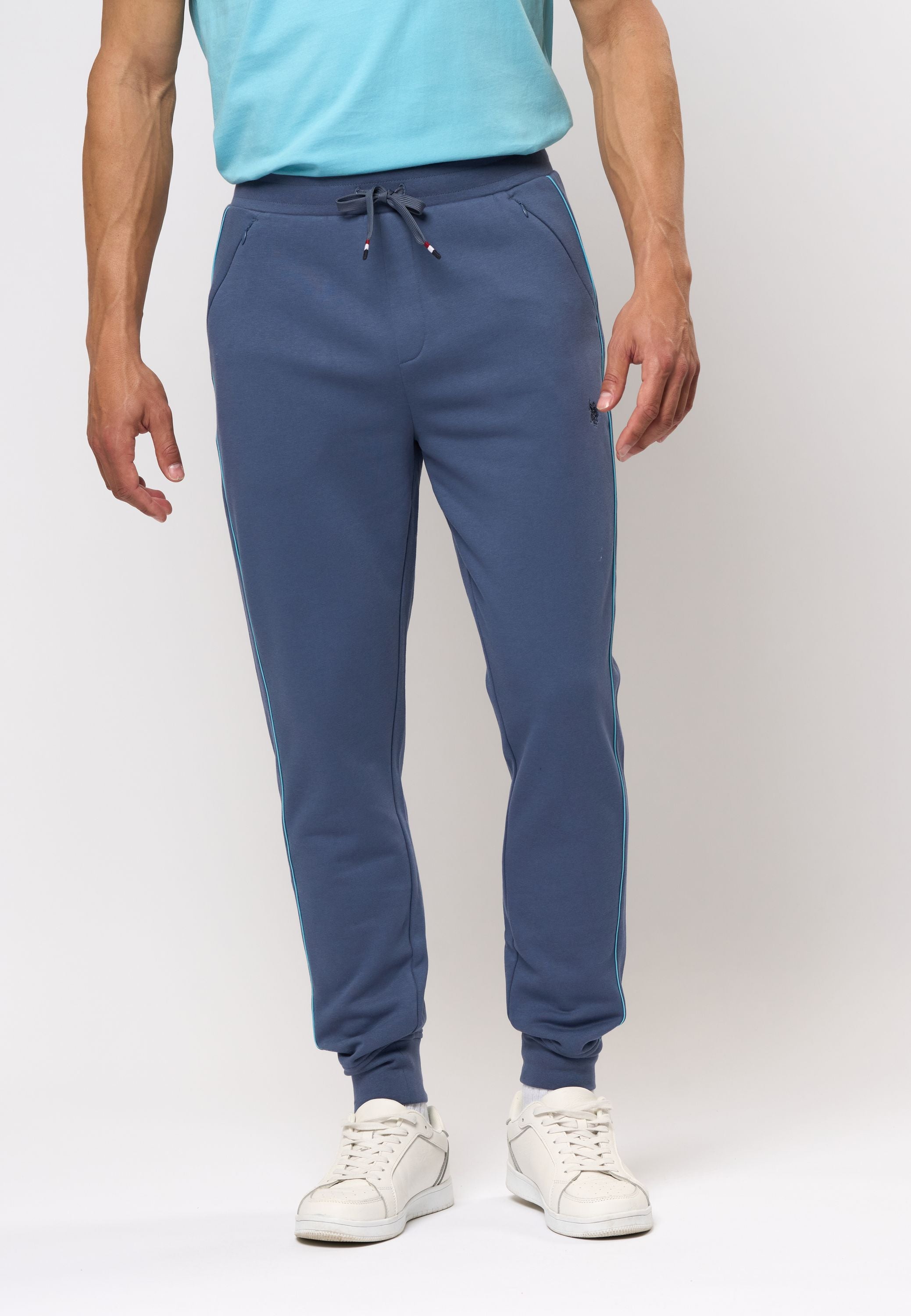 Tano är ett par sportiga och bekväma träningsbyxor med en modern twist. Designen har en smal siluett med ribbad kant vid anklarna och justerbar dragsko i midjan för en flexibel passform. Kontrastpassioner längs sidorna ger en fräsch look, medan fickor med dragkedja säkerställer praktisk förvaring. De små logotyperna understryker den färdiga designen.