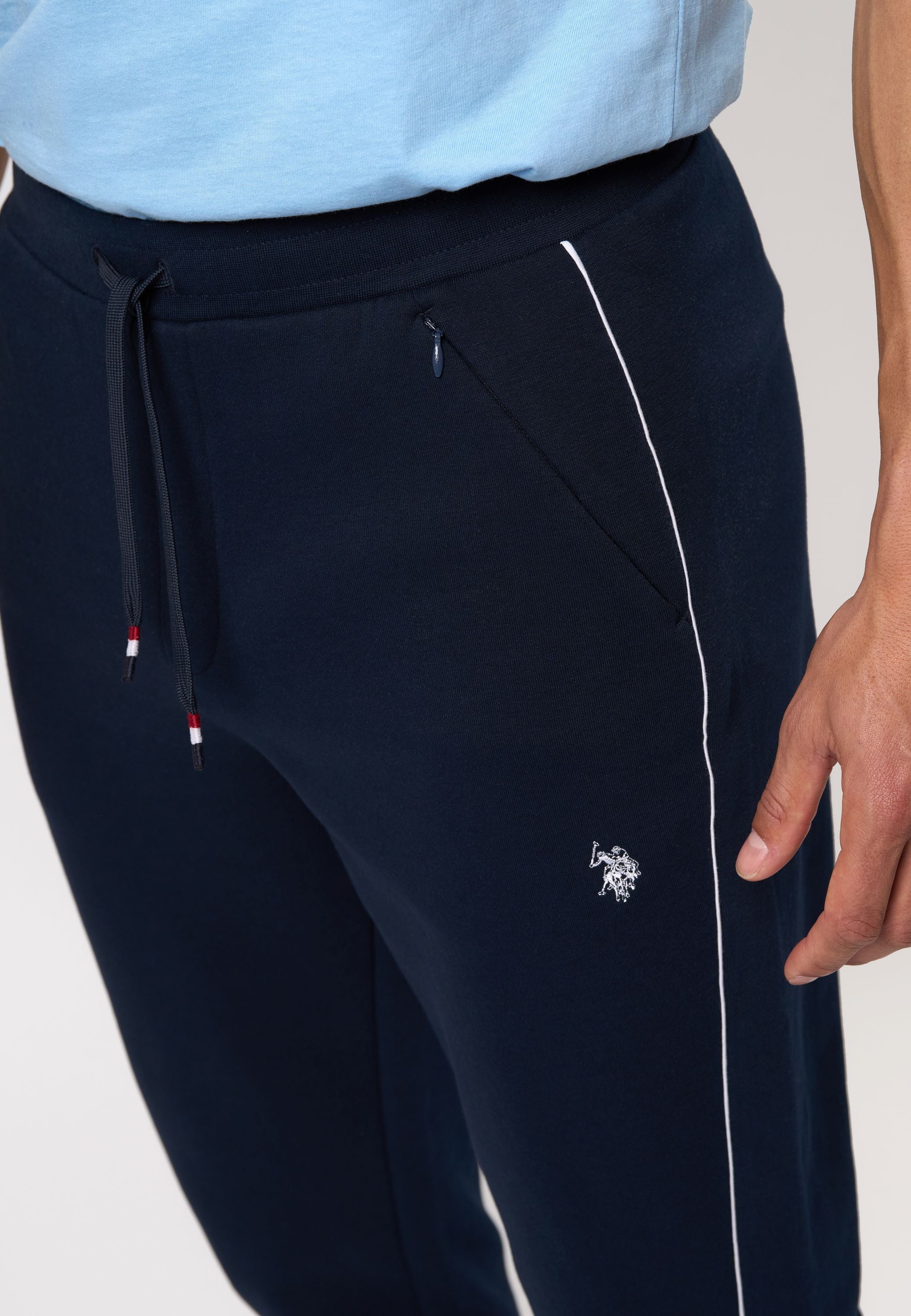 Tano är ett par sportiga och bekväma träningsbyxor med en modern twist. Designen har en smal siluett med ribbad kant vid anklarna och justerbar dragsko i midjan för en flexibel passform. Kontrastpassioner längs sidorna ger en fräsch look, medan fickor med dragkedja säkerställer praktisk förvaring. De små logotyperna understryker den färdiga designen.