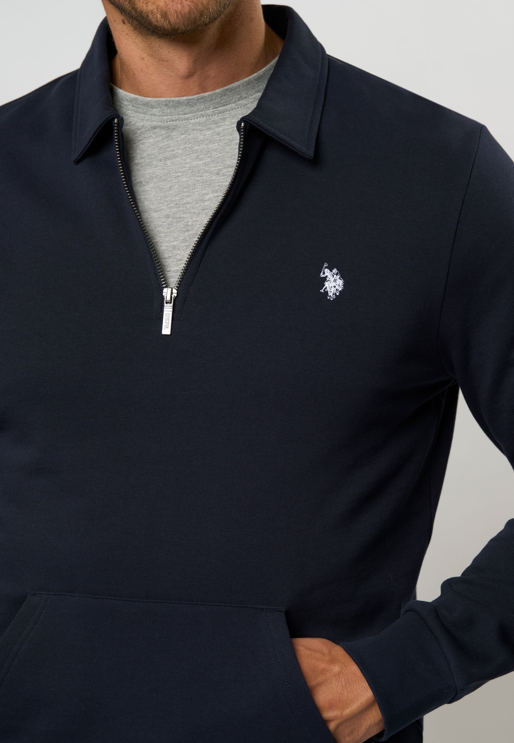 Theodor är en modern sweatshirt med en snygg silhuett och sportiga detaljer. Den har krage och halv dragkedja, vilket gör att du kan anpassa din look till både avslappnade och mer eleganta stilar. Den rena bomullskvaliteten känns skön mot huden och gör sweatshirten lämplig att bära året runt. Den praktiska kängurufickan ger en avslappnad touch och extra komfort för vardagsbruk. Det broderade logotypen på bröstet kompletterar designen med en distinkt finish.
