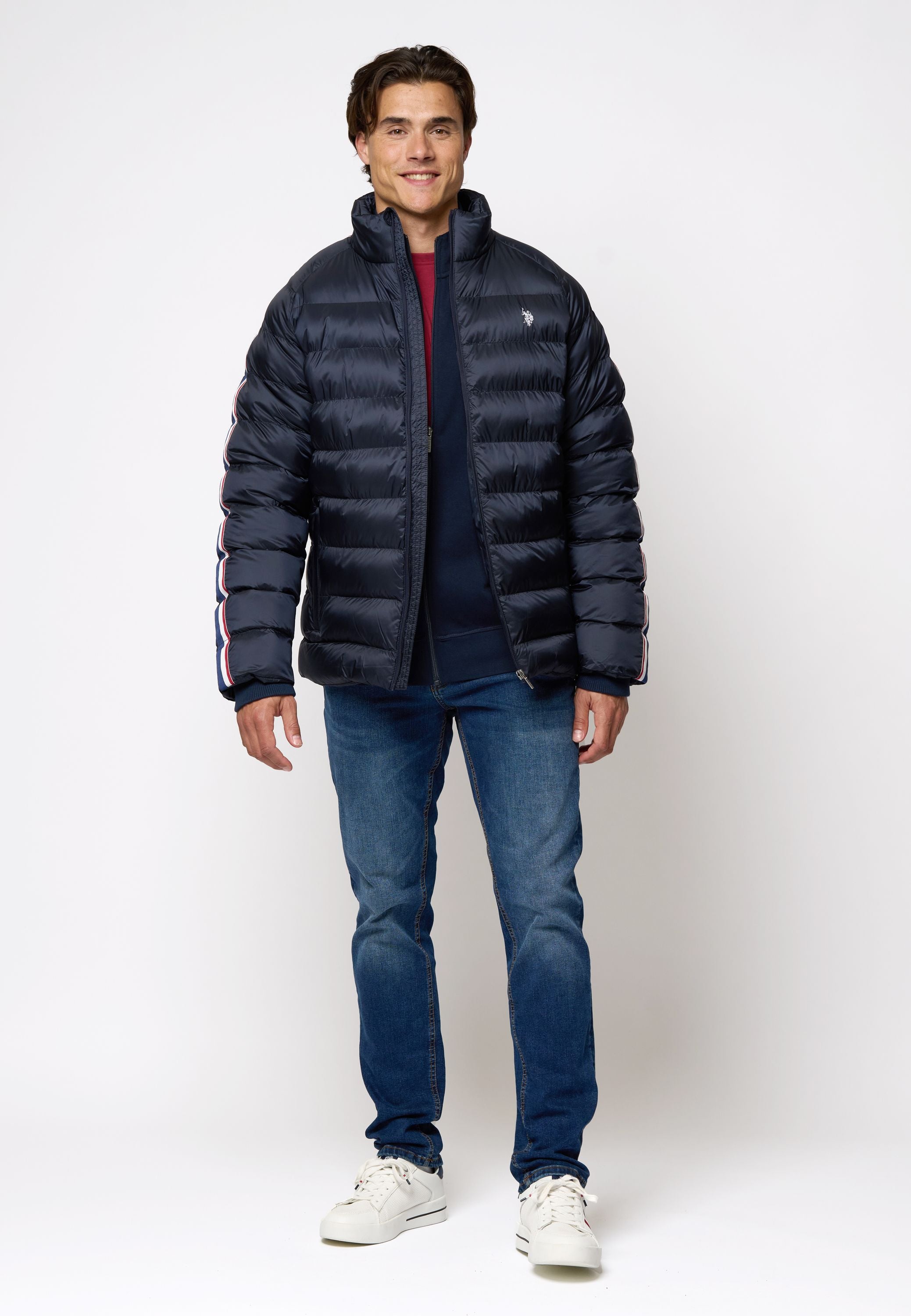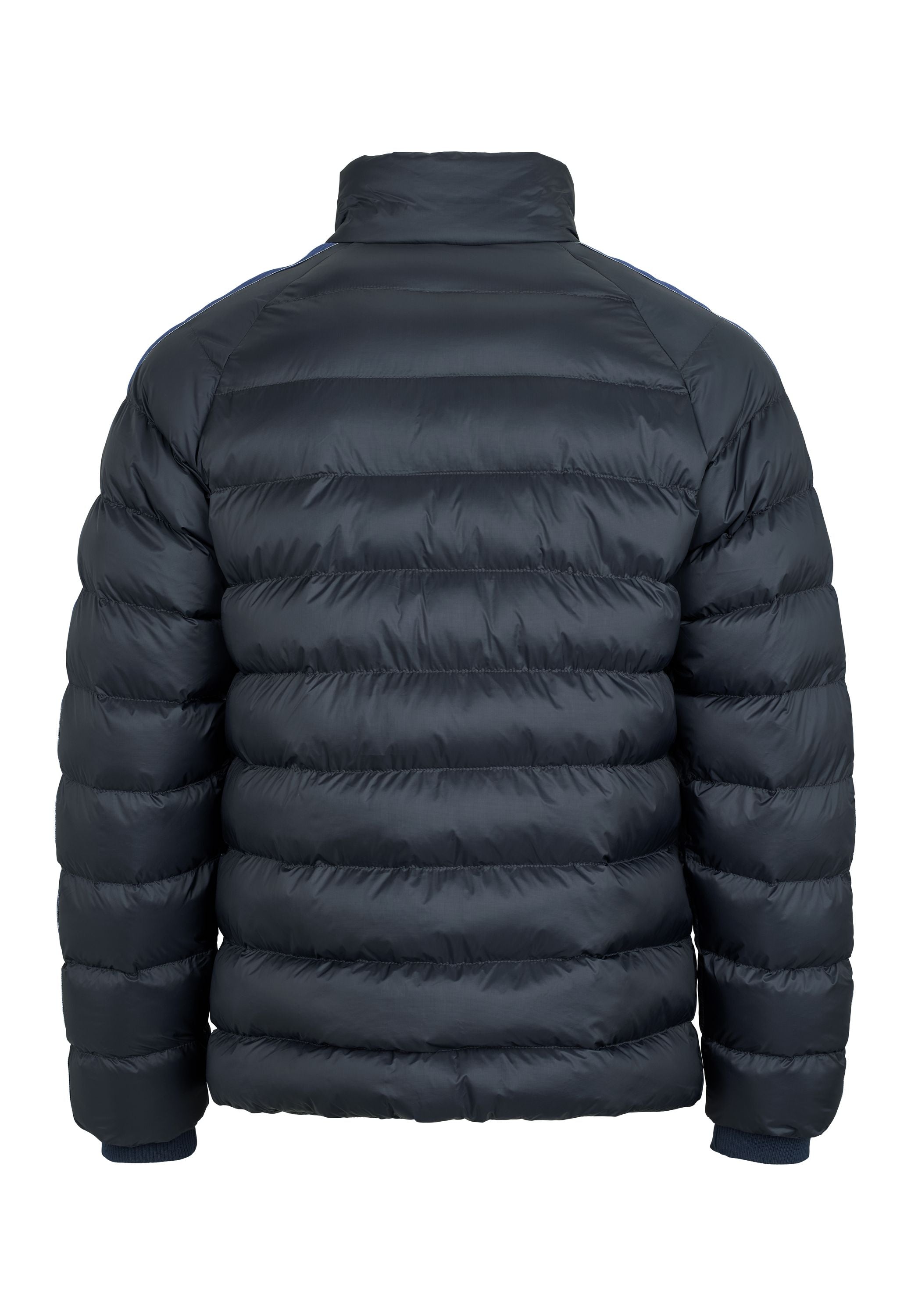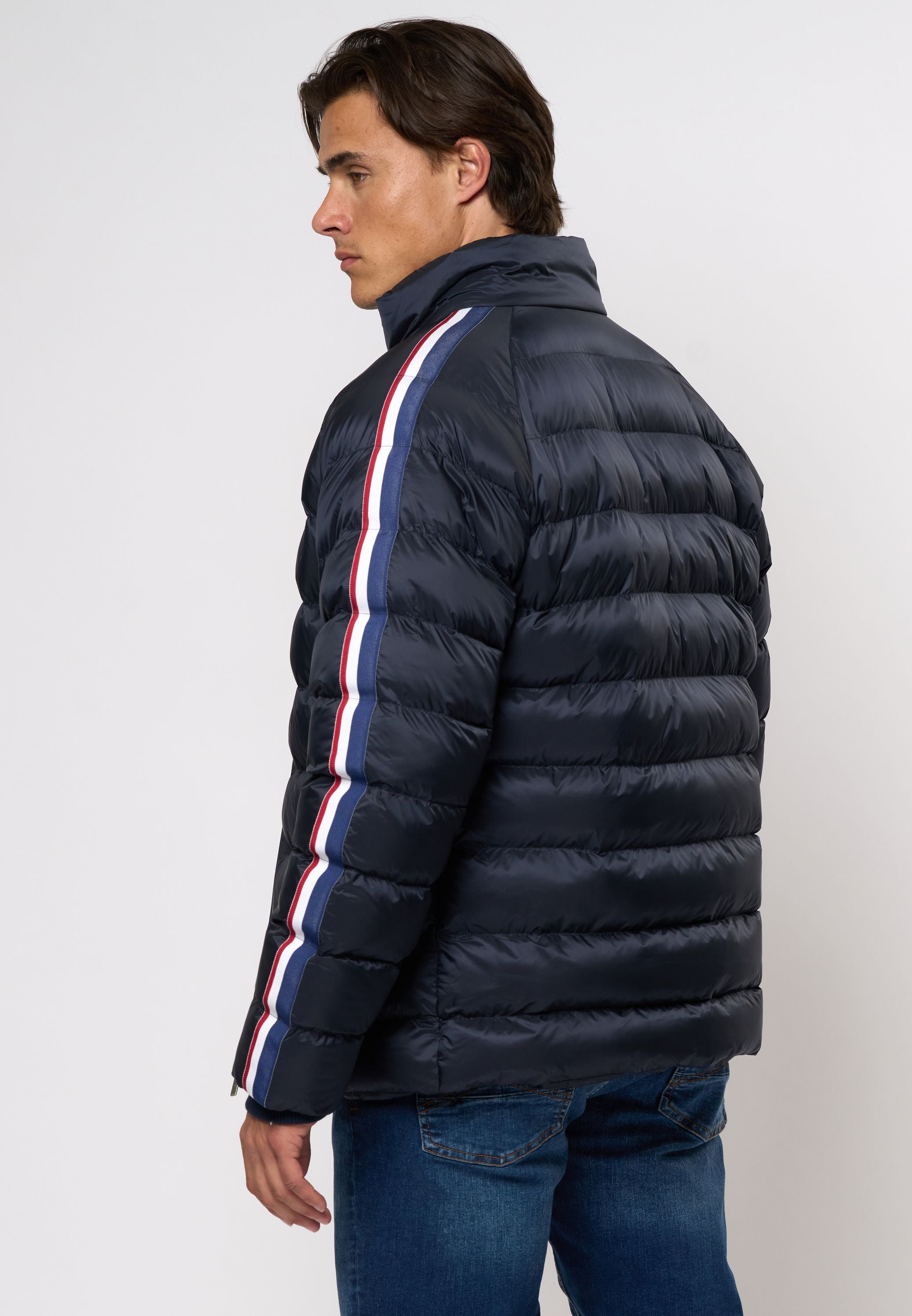 Thor är en quiltad vinterjacka med en sportig look och distinkta detaljer. De breda, horisontella sömmarna ger jackan dess puffiga look, medan ränderna längs ärmarna ger en dynamisk kontrast. Den höga kragen och ribbade kanterna vid ärmarna håller vinden ute och sidofickor med dragkedjor och en innerficka ger plats för det viktigaste. Den broderade logotypen på bröstet avrundar designen med ett igenkännligt uttryck.