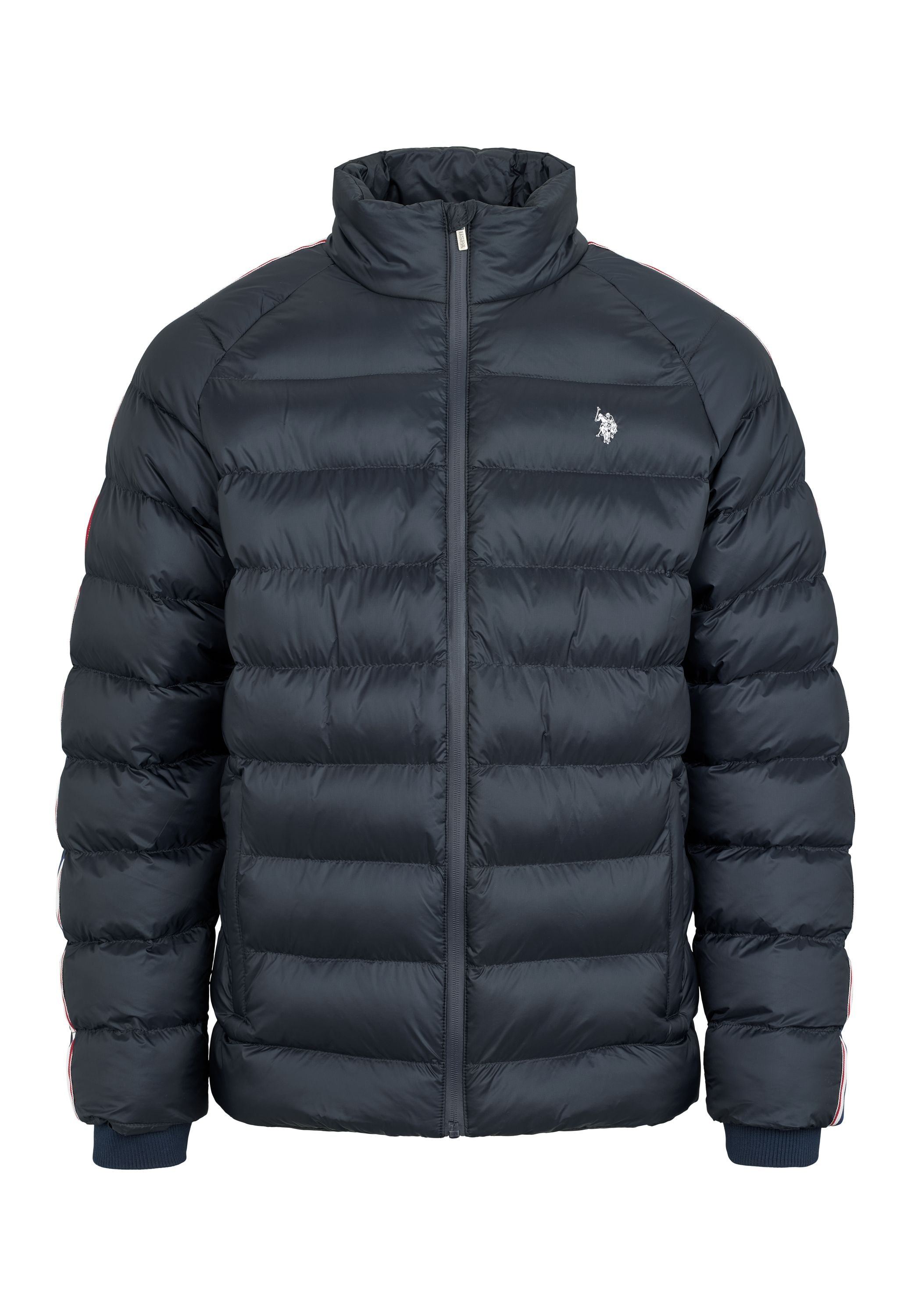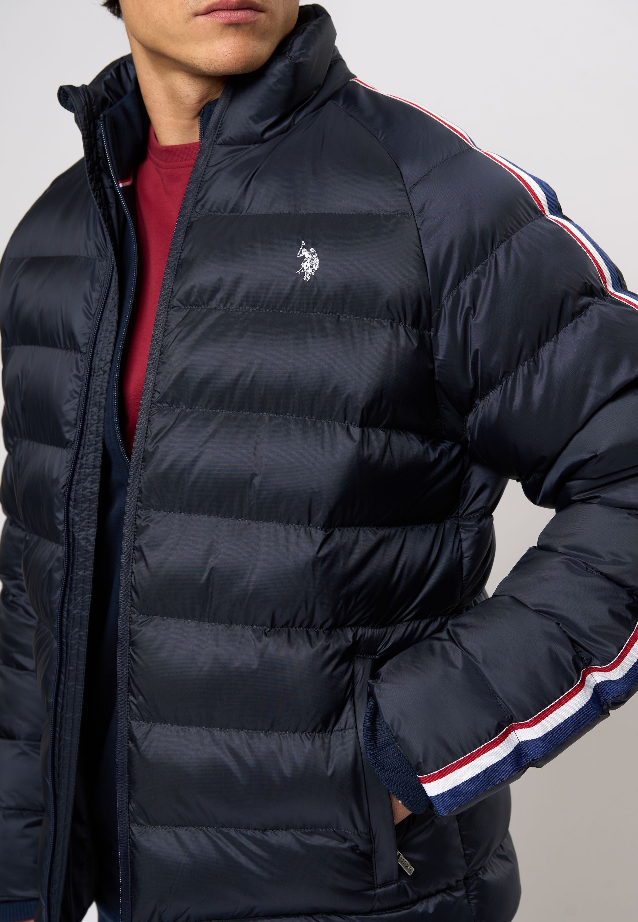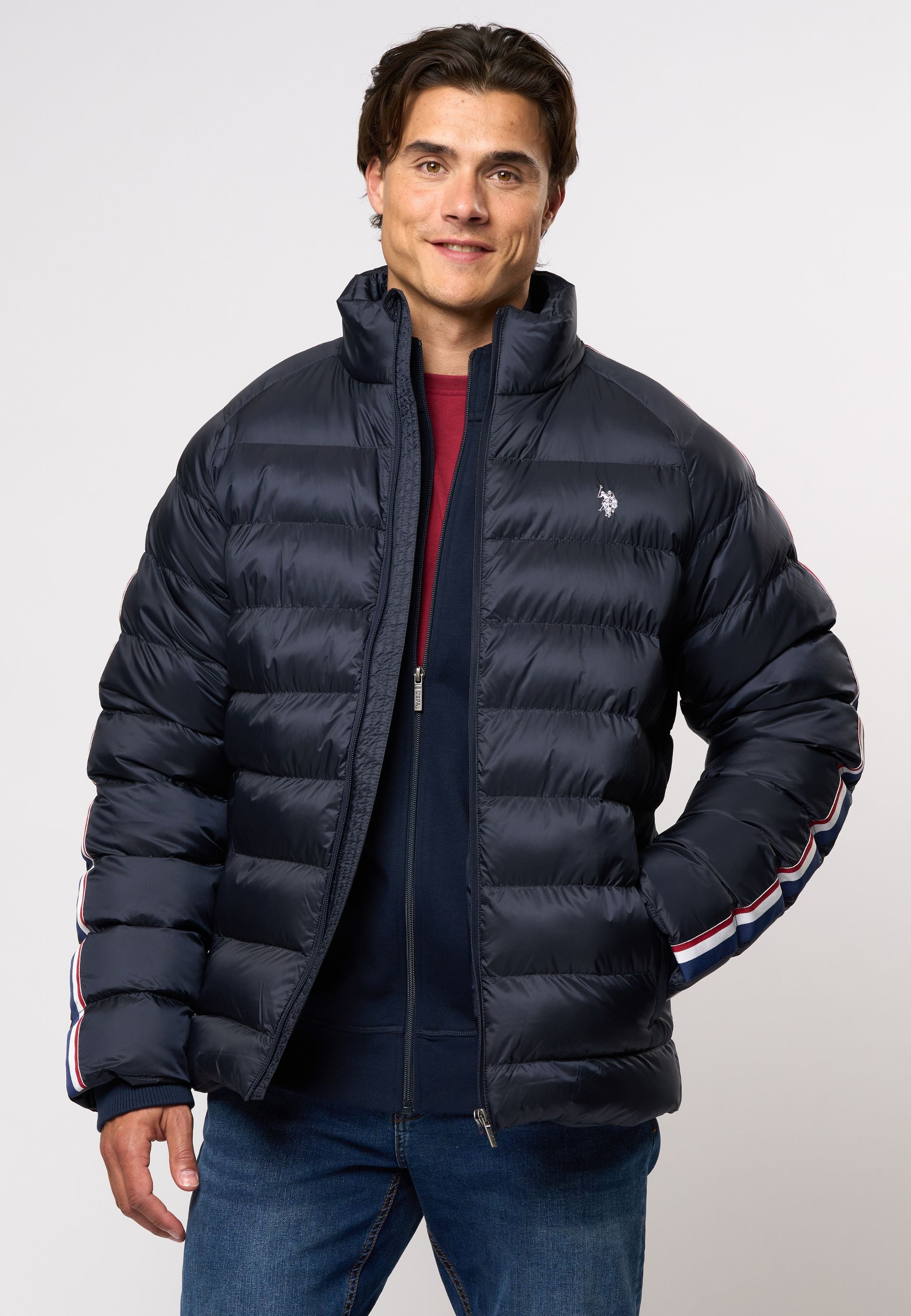 Thor är en quiltad vinterjacka med en sportig look och distinkta detaljer. De breda, horisontella sömmarna ger jackan dess puffiga look, medan ränderna längs ärmarna ger en dynamisk kontrast. Den höga kragen och ribbade kanterna vid ärmarna håller vinden ute och sidofickor med dragkedjor och en innerficka ger plats för det viktigaste. Den broderade logotypen på bröstet avrundar designen med ett igenkännligt uttryck.