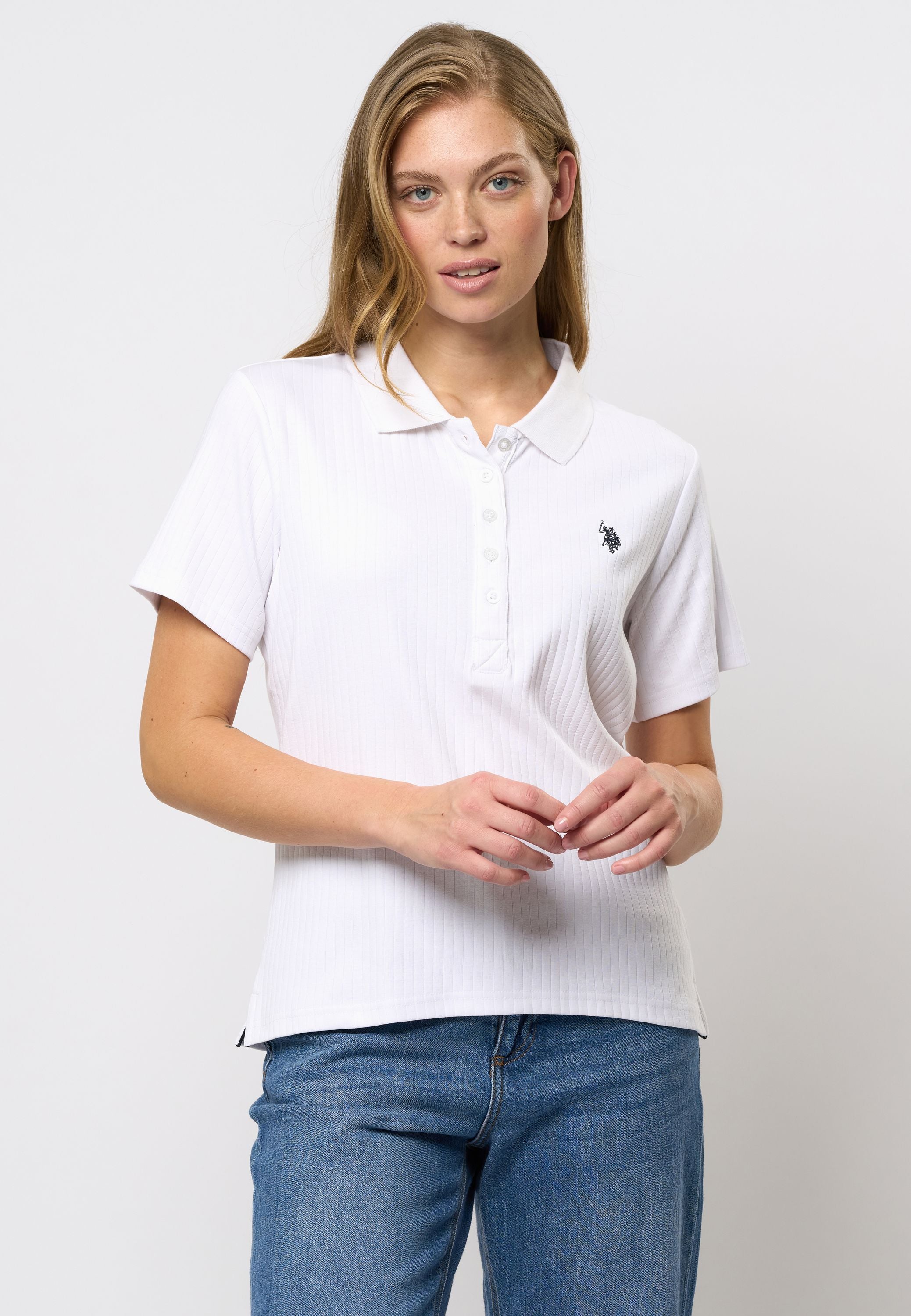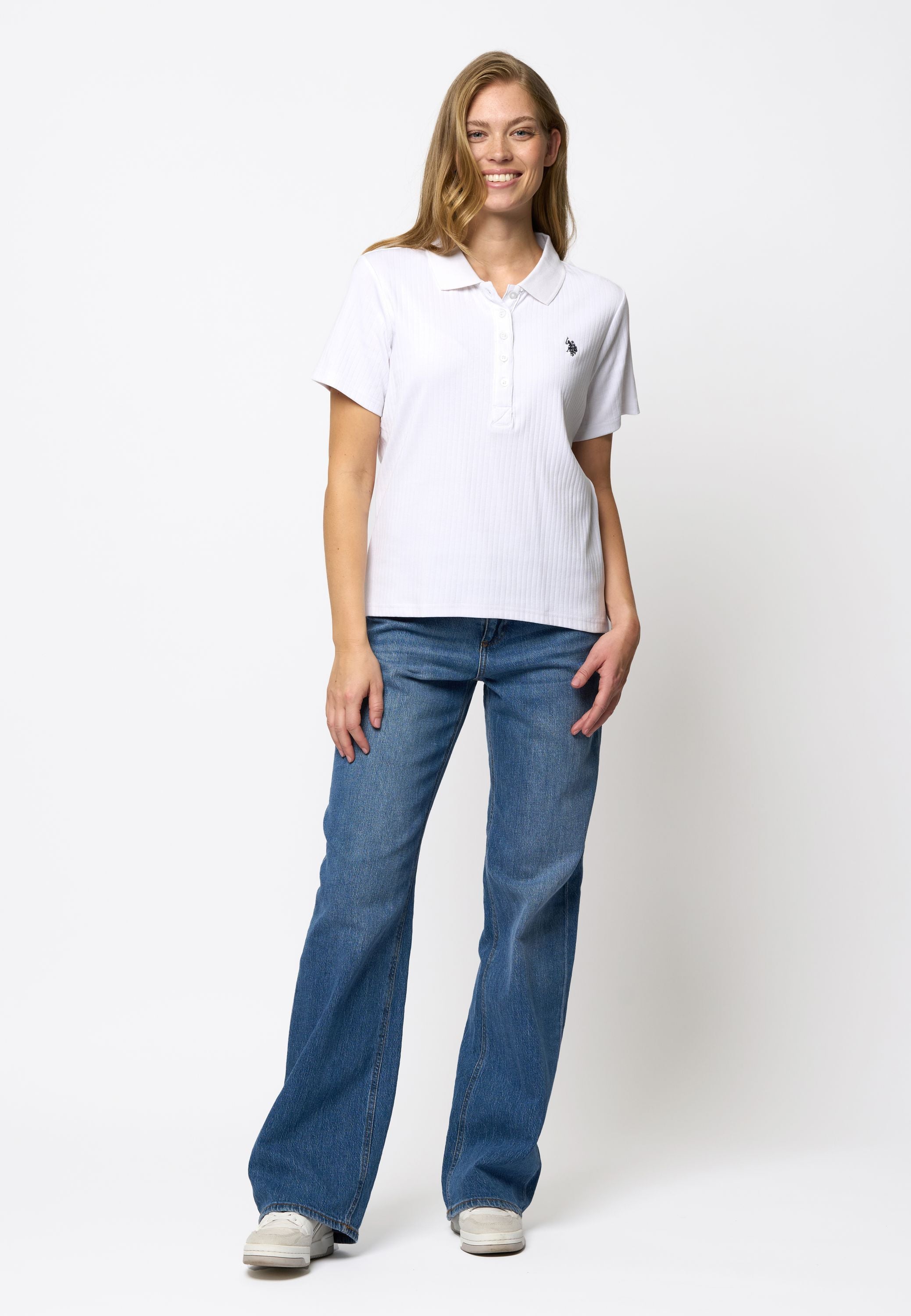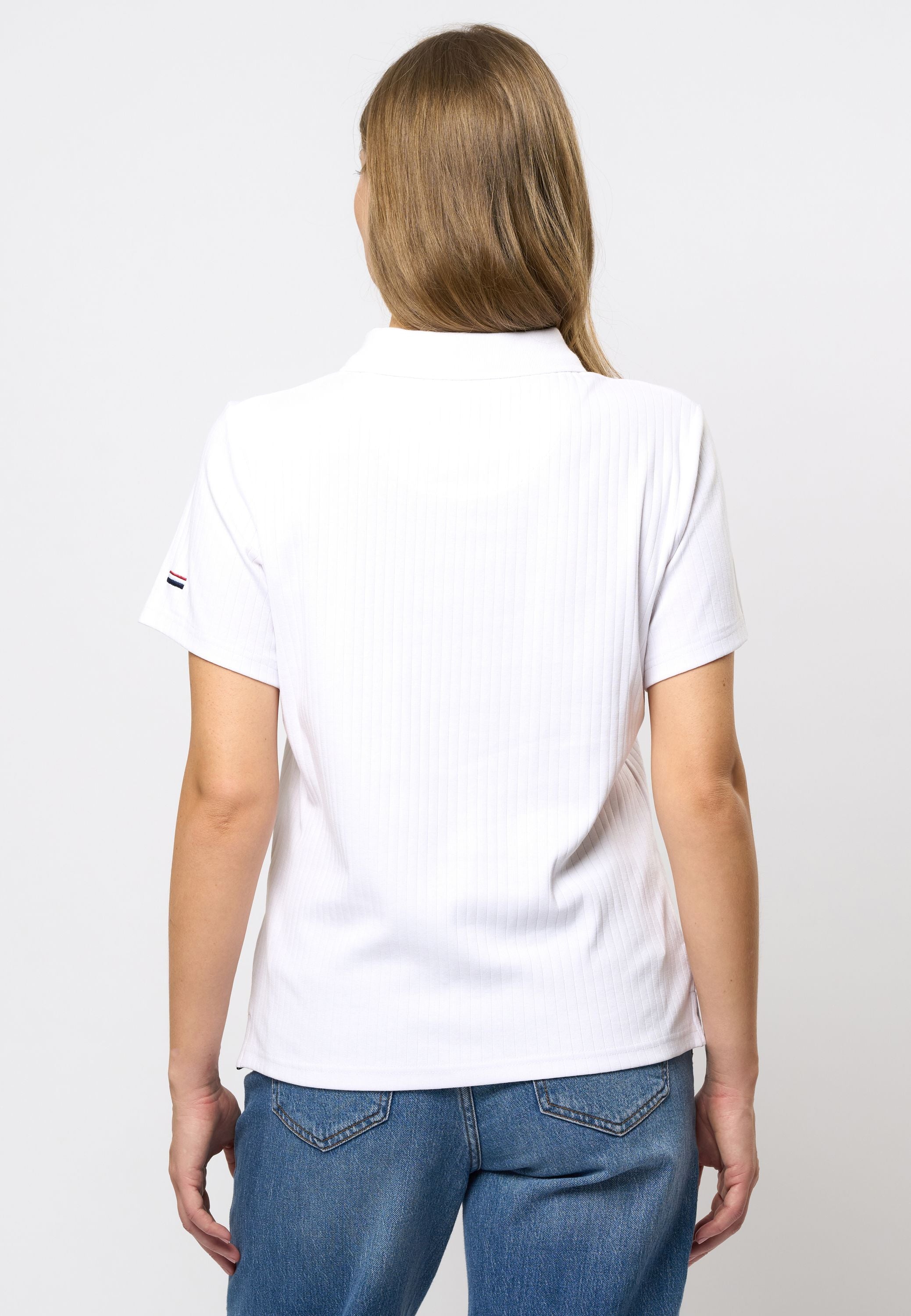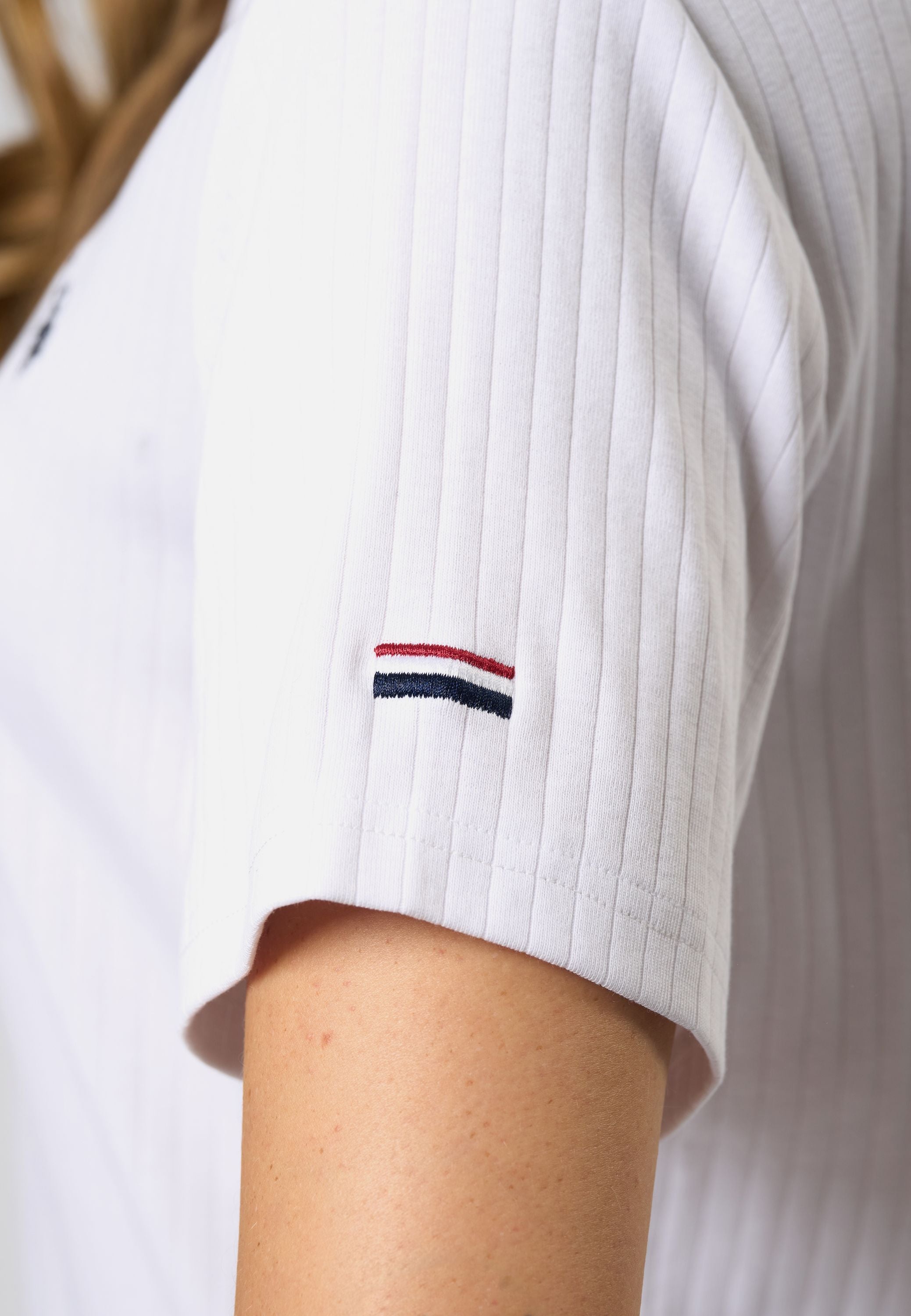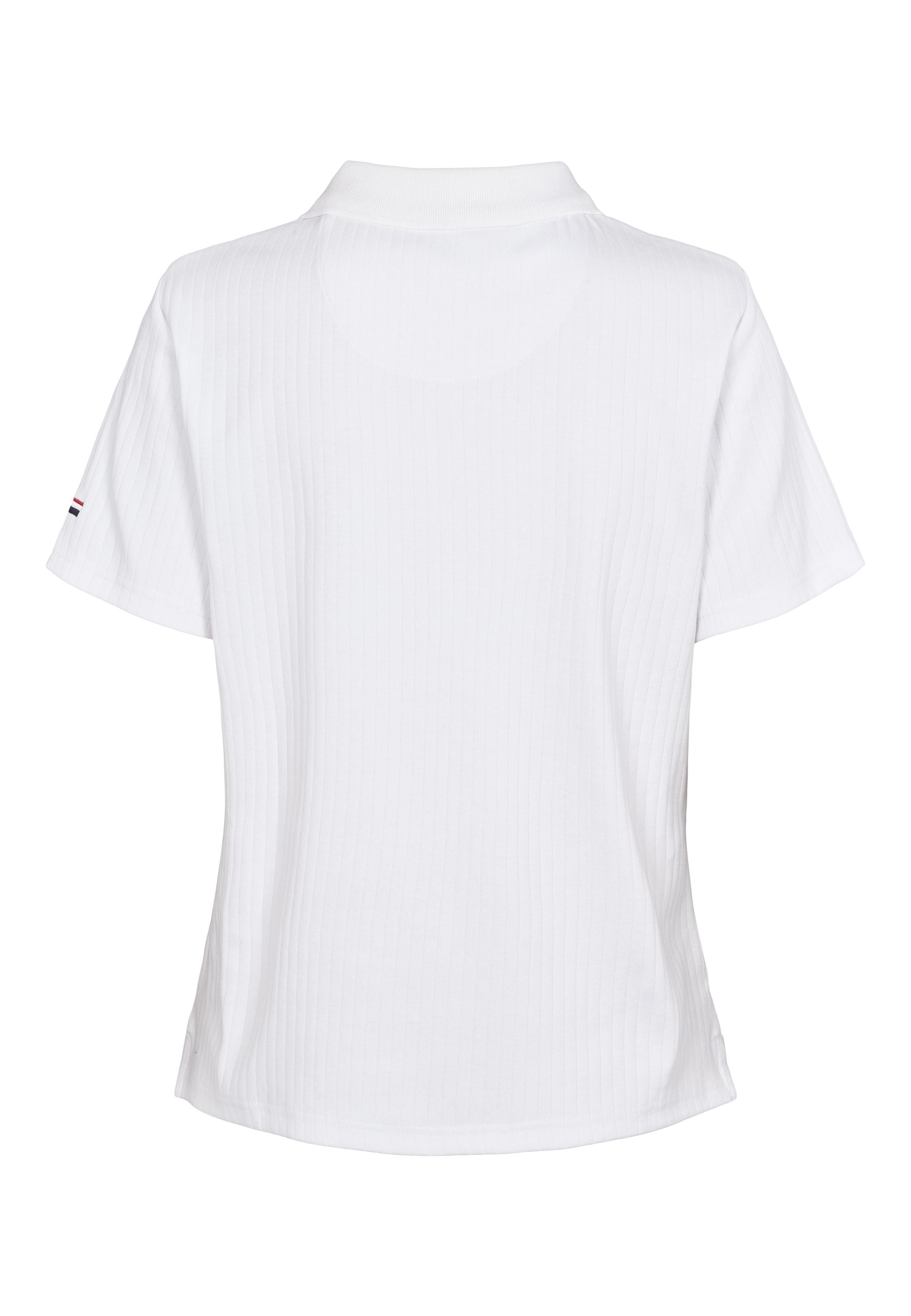 Helga är en snygg och ribbstickad pikétröja. Den klassiska pikékragen, de korta ärmarna och den diskreta logotypen på bröstet ger en elegant look, medan den ribbade strukturen ger en modern och feminin touch. Som en extra detalj finns våra signaturränder broderade på en av ärmarna. Styla Helga med ett par jeans för en avslappnad look.