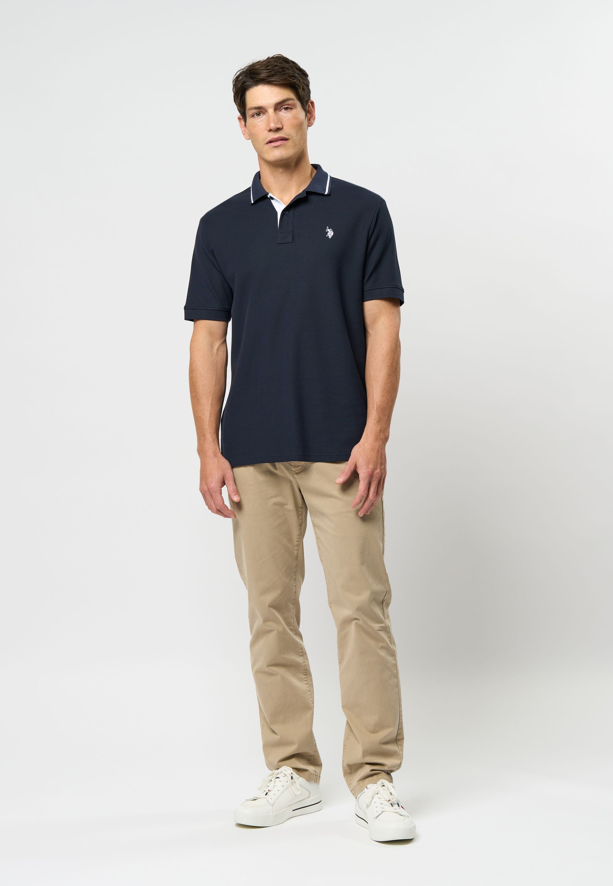 Noah är en klassisk pikétröja med en modern touch. Kragen har kontrasterande färger på insidan och ett tryckt märkesnamn på utsidan för en sportig touch. De korta ärmarna, slitsar i sidorna och den broderade logotypen på bröstet fulländar den snygga designen. En mångsidig pikétröja som passar både i vardagen och på fritiden.