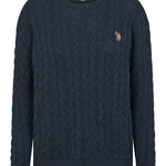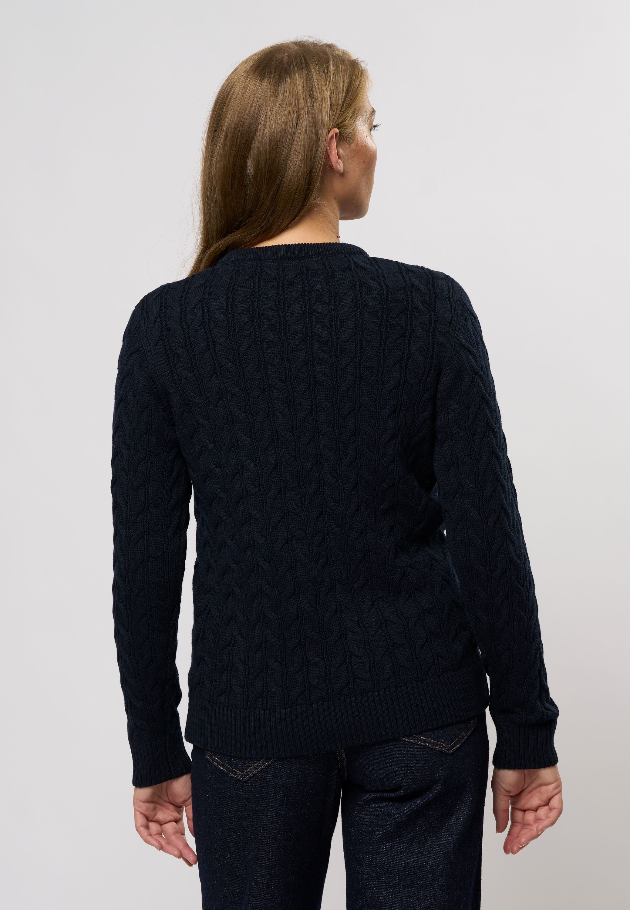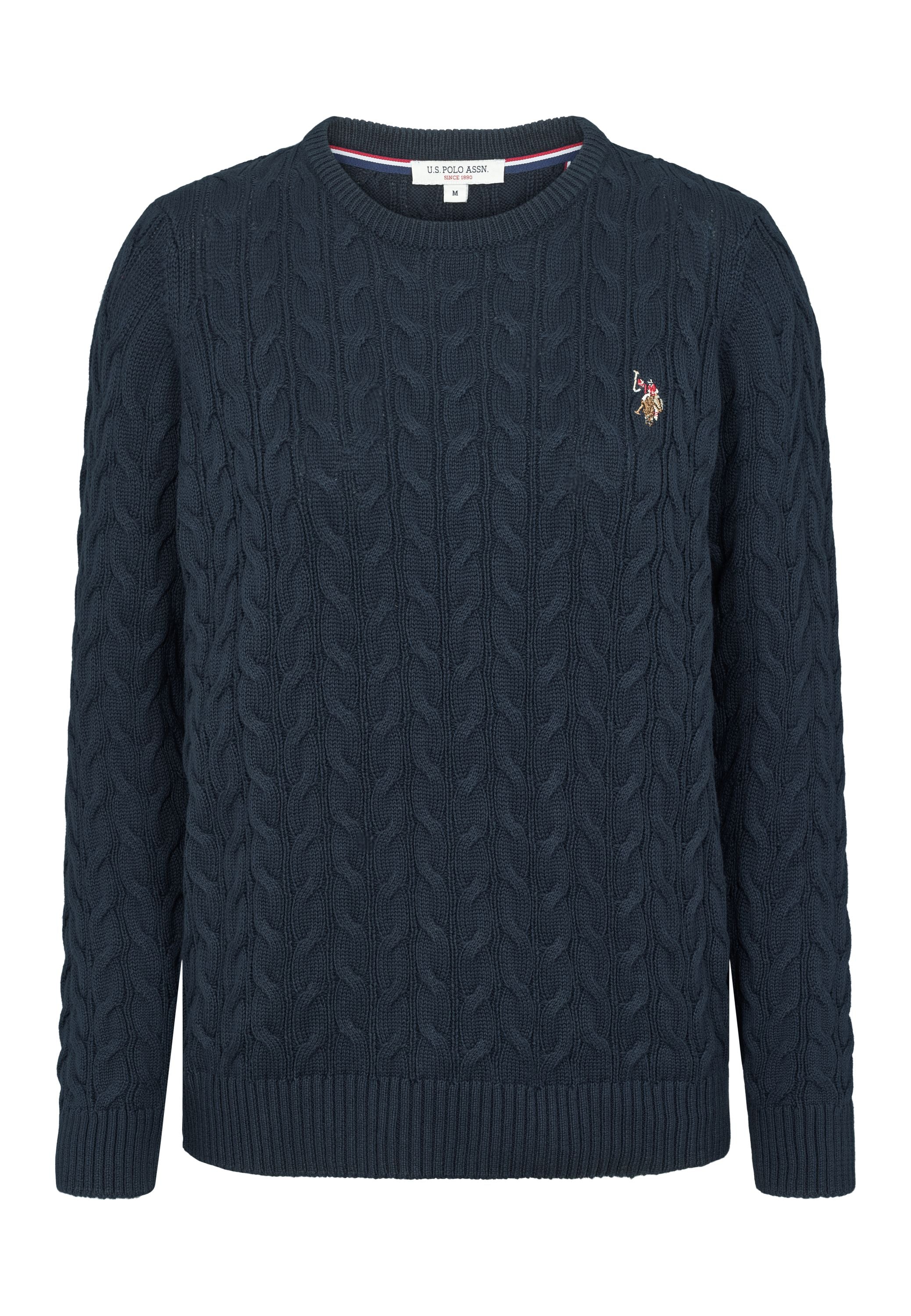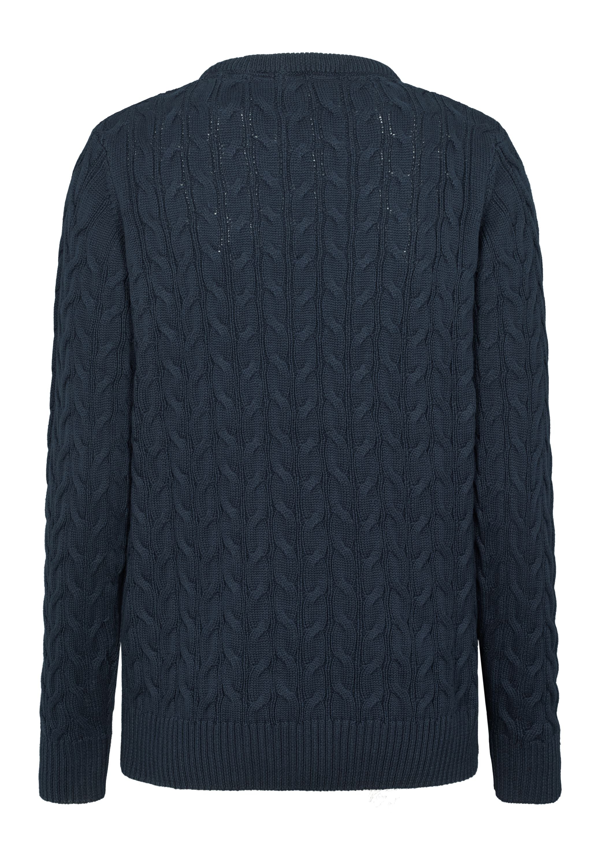 Madeline är en klassisk kabelstickad med rund hals och ett stilrent, tidlöst uttryck. Den har en normal passform och är avslutad med ribb i botten och ärmar för en snygg finish. Den broderade logotypen på bröstet ger en sportig touch och framhäver märkets signaturstil. Lätt att styla för både vardag och trevligare tillfällen.
