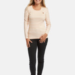 Chanett är en modern långärmad T- skjorta med rund hals och sofistikerade ränder. Vår Chanett T-shirt i de fräscha vårfärgerna har en bred 9x1 ribb och vår logotyp broderad i färger på bröstet. Chanett är ett måste i varje kvinnas garderob och kan bäras ensam eller under en kavaj för lite lek.