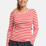 Chanett är en modern långärmad T- skjorta med rund hals och sofistikerade ränder. Vår Chanett T-shirt i de fräscha vårfärgerna har en bred 9x1 ribb och vår logotyp broderad i färger på bröstet. Chanett är ett måste i varje kvinnas garderob och kan bäras ensam eller under en kavaj för lite lek.