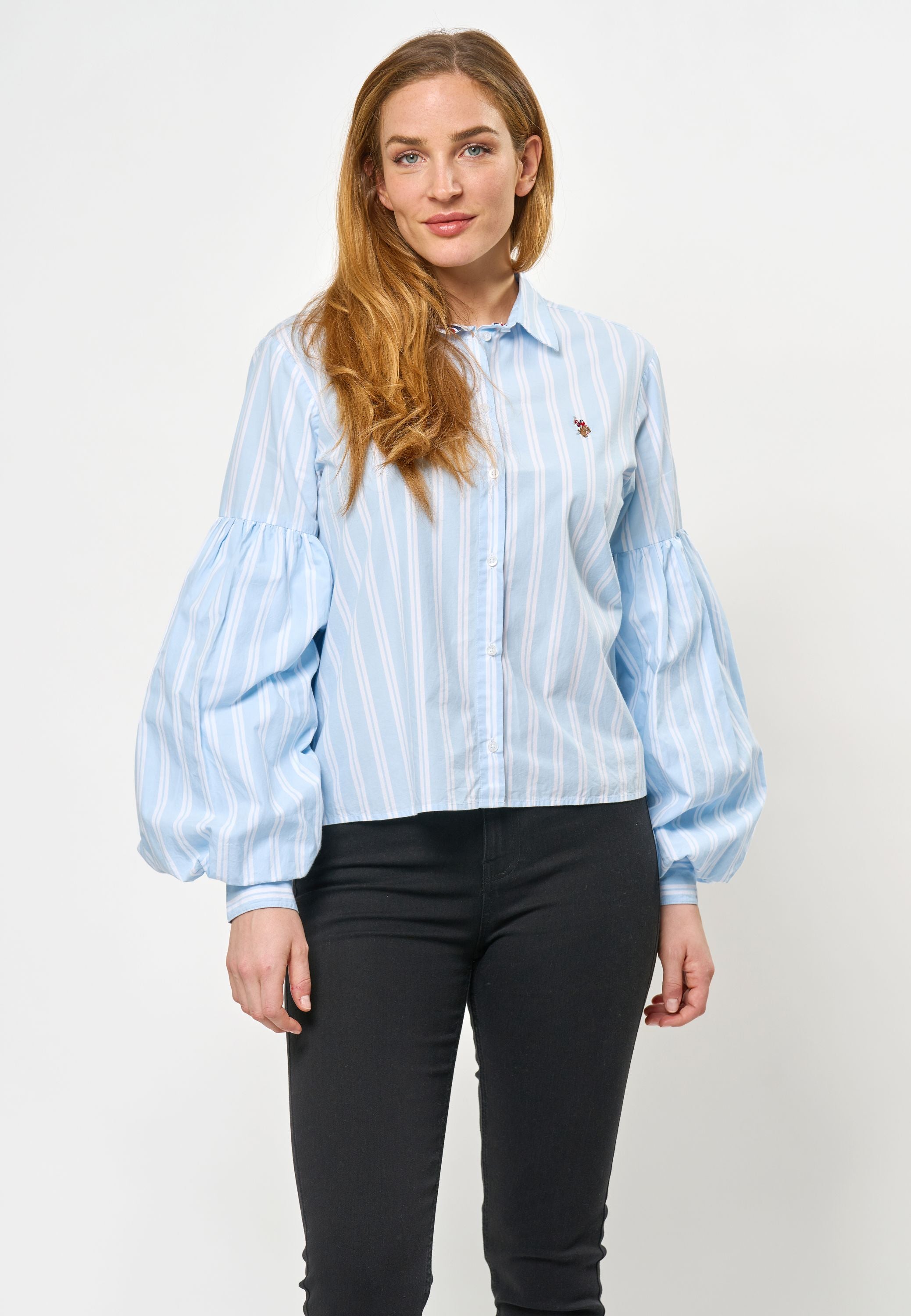 Fleur är en snygg långärmad skjorta med stora puffärmar. Skjortan är designad med snygga ränder, en klassisk krage och har vår igenkännliga logga broderad på bröstet. Fleur är perfekt för att piffa upp vardagslooken med en feminin stil i en lätt kvalitet.