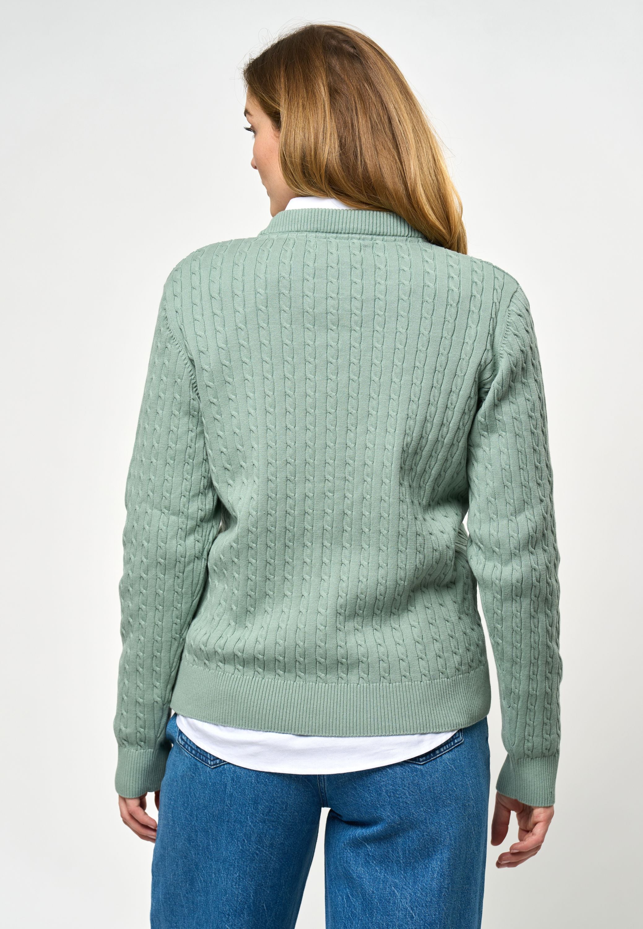 • Kofta i kabelstickad