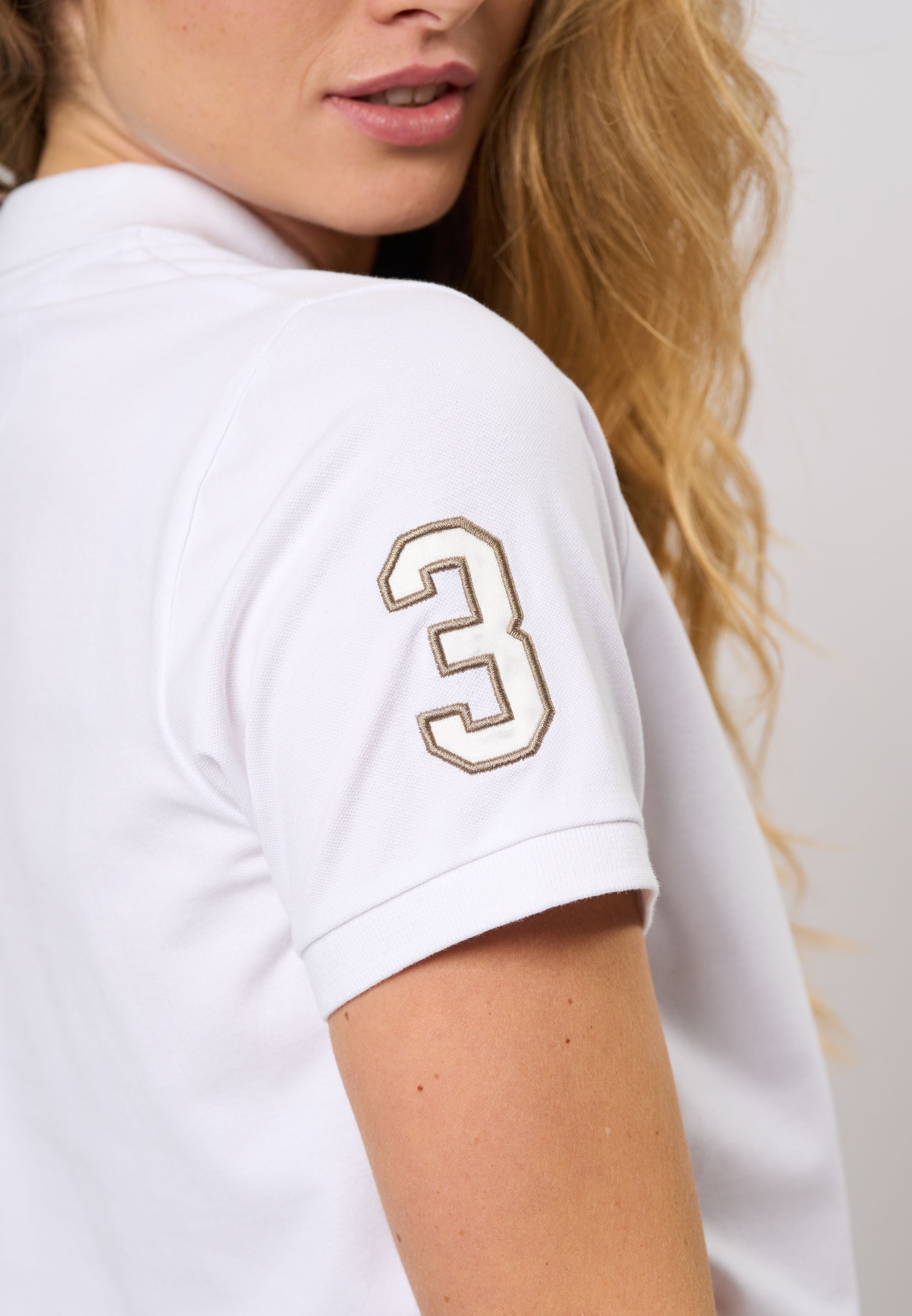 Hariet är en klassisk och sportig pikétröja med kort ärm. Den är tillverkad i ett mjukt och stretchigt tyg för hög komfort och en tidlös look. Pikékragen, de korta ärmarna och den broderade logotypen på bröstet ger en elegant look, medan den broderade 3:an på höger ärm ger en sportig och modern touch. Styla den med någon av våra kjolar eller jeans för en komplett och snygg look.