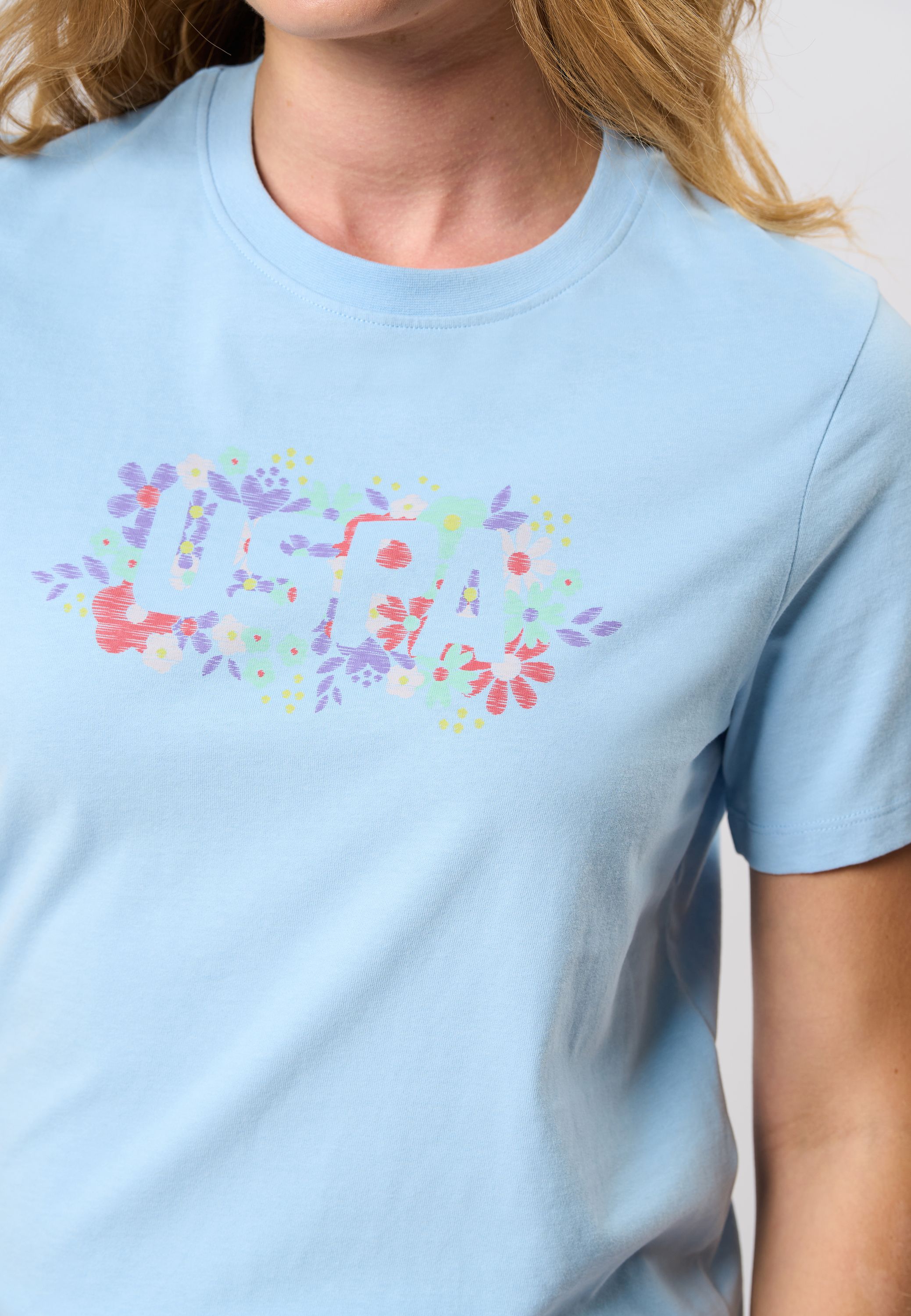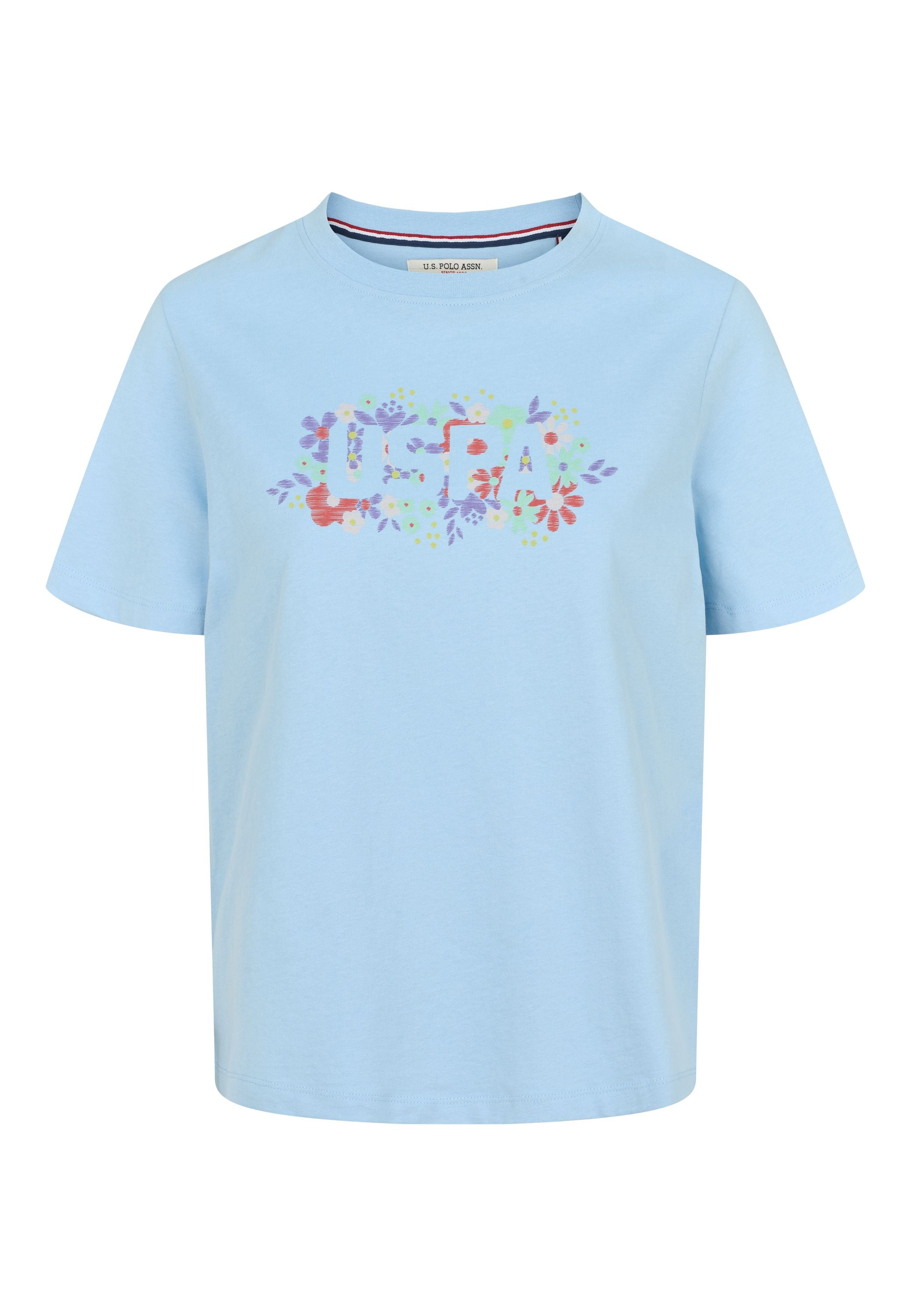 Haya är en klassisk T-shirt med rund halsringning. Det färgglada USPA-trycket på bröstet ger en fräsch och feminin look som passar perfekt till sommargarderoben. Haya är en mångsidig T-shirt som du enkelt kan kombinera med ett par jeans eller shorts.