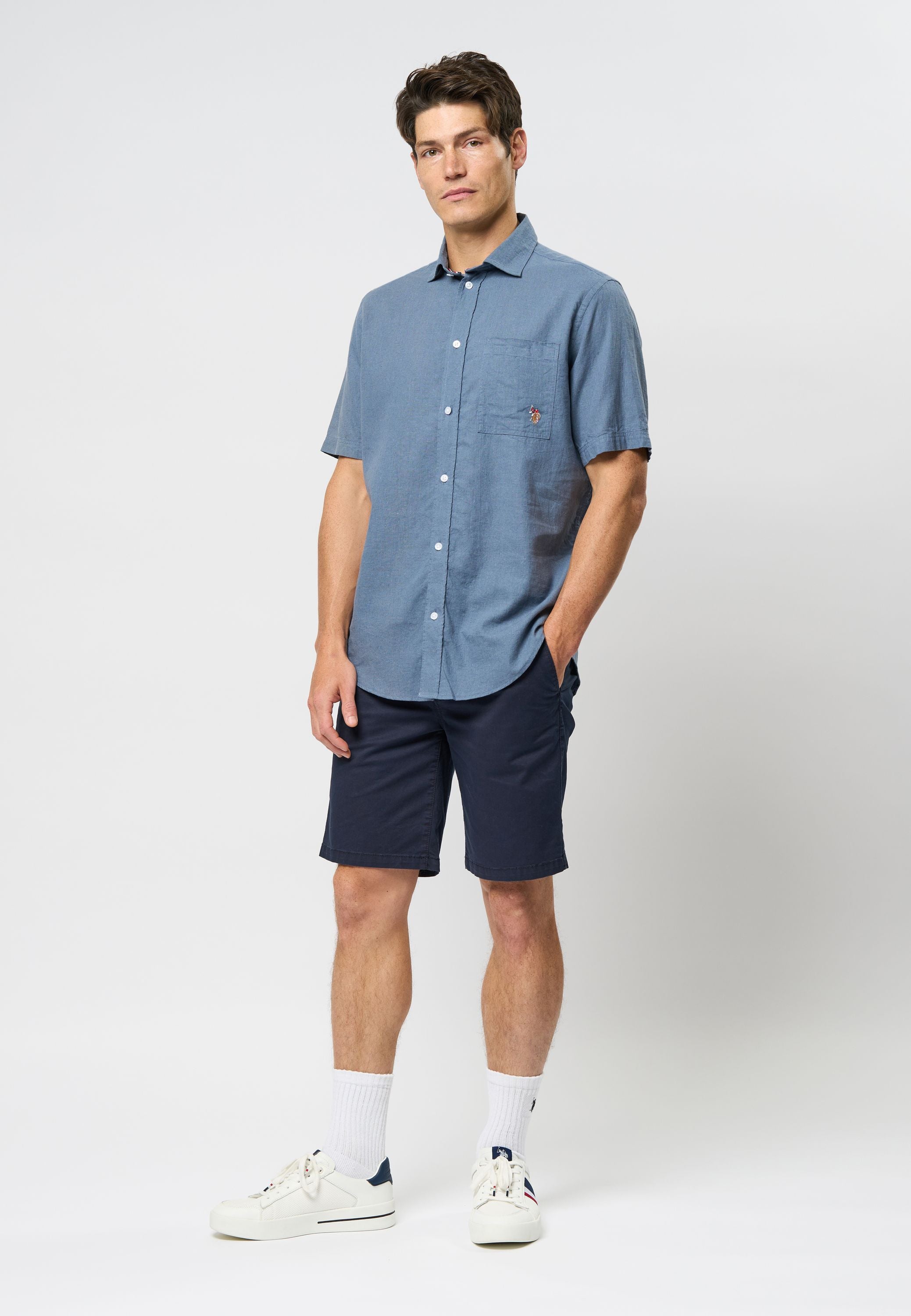 Flori är vår kortärmade linneskjorta. Den är tillverkad i en blandning av linne och bomull, vilket gör den mycket bekväm att bära samt ger den en lätt känsla. Flori är en tunn skjorta som passar perfekt att bära hela sommaren. Den har en bröstficka där vår logotyp finns broderad. Köp Flori tillsammans med våra linnebyxor Ivan eller våra linneshorts Jorge för ett komplett set – perfekt till sommaren.