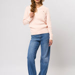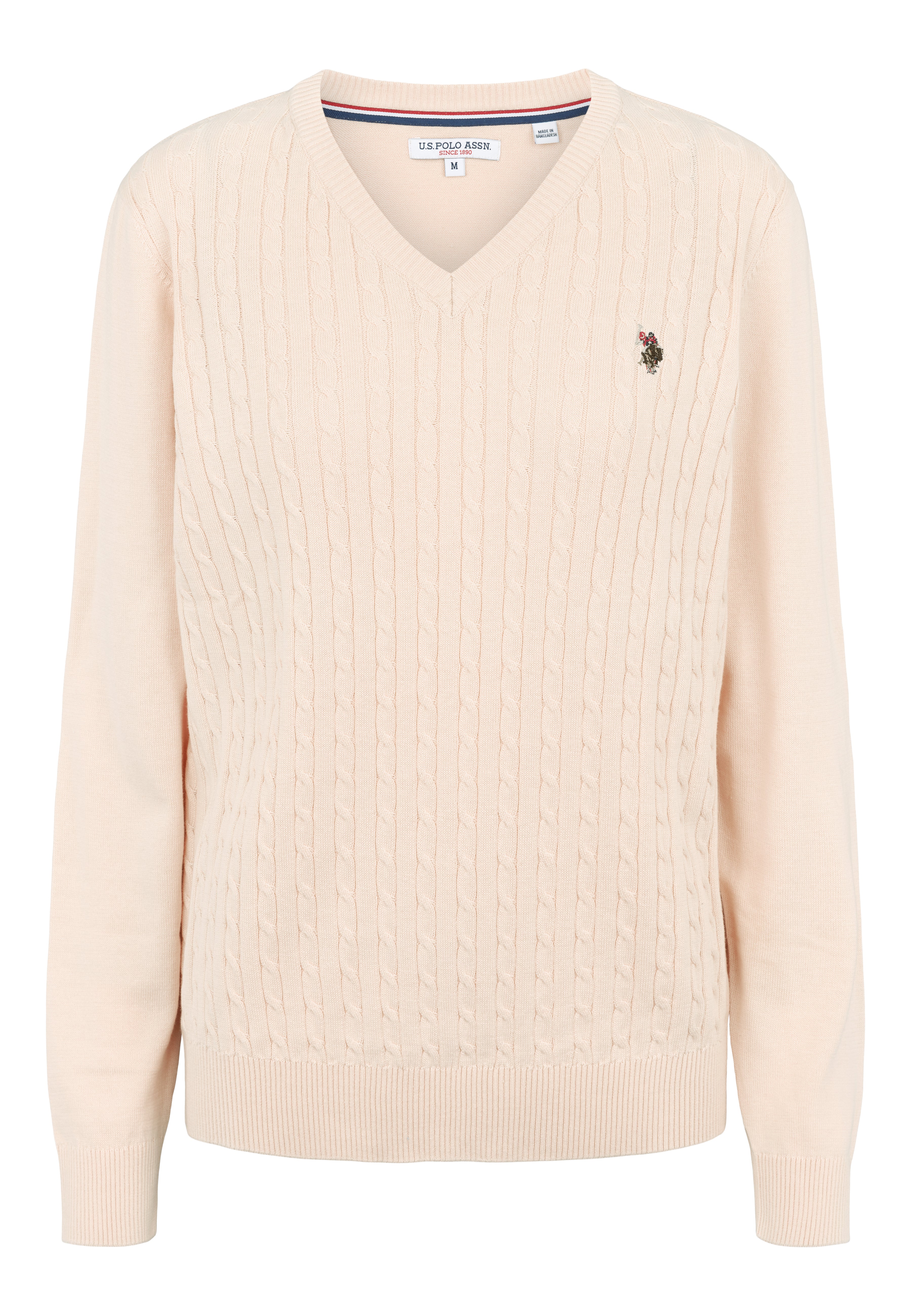 Bell är en snygg kabelstickad tröja med V-ringning. Den har en klassisk och formell look och passar perfekt till att ha över en skjorta för en snygg vardagslook. Bell har ribbstickning på både ärmar och midjan. Den har vår logotyp broderad på bröstet för en klassisk pololook.