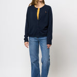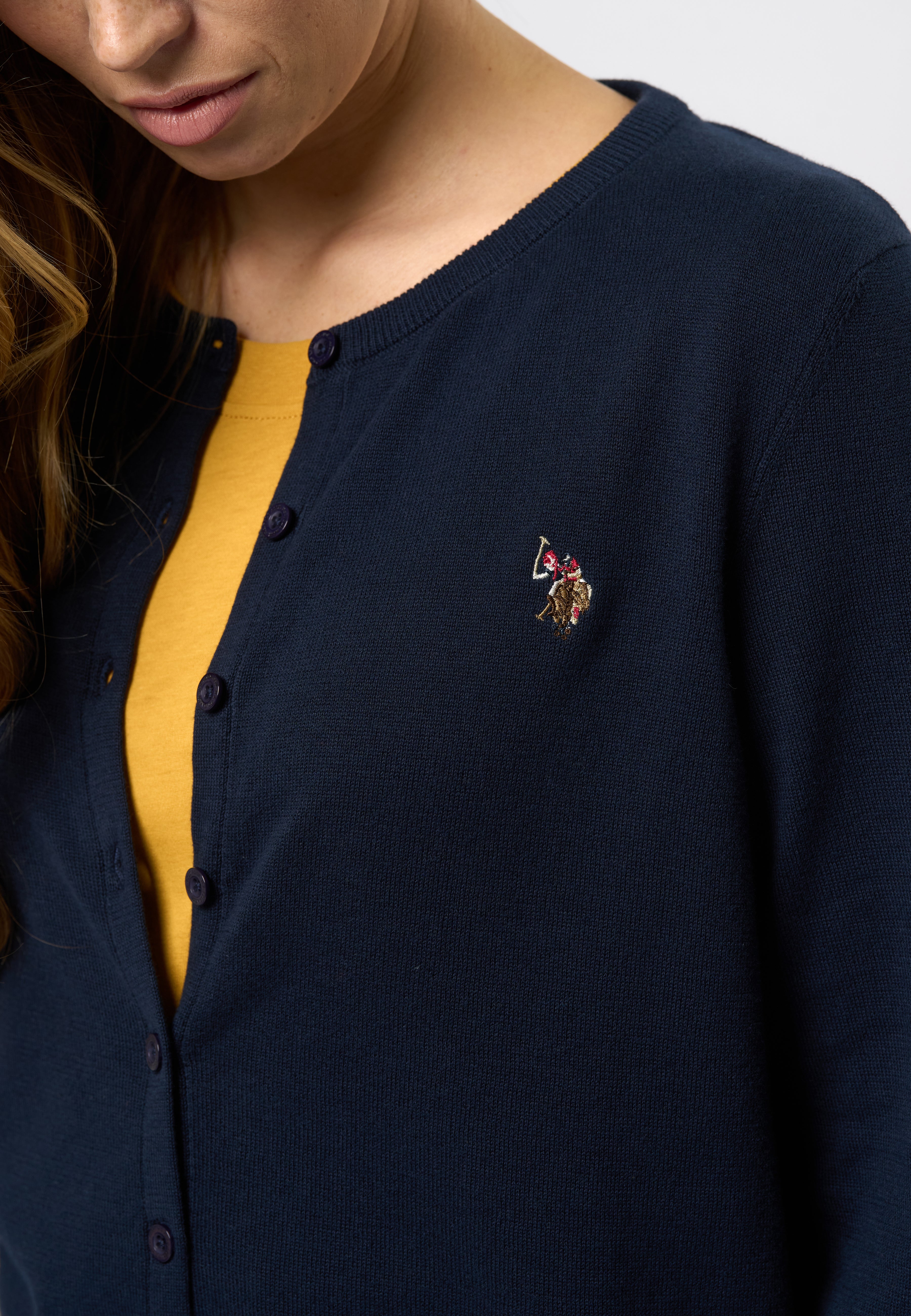 Kimmi är en klassisk cardigan med ett enkelt, feminint uttryck. Den har en fin och lätt kvalitet, rund halsringning och en elegant knäppning framtill. Cardiganen pryds av en diskret, broderad logga på bröstet, och den bekväma passformen gör den perfekt som ett lätt plagg både till vardags och på kontoret. Bär den öppen över en topp eller stängd för en mer stilren look.