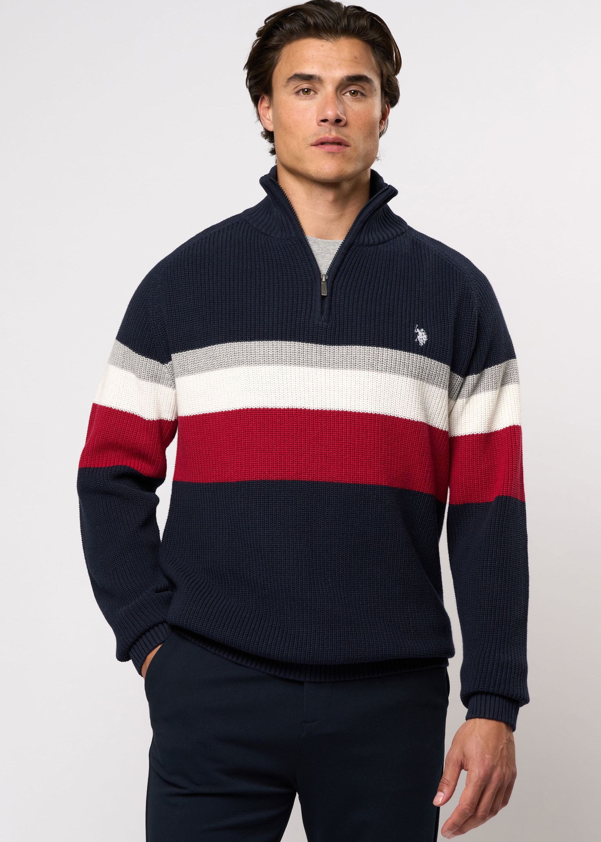 Hos U.S. Polo Assn. hittar du ett brett utbud av stickade tröjor för herr – skapade med fokus på komfort, passform och en tidlös stil. Sortimentet består av både klassiska rundhalsade modeller och tröjor med half zip – alla i bomullskvalitet som känns behaglig mot huden och är enkla att bära till vardags.
