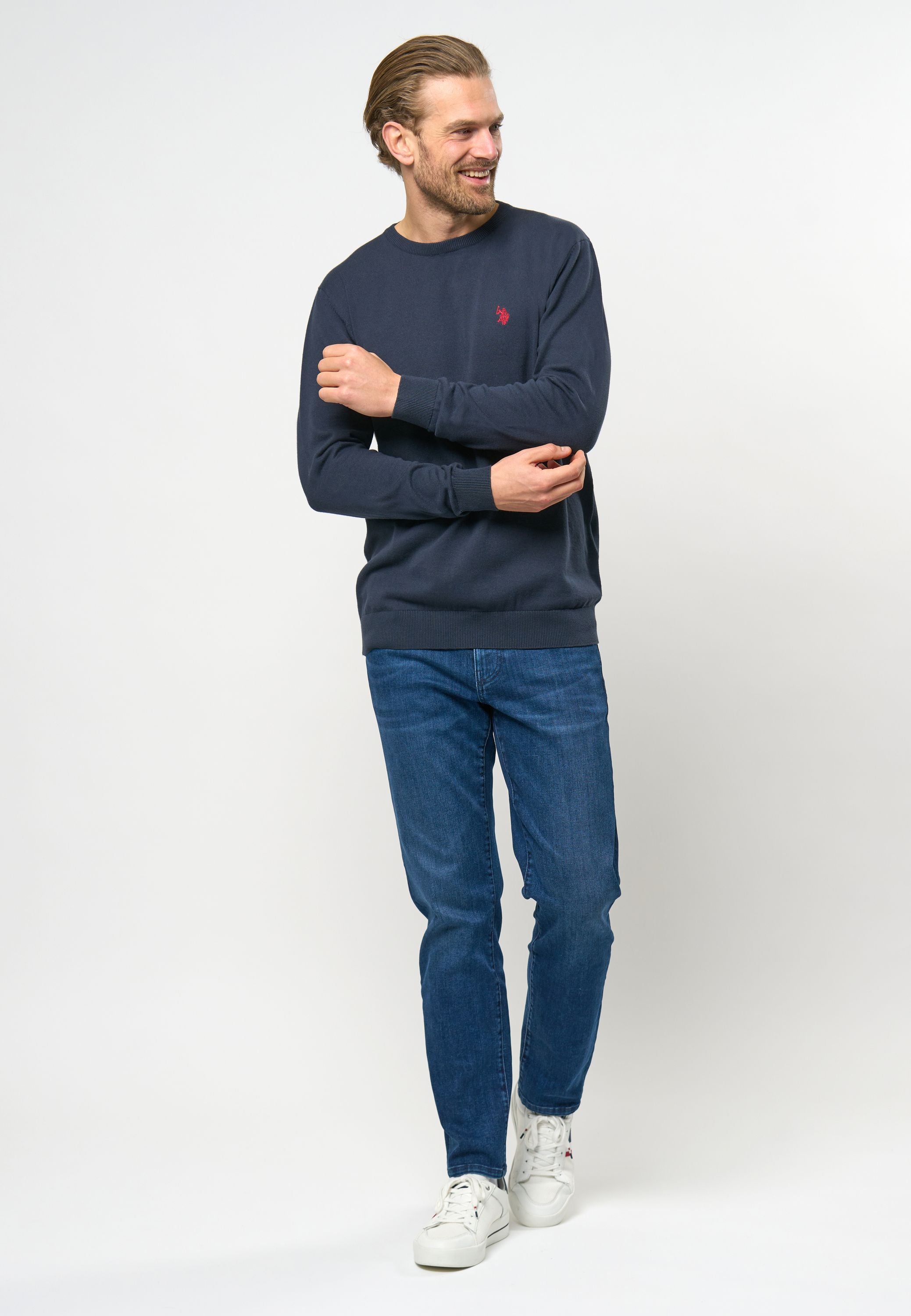 Adair är en klassisk, tunn bomullströja som kan användas året runt. Bär den över en skjorta för en elegant och formell stil, eller ensam för en mer avslappnad look. Tröjan har vår ikoniska logga diskret broderad på bröstet.