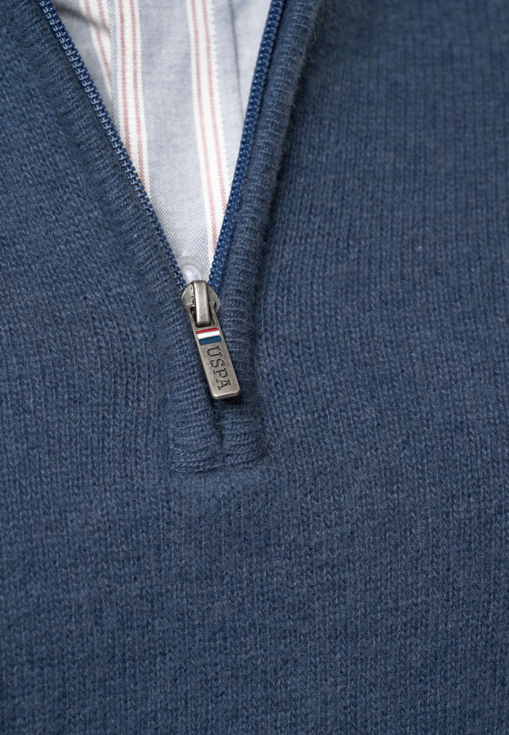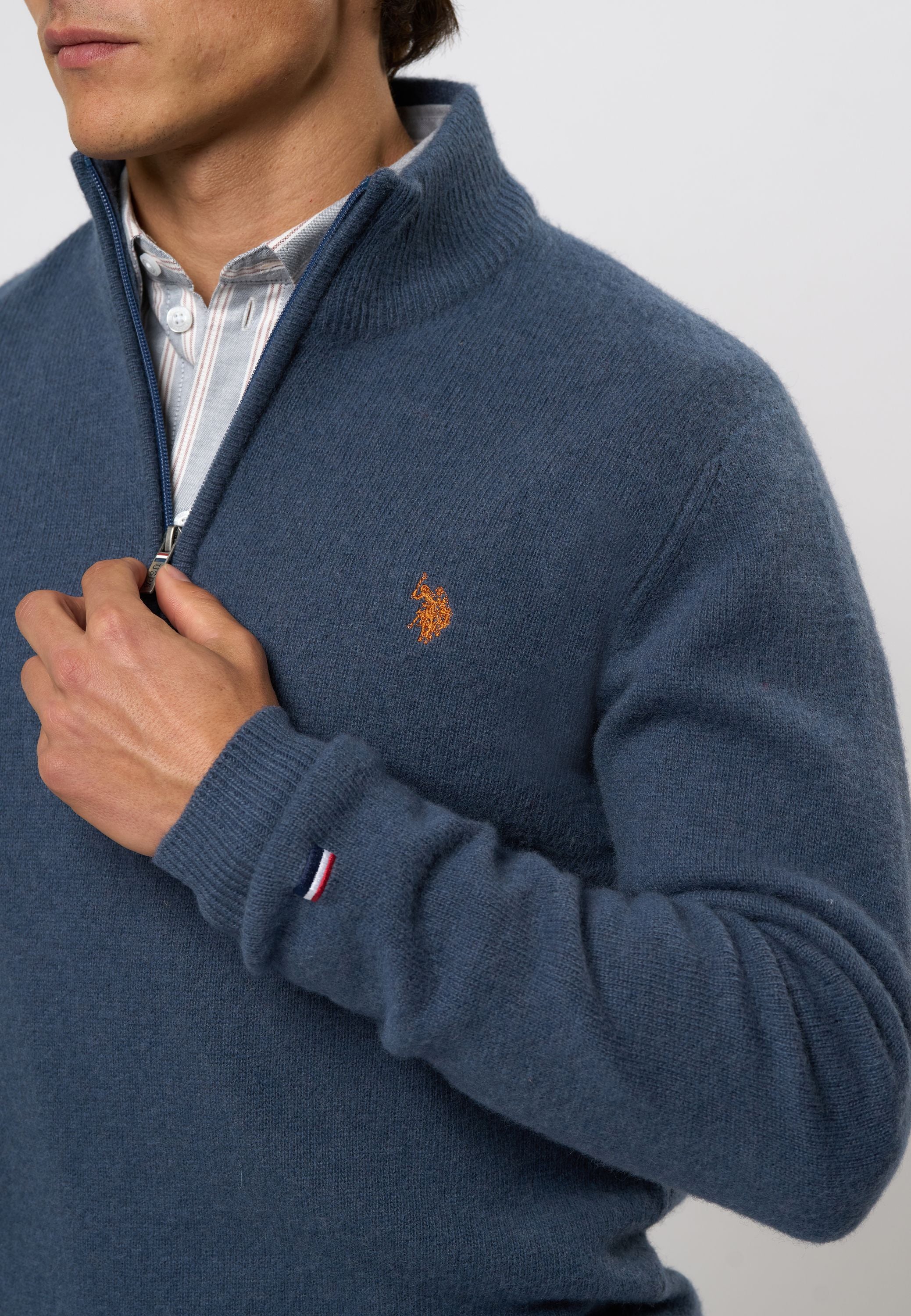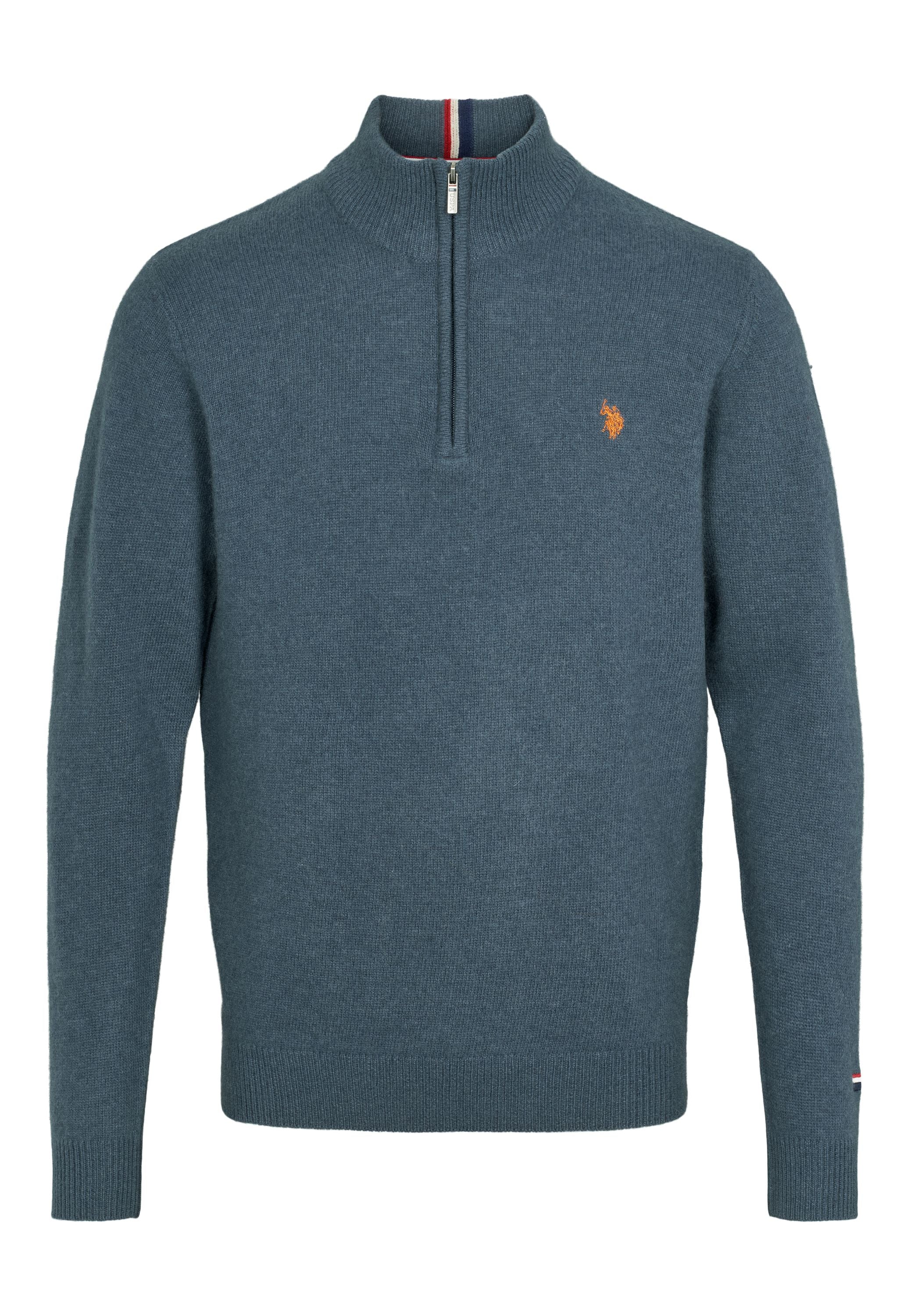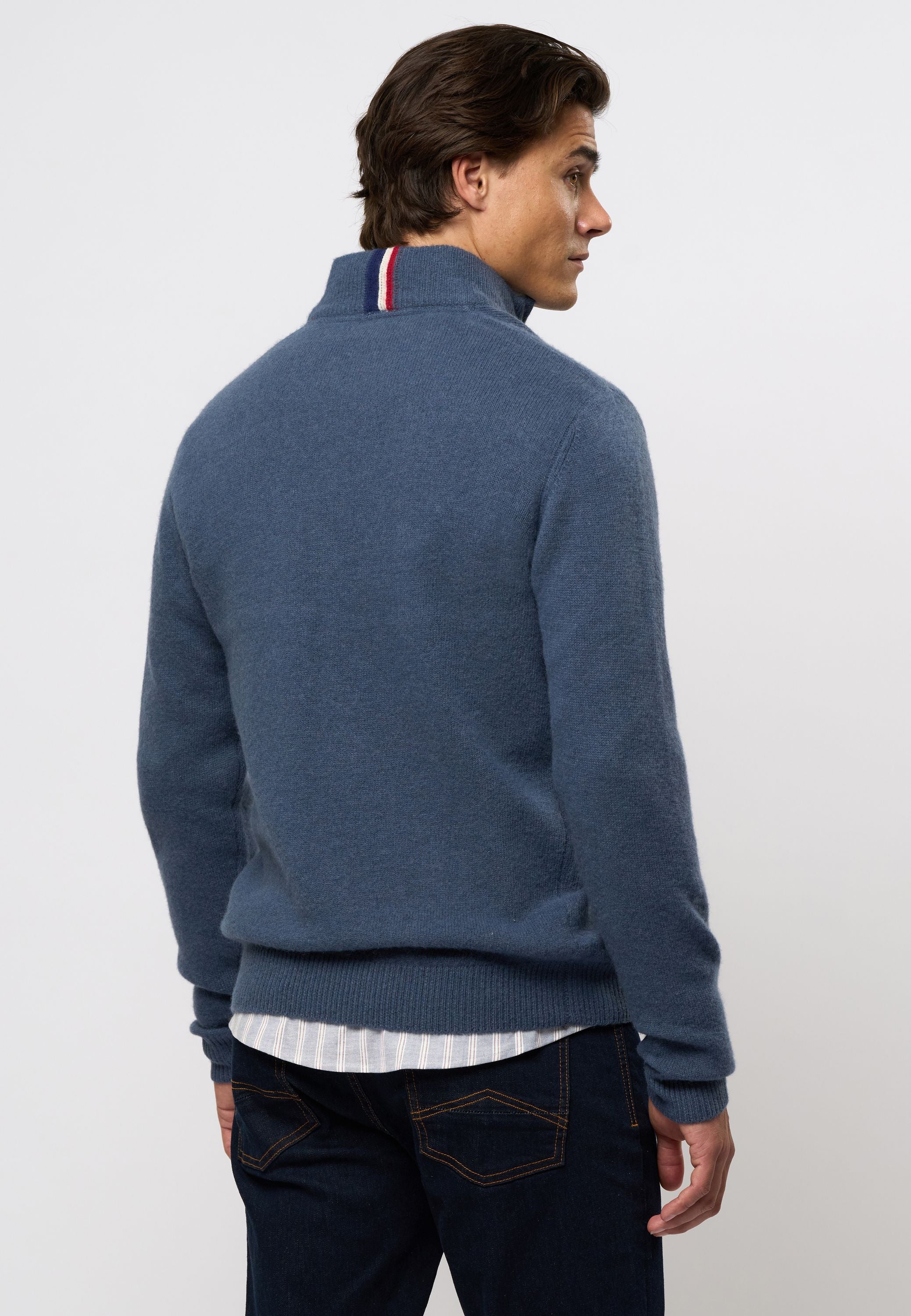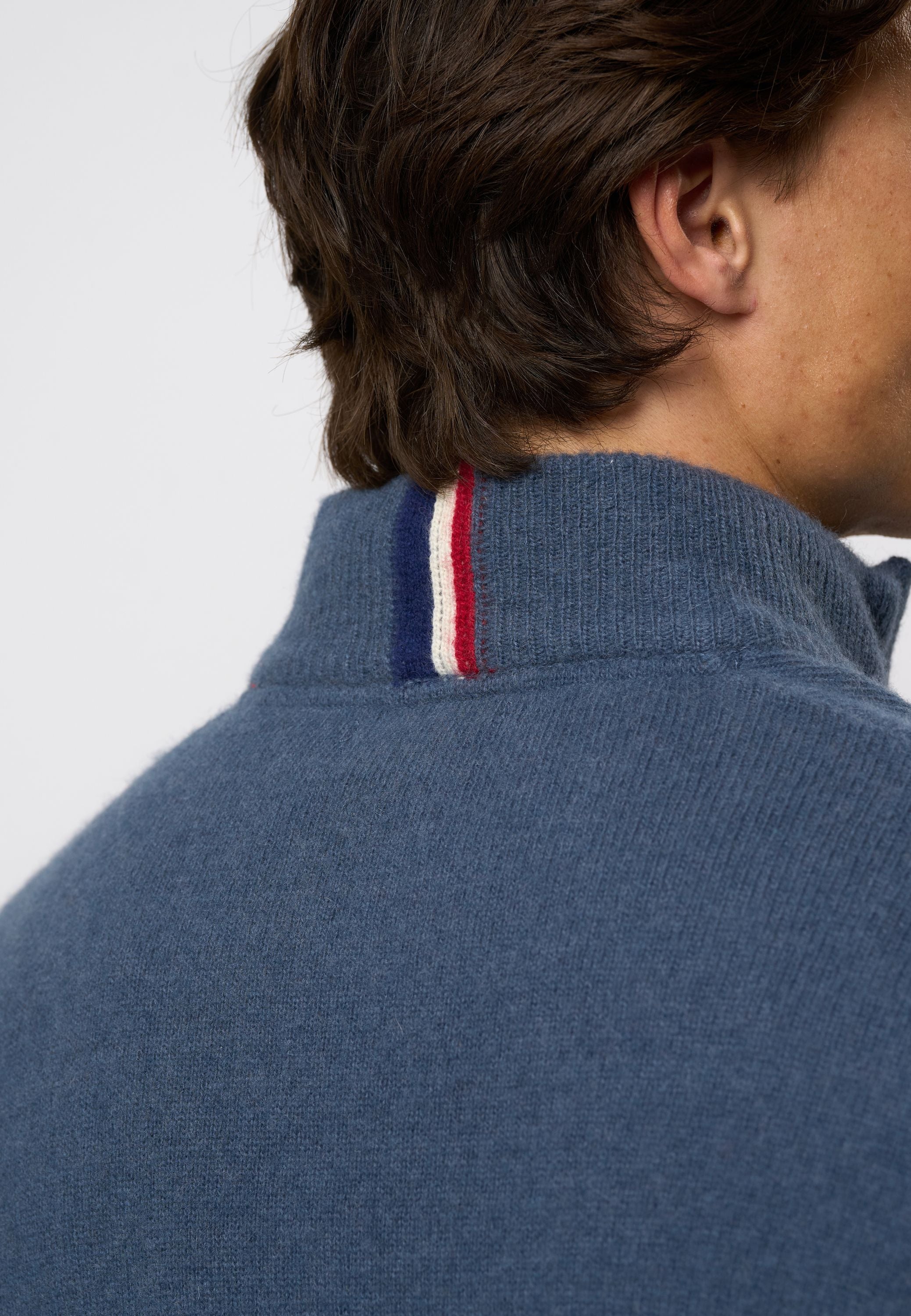 • Stickad i lammull med half-zip