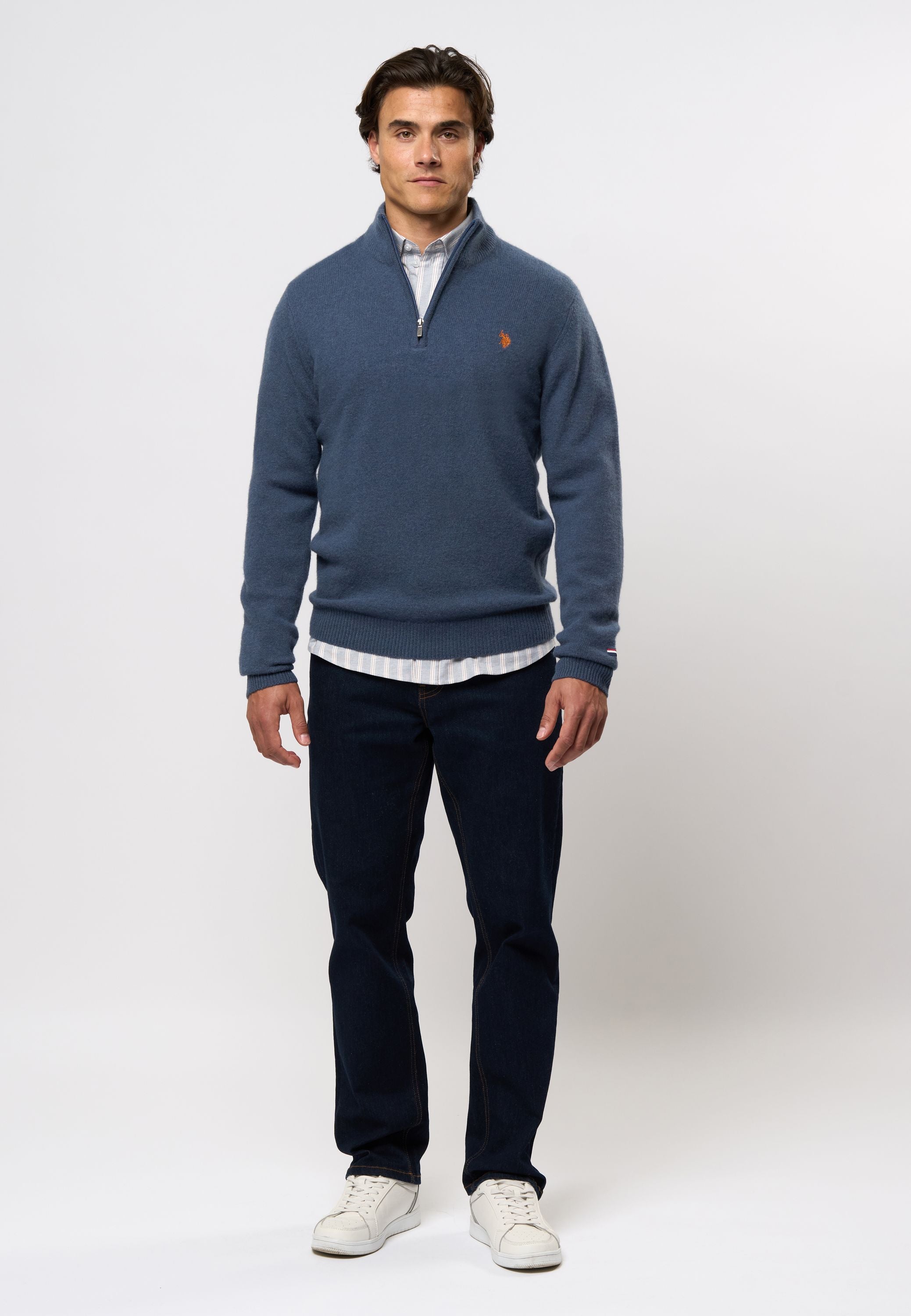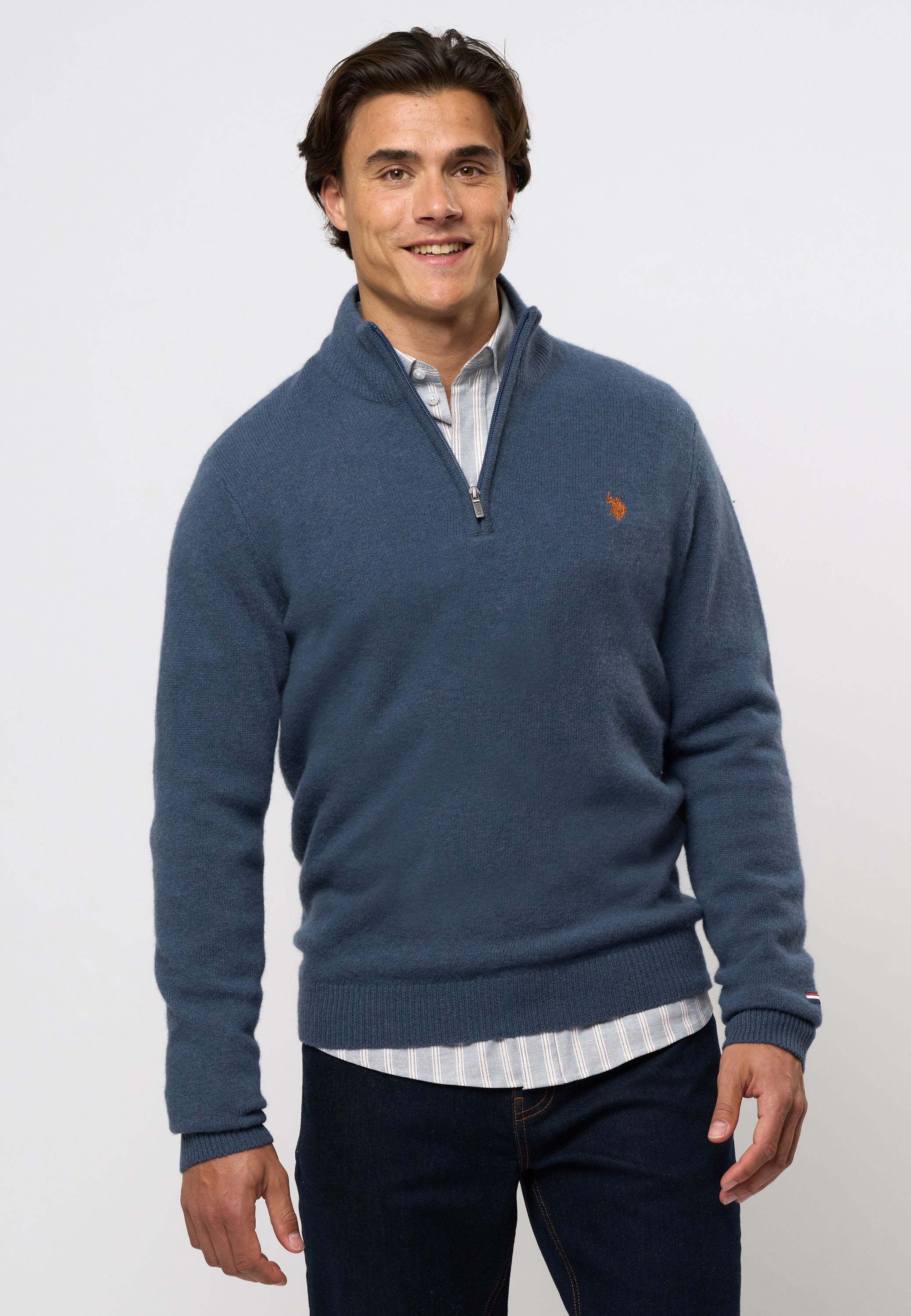 Kevin är en klassisk sticka med half-zip i en läcker lammullskvalitet. Ullen gör tröjan idealisk för de kalla höst- och vintermånaderna. Kevin har vår logotyp broderad på bröstet samt subtila signaturränder på kragen som ger en snygg touch.