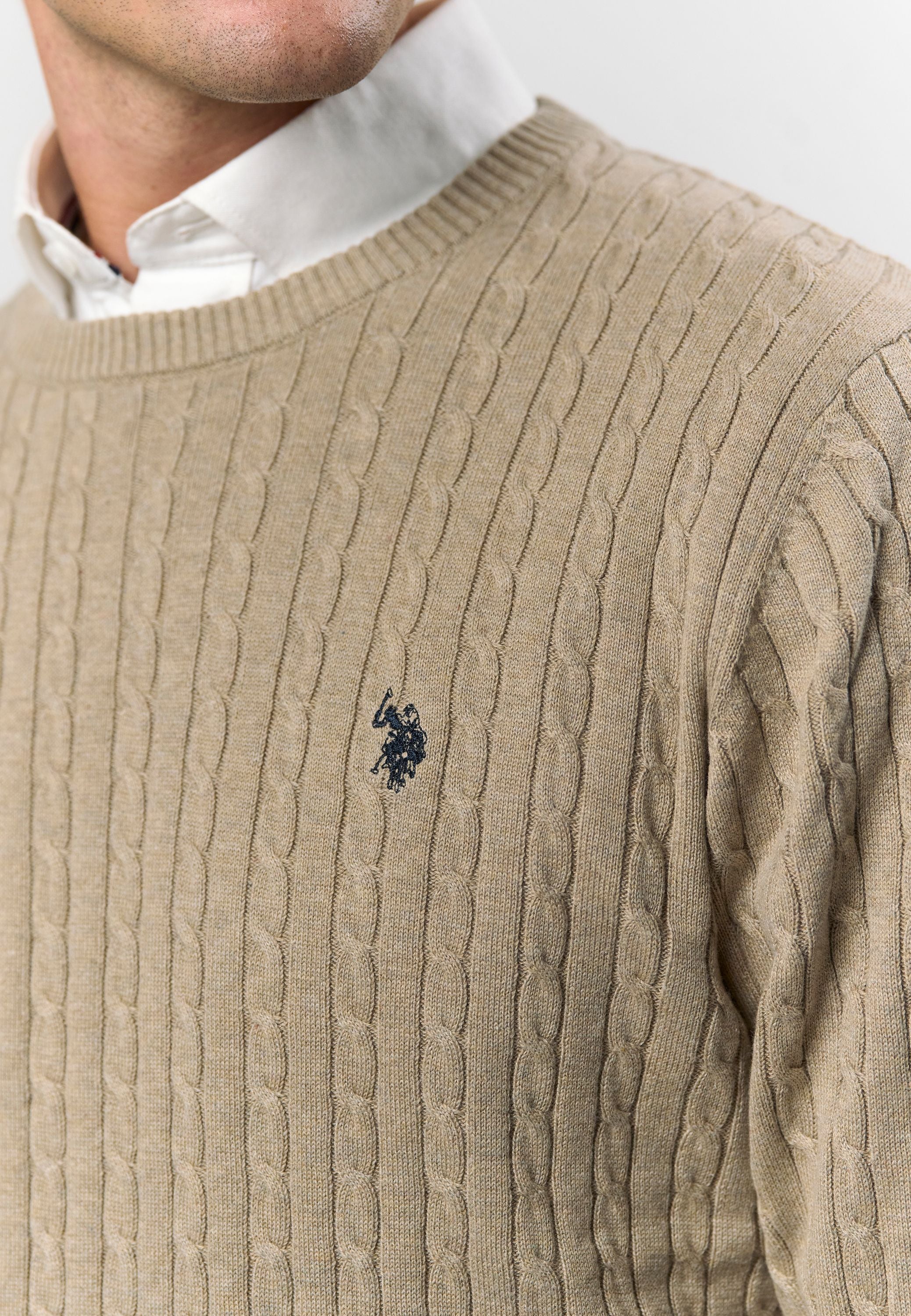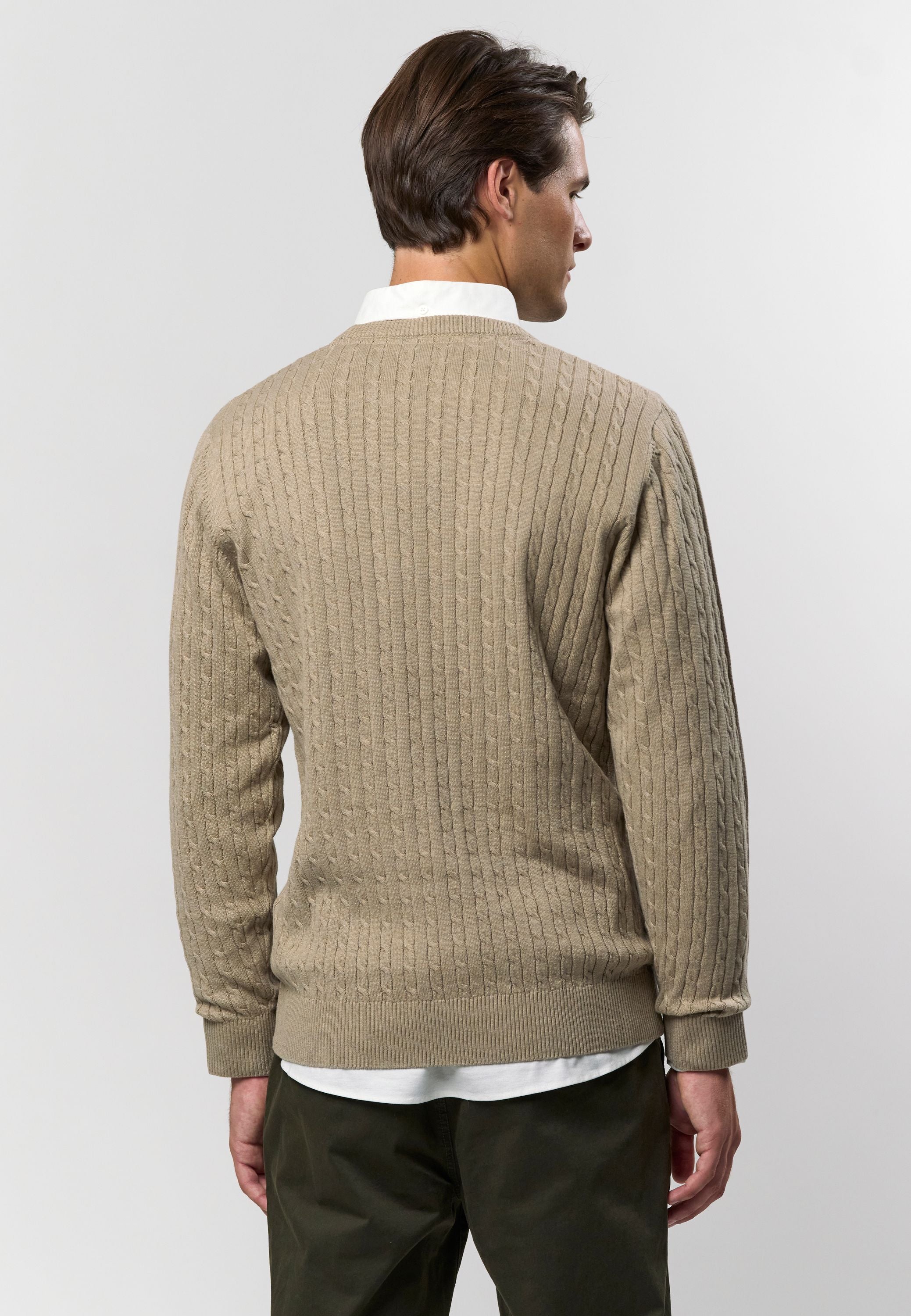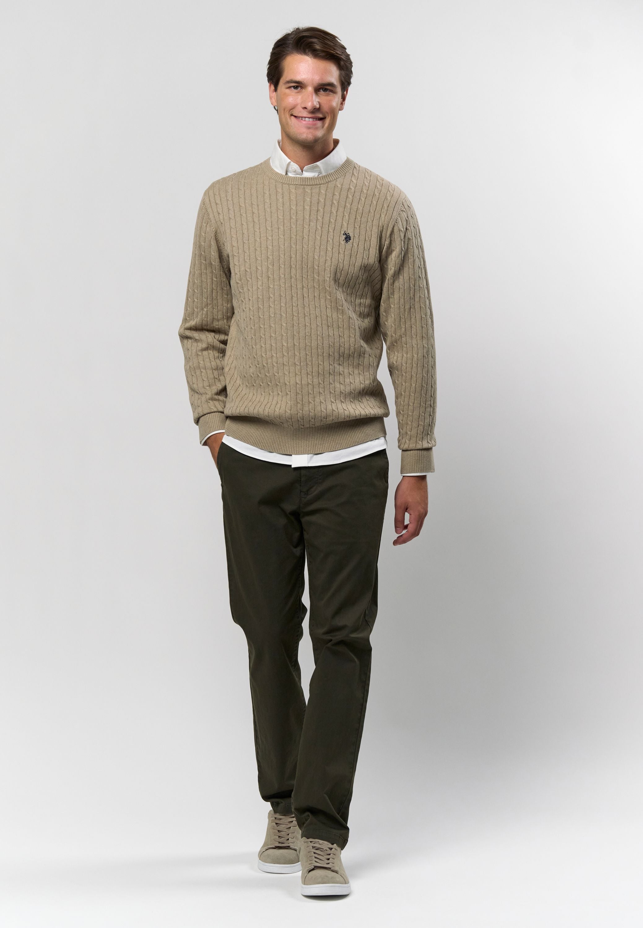 Mads är en mysig kabelstickad tröja som kombinerar tidlös elegans med komfort. Den klassiska designen med rund halsringning och ribbade kanter gör att tröjan passar utmärkt till både avslappnade och formella looks. Bär den som den är för en stilren look eller styla den med en skjorta under för en mer sofistikerad stil. Den broderade logotypen på bröstet ger en diskret och exklusiv touch vilket gör Mads till ett måste i varje garderob. Perfekt till vardagliga eller avslappnade tillfällen.