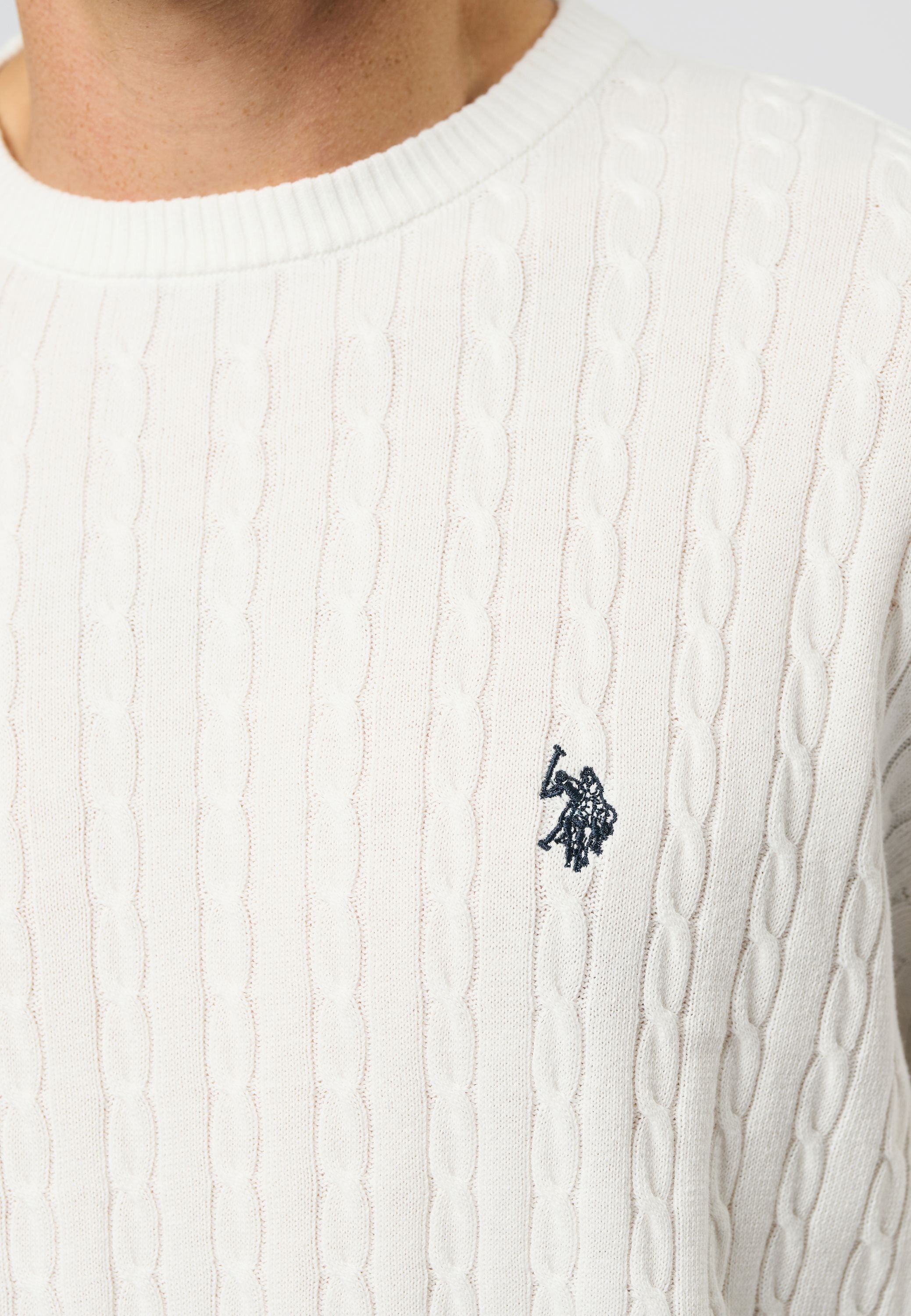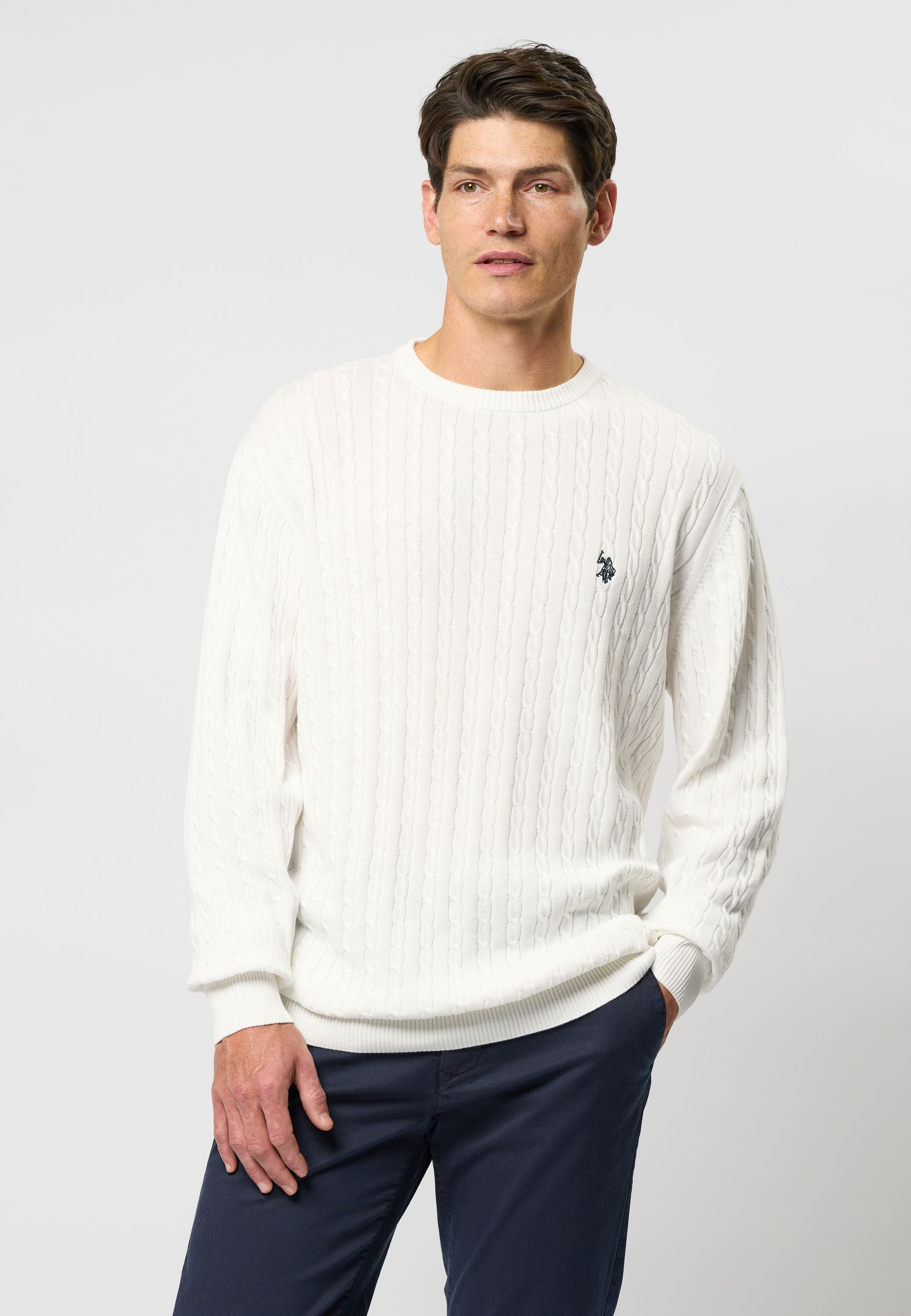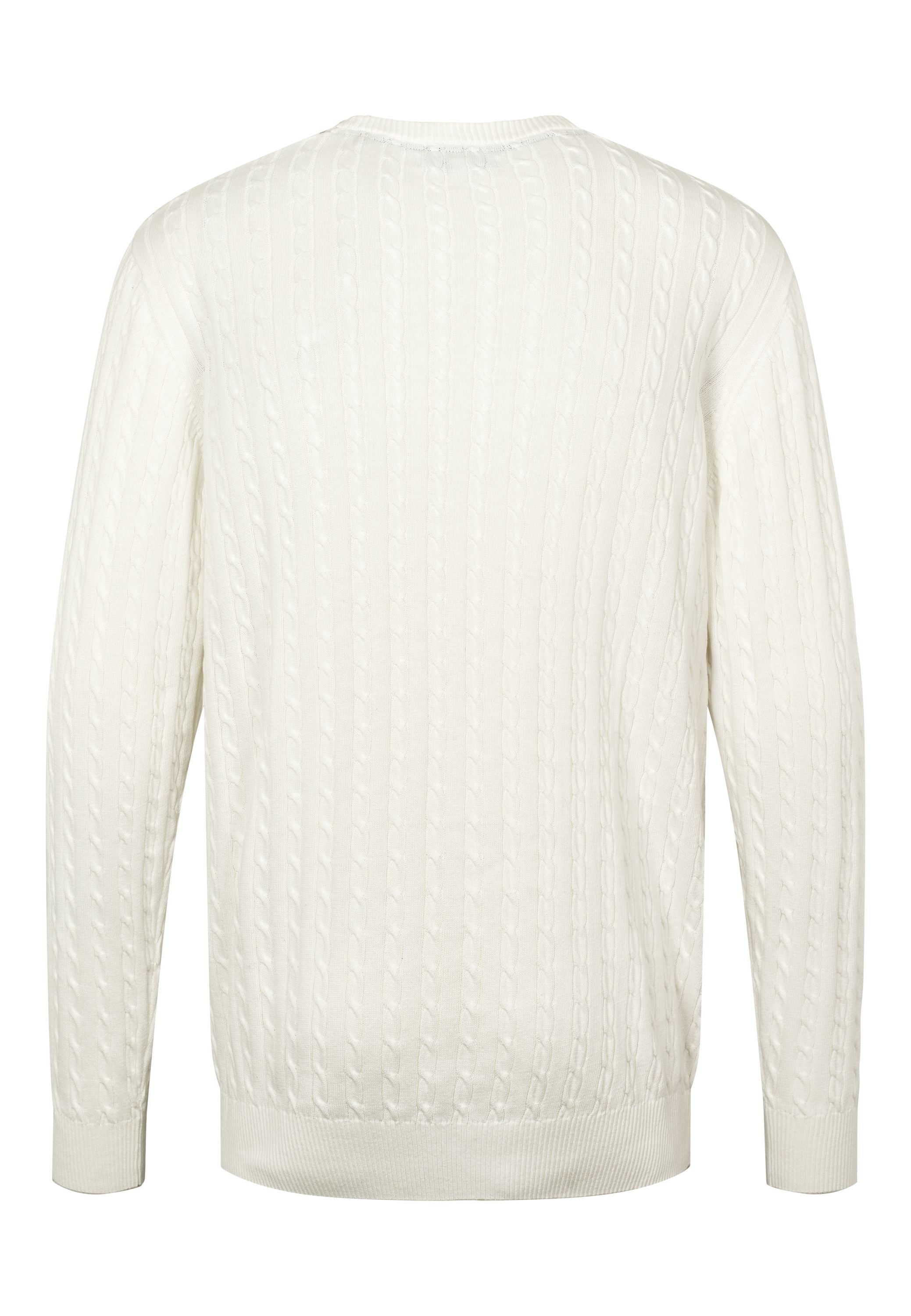 Mads är en mysig kabelstickad tröja som kombinerar tidlös elegans med komfort. Den klassiska designen med rund halsringning och ribbade kanter gör att tröjan passar utmärkt till både avslappnade och formella looks. Bär den som den är för en stilren look eller styla den med en skjorta under för en mer sofistikerad stil. Den broderade logotypen på bröstet ger en diskret och exklusiv touch vilket gör Mads till ett måste i varje garderob. Perfekt till vardagliga eller avslappnade tillfällen.