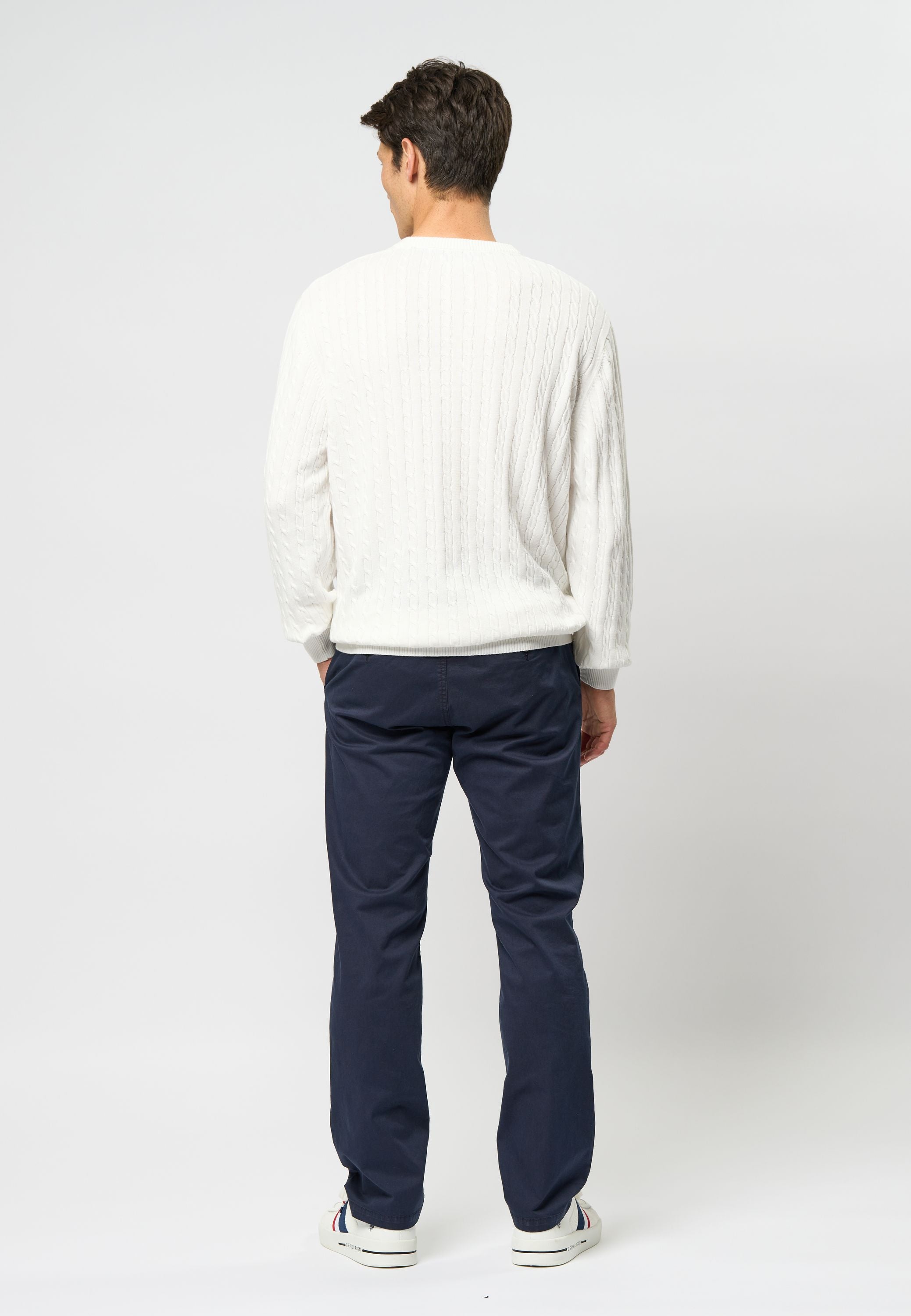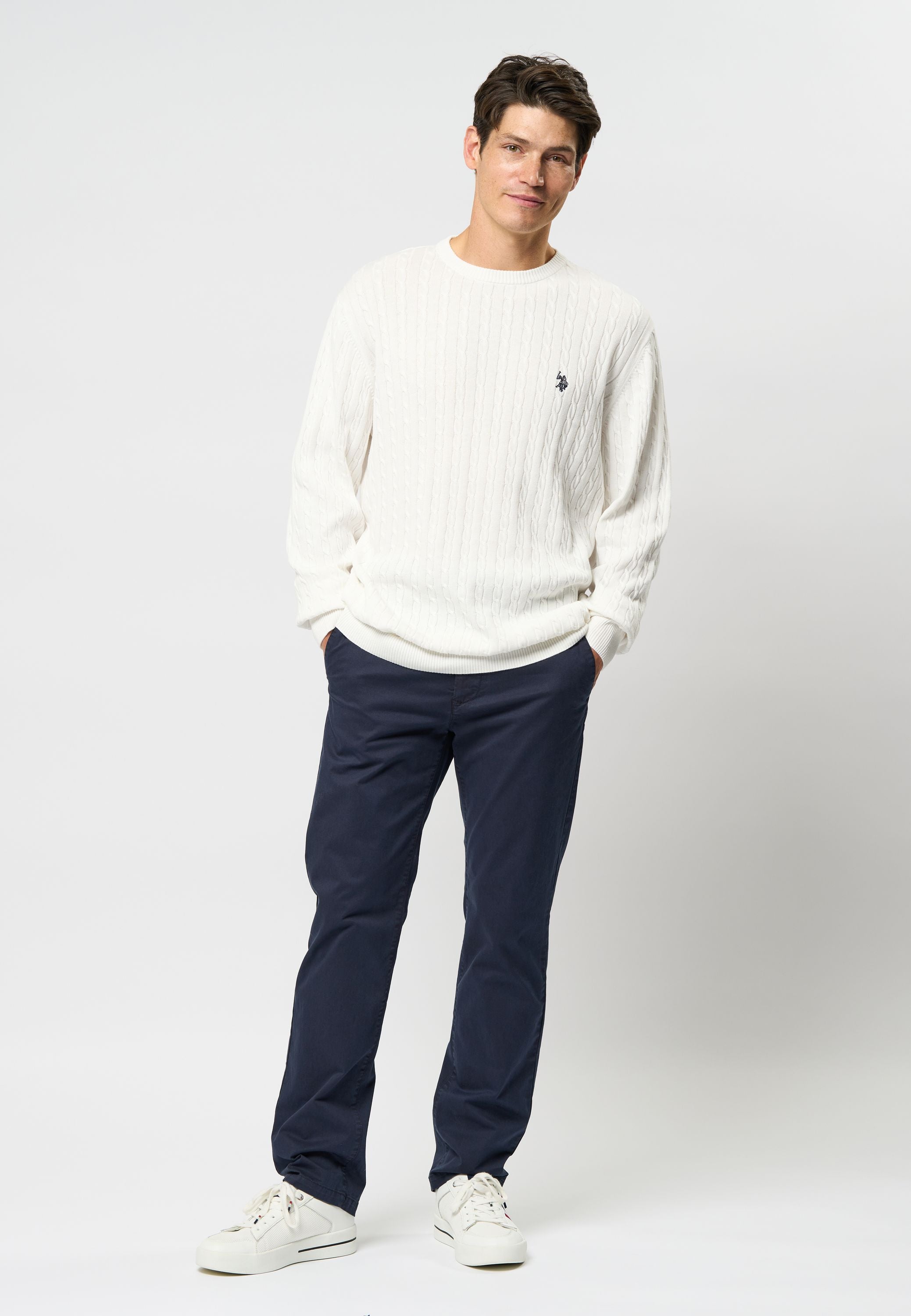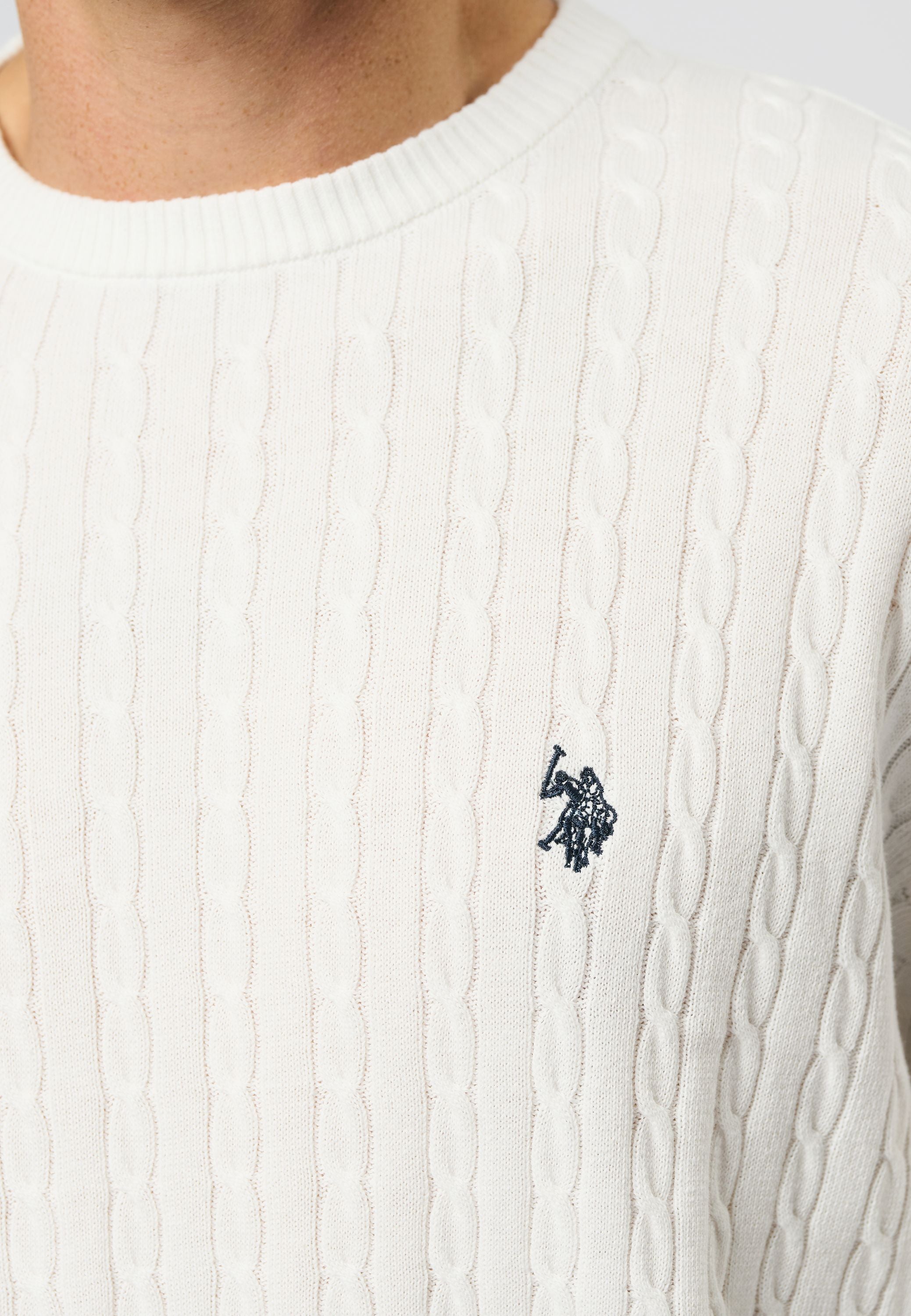 Mads är en mysig kabelstickad tröja som kombinerar tidlös elegans med komfort. Den klassiska designen med rund halsringning och ribbade kanter gör att tröjan passar utmärkt till både avslappnade och formella looks. Bär den som den är för en stilren look eller styla den med en skjorta under för en mer sofistikerad stil. Den broderade logotypen på bröstet ger en diskret och exklusiv touch vilket gör Mads till ett måste i varje garderob. Perfekt till vardagliga eller avslappnade tillfällen.