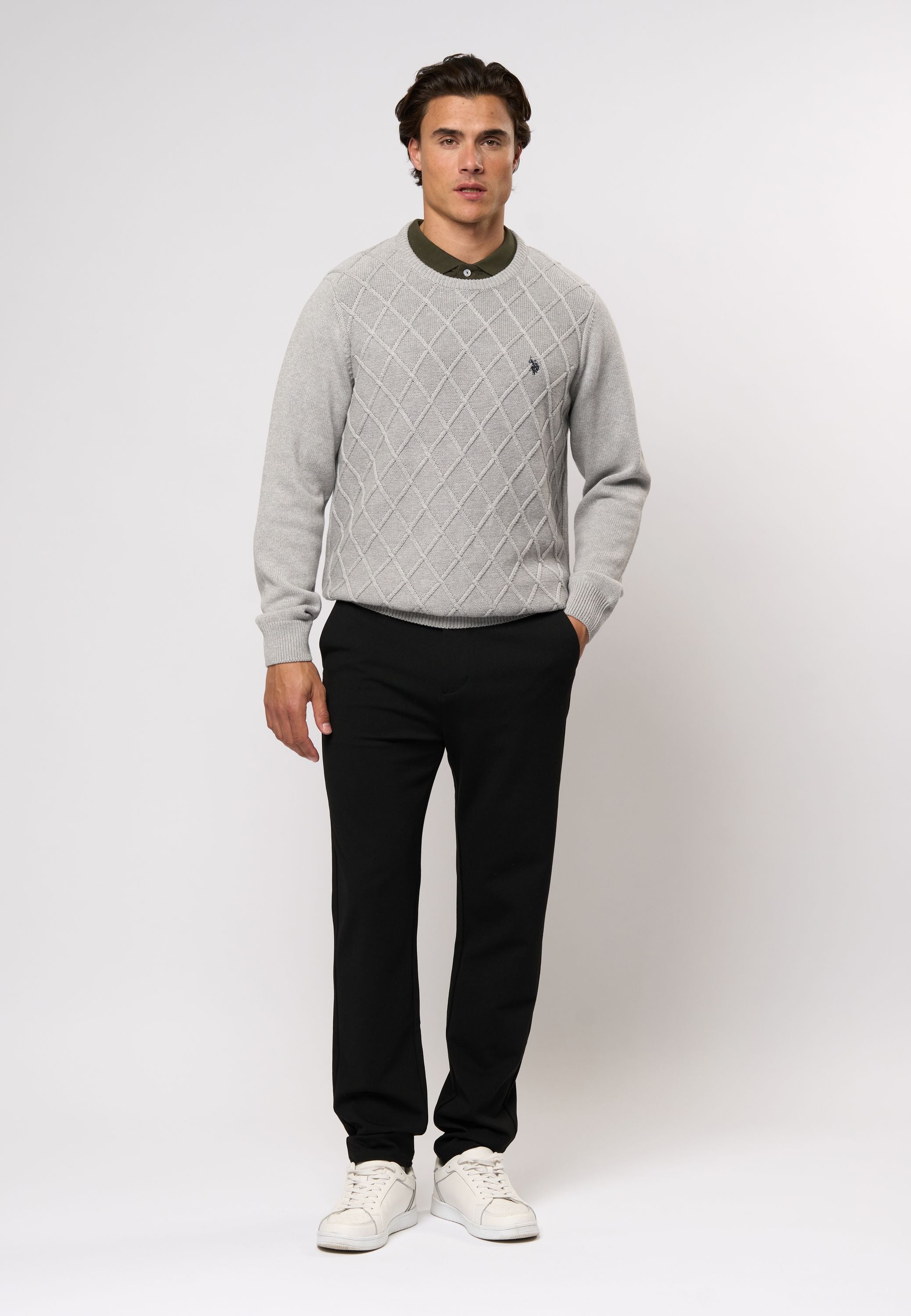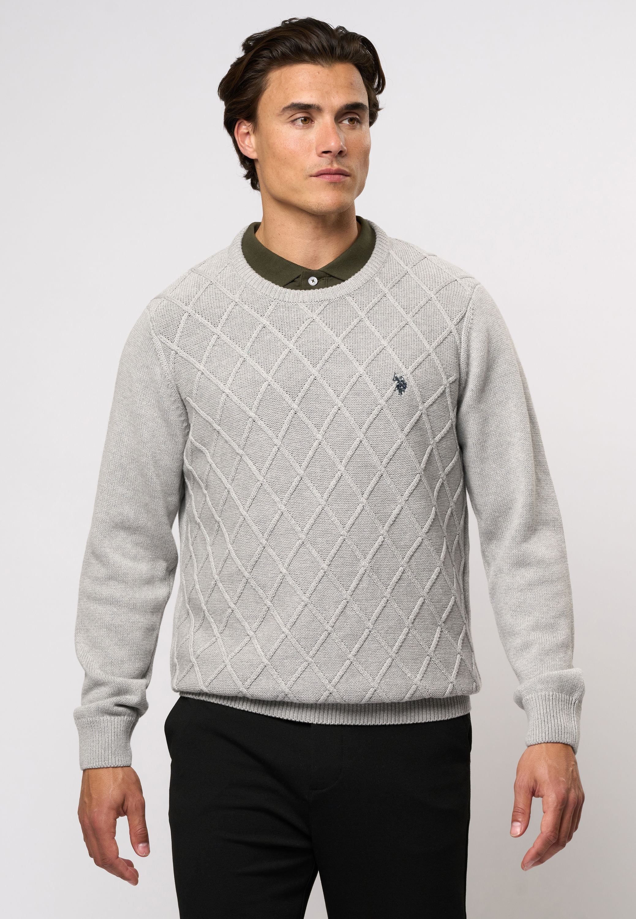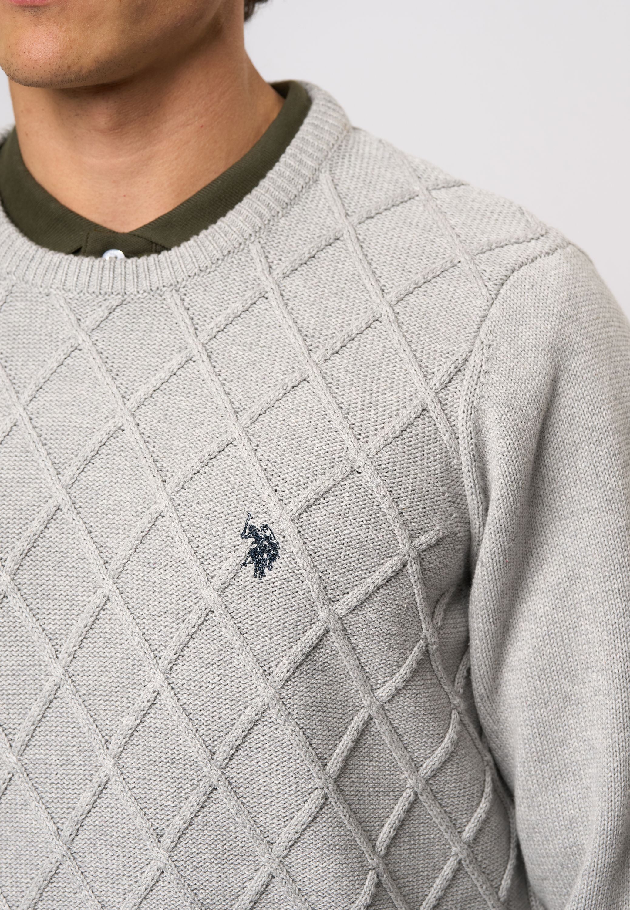 Remy är en klassisk stickad tröja med rund hals och ett elegant, quiltat mönster på framsidan som ger ett stilrent och exklusivt uttryck. Den är gjord i ett mjukt och behagligt material och har ribbade kanter vid hals, ärmslut och nederkant för en bra passform. Den broderade loggan på bröstet ger en igenkännbar detalj. En mångsidig tröja som passar både till vardag och mer uppklädda tillfällen.