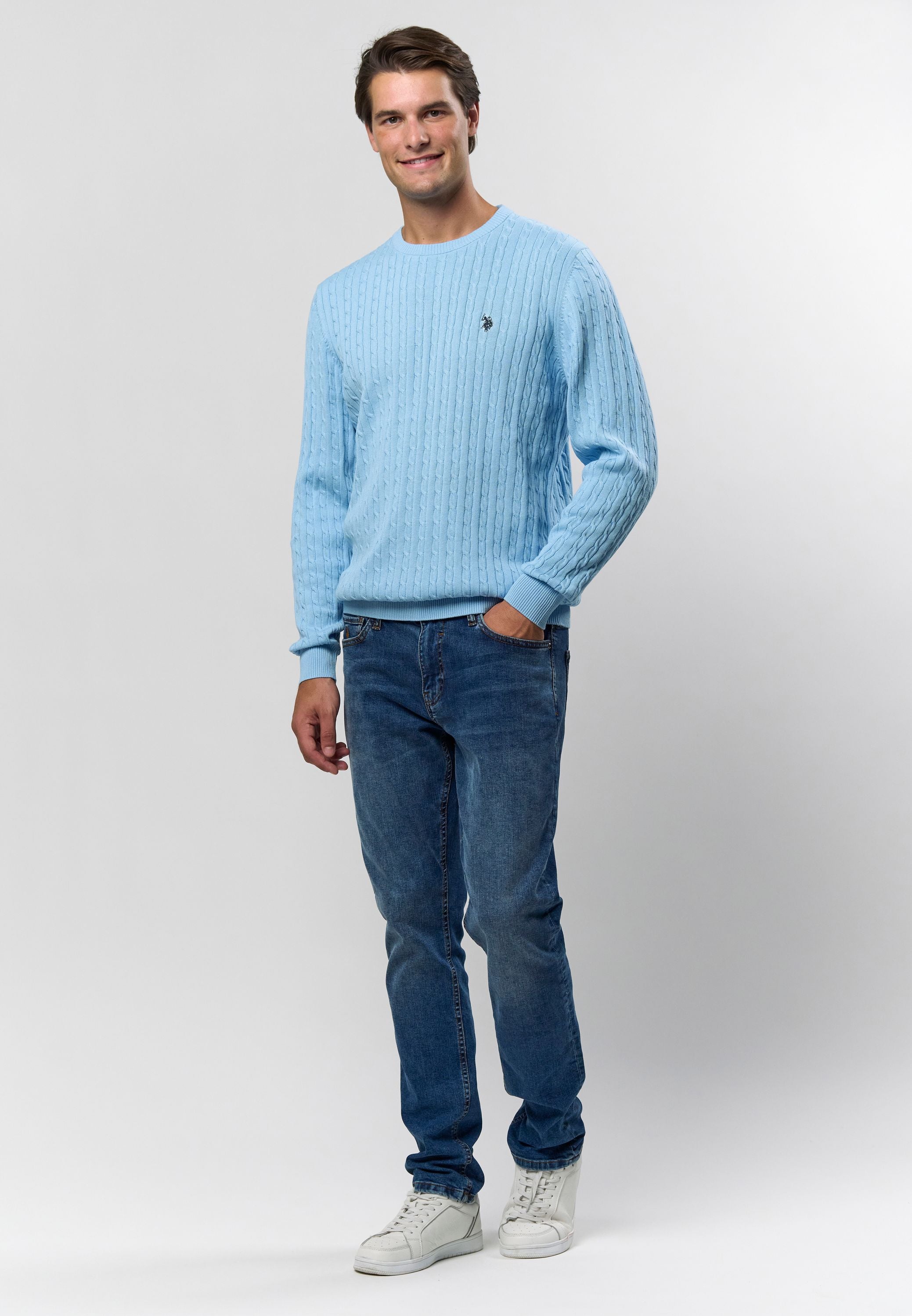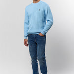 Mads är en mysig kabelstickad tröja som kombinerar tidlös elegans med komfort. Den klassiska designen med rund halsringning och ribbade kanter gör att tröjan passar utmärkt till både avslappnade och formella looks. Bär den som den är för en stilren look eller styla den med en skjorta under för en mer sofistikerad stil. Den broderade logotypen på bröstet ger en diskret och exklusiv touch vilket gör Mads till ett måste i varje garderob. Perfekt till vardagliga eller avslappnade tillfällen.