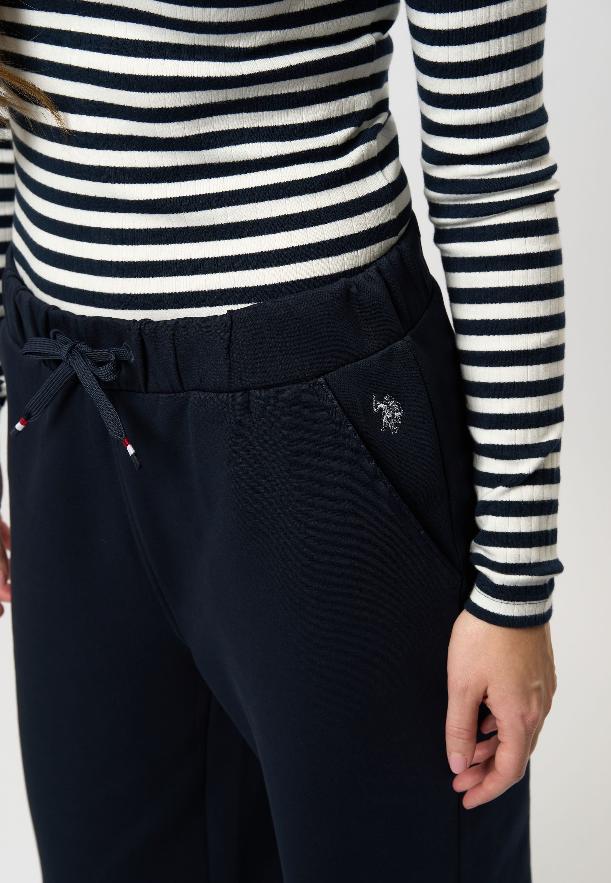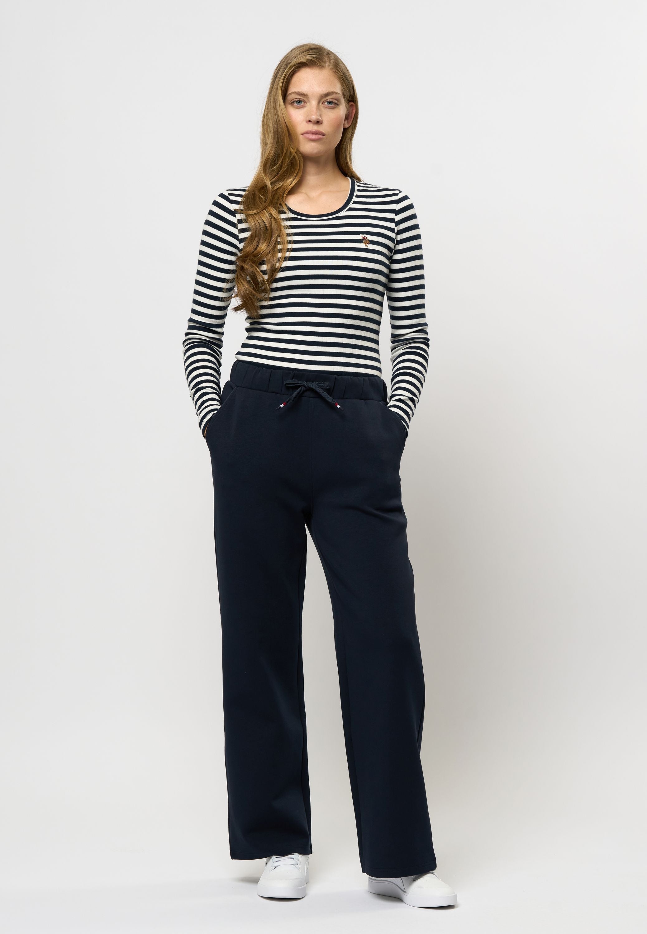Kaisa är sweatpants med en avslappnad attityd och ett smickrande, vida ben som ger en modern och bekväm look. Modellen är tillverkad i en slät, mjuk jerseykvalitet med mycket stretch, vilket gör dem perfekta för både hemmet, vardagen eller en vardaglig dag på språng. Midjan är elastisk med knytband, och byxorna har diskreta sidfickor och en liten broderad logga bak.