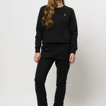 Helen är en supermjuk och mysig sweatshirt som passar perfekt till både vardagsbruk och avkoppling. Sweatshirten har ribbstickade muddar i ärmsluten och midjan för en åtsittande passform, medan den diskreta broderade logotypen på bröstet ger en enkel men snygg touch. Kombinera Helen med våra sweatshorts Iben eller sweatpants India för ett komplett set, eller styla den med jeans för en avslappnad och modern look.