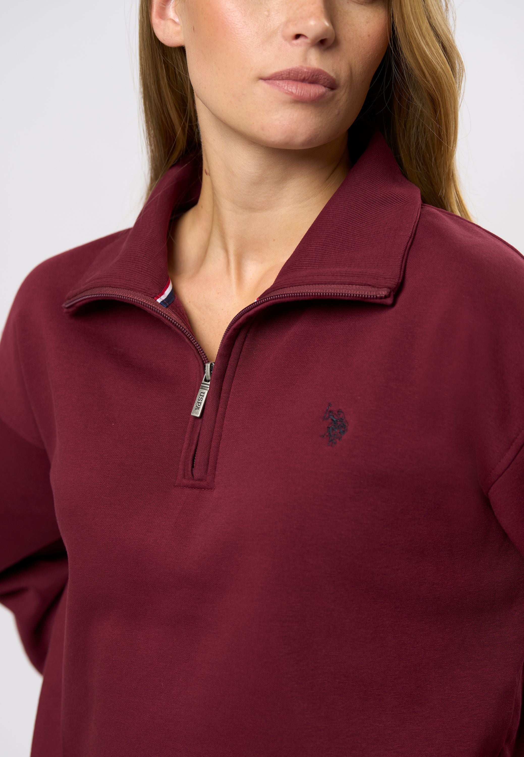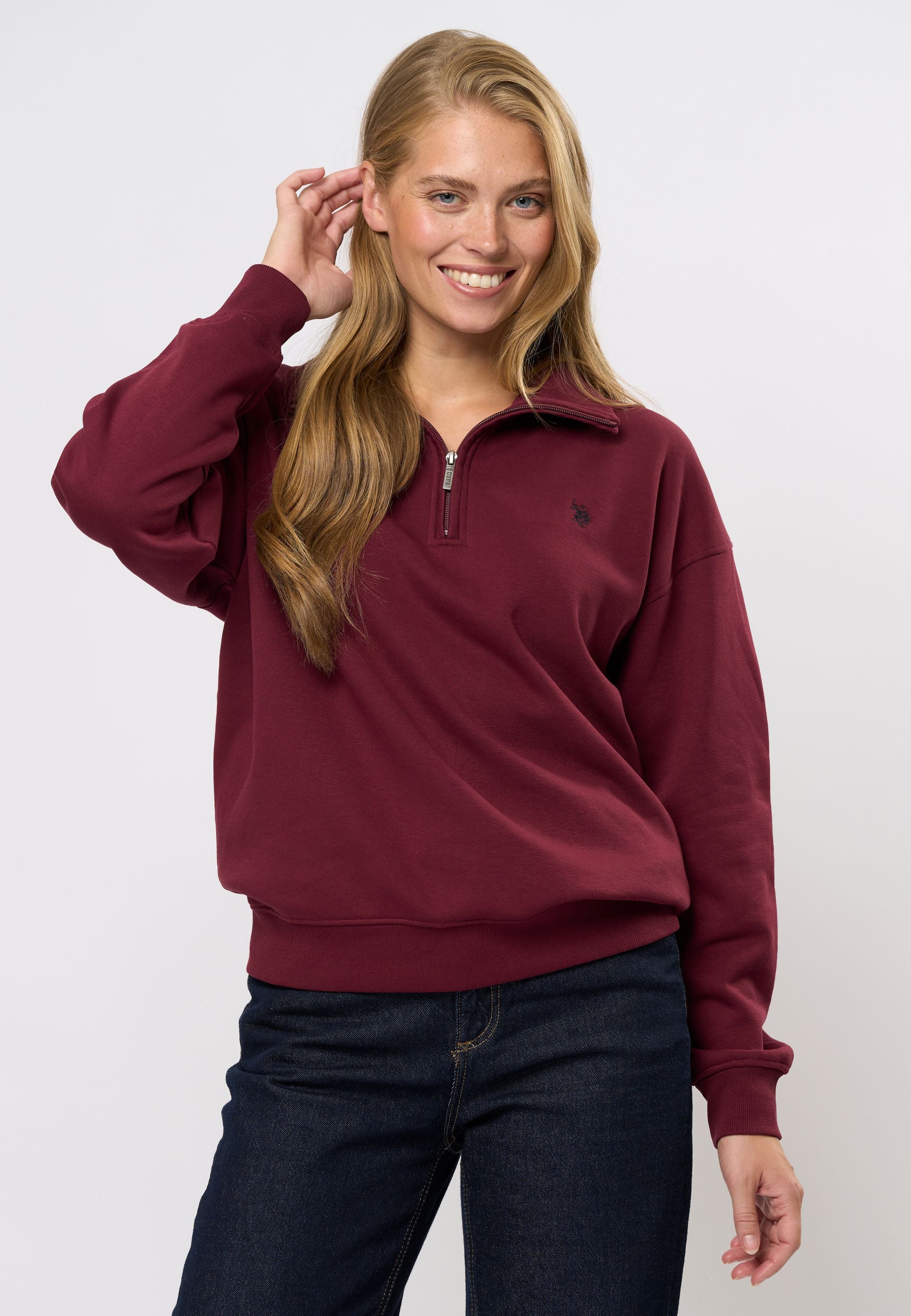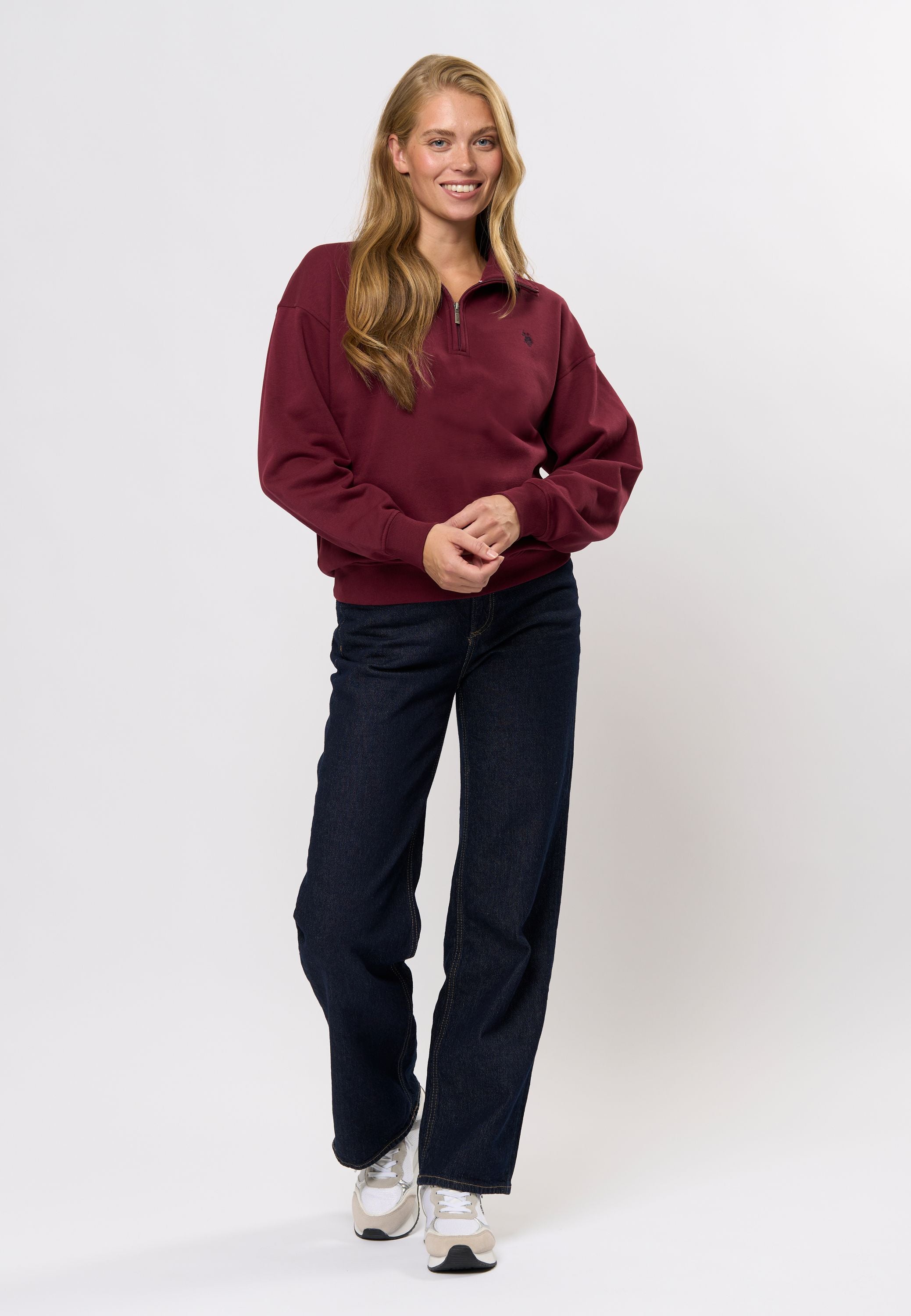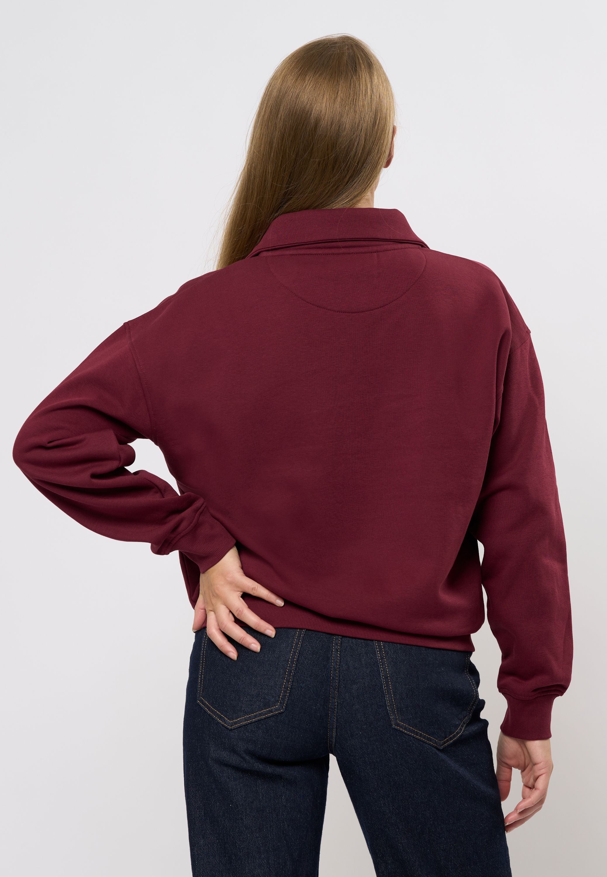 Katie är en avslappnad half-zip sweatshirt med ett klassiskt och sportigt uttryck. Den höga kragen kan stå upp för en markant look eller vikas ner så att den ligger platt och ger ett mer avslappnat intryck. Dragkedjan tillför en enkel, sportig touch till den mjuka sweatshirten, som fungerar både ensam eller som mellanlager. Den breda ribbade kanten nedtill och vid ärmsluten håller formen och ger en ren finish. Använd den till jeans eller sweatpants för en avslappnad och genomtänkt look.