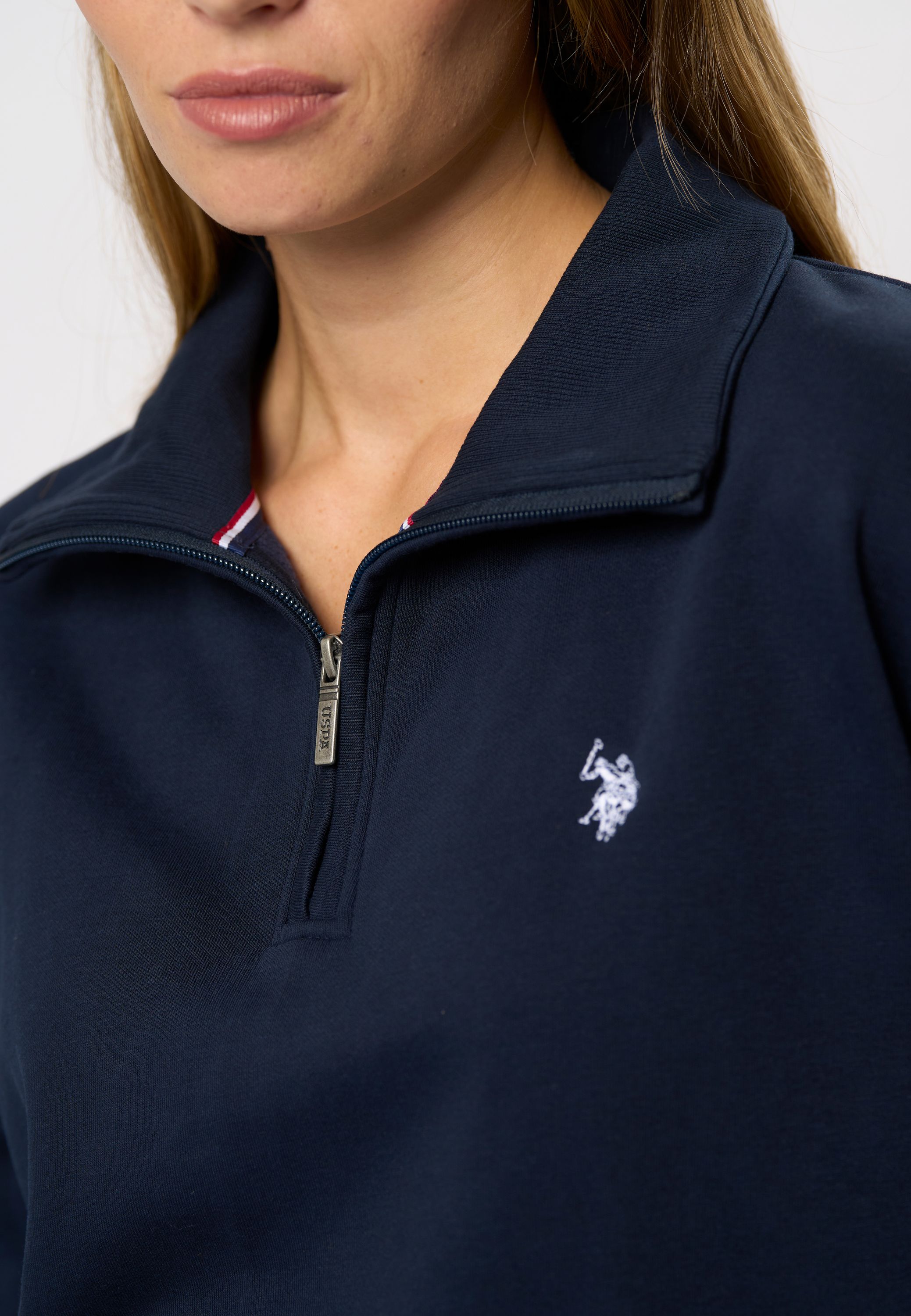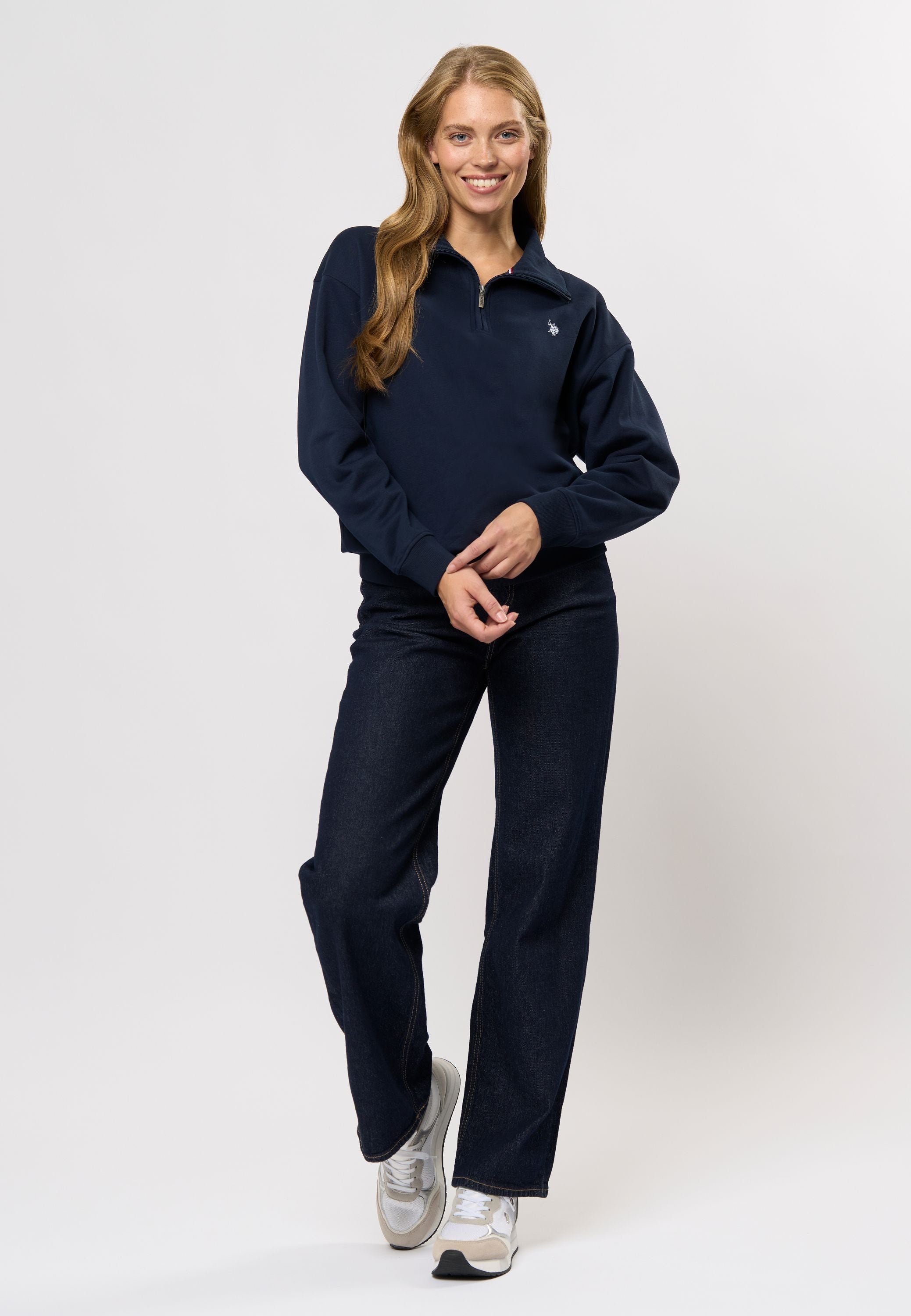 Katie är en avslappnad sweatshirt med halv dragkedja med en klassisk och sportig look. Den höga kragen kan ställas upp för en distinkt look eller böjas ner så att den ligger platt och ger ett mer avslappnat uttryck. Dragkedjan ger en enkel, sportig twist till den mjuka sweatshirten, som fungerar både ensam eller som ett mellanlager. Den breda ribbningen nertill och vid ärmarna håller formen och ger en ren finish. Använd den med jeans eller träningsbyxor för en avslappnad och komplett look.