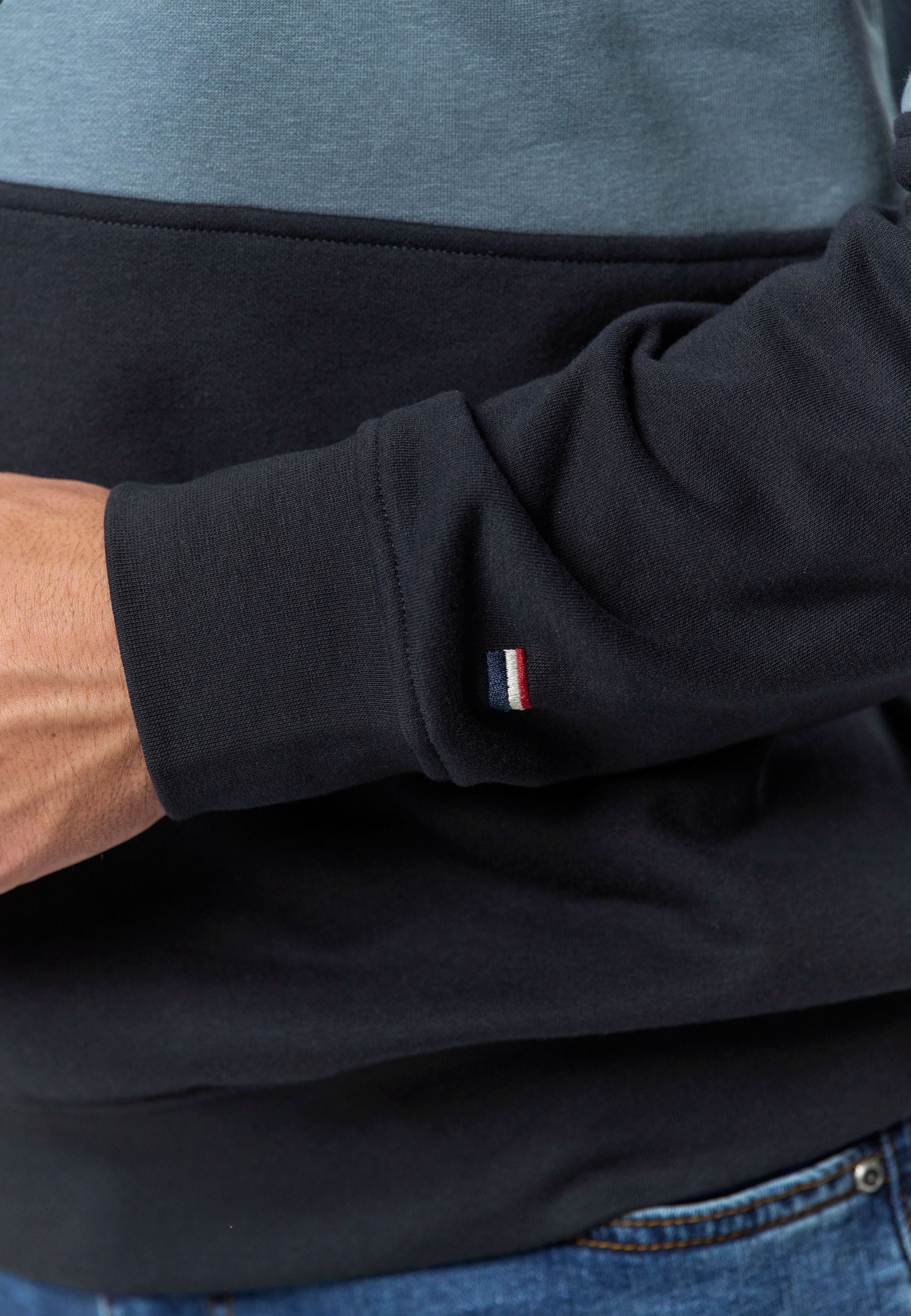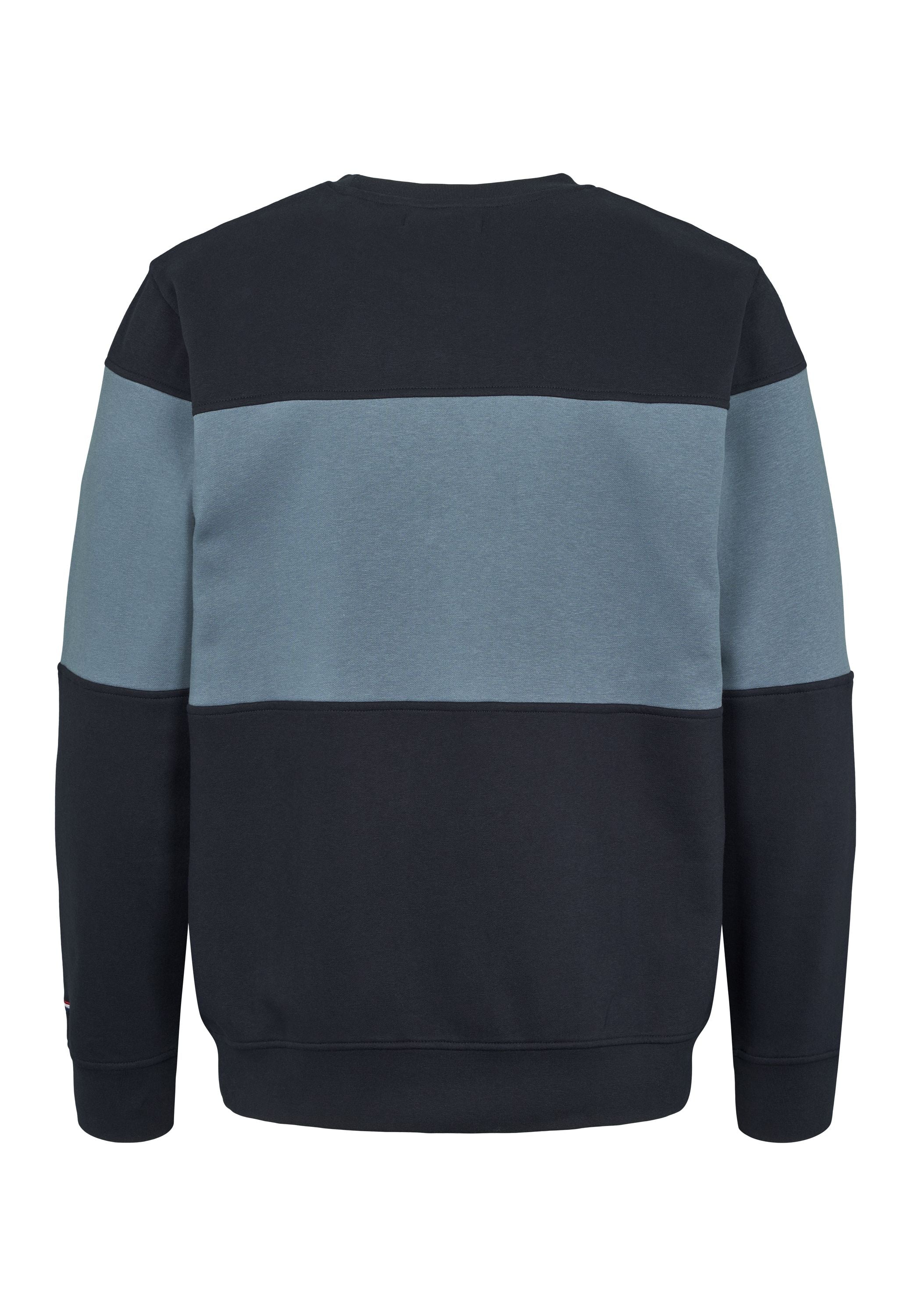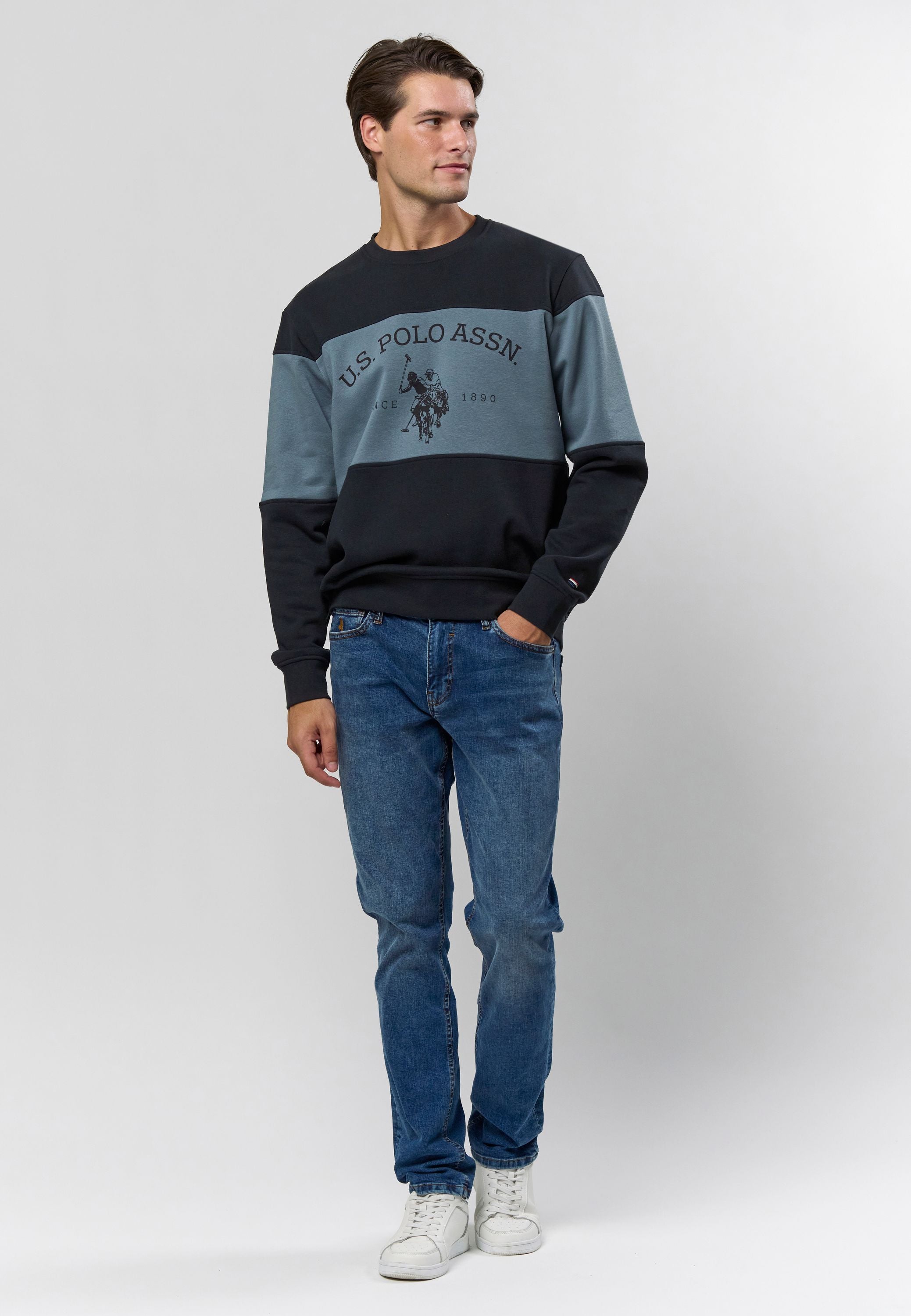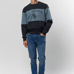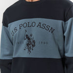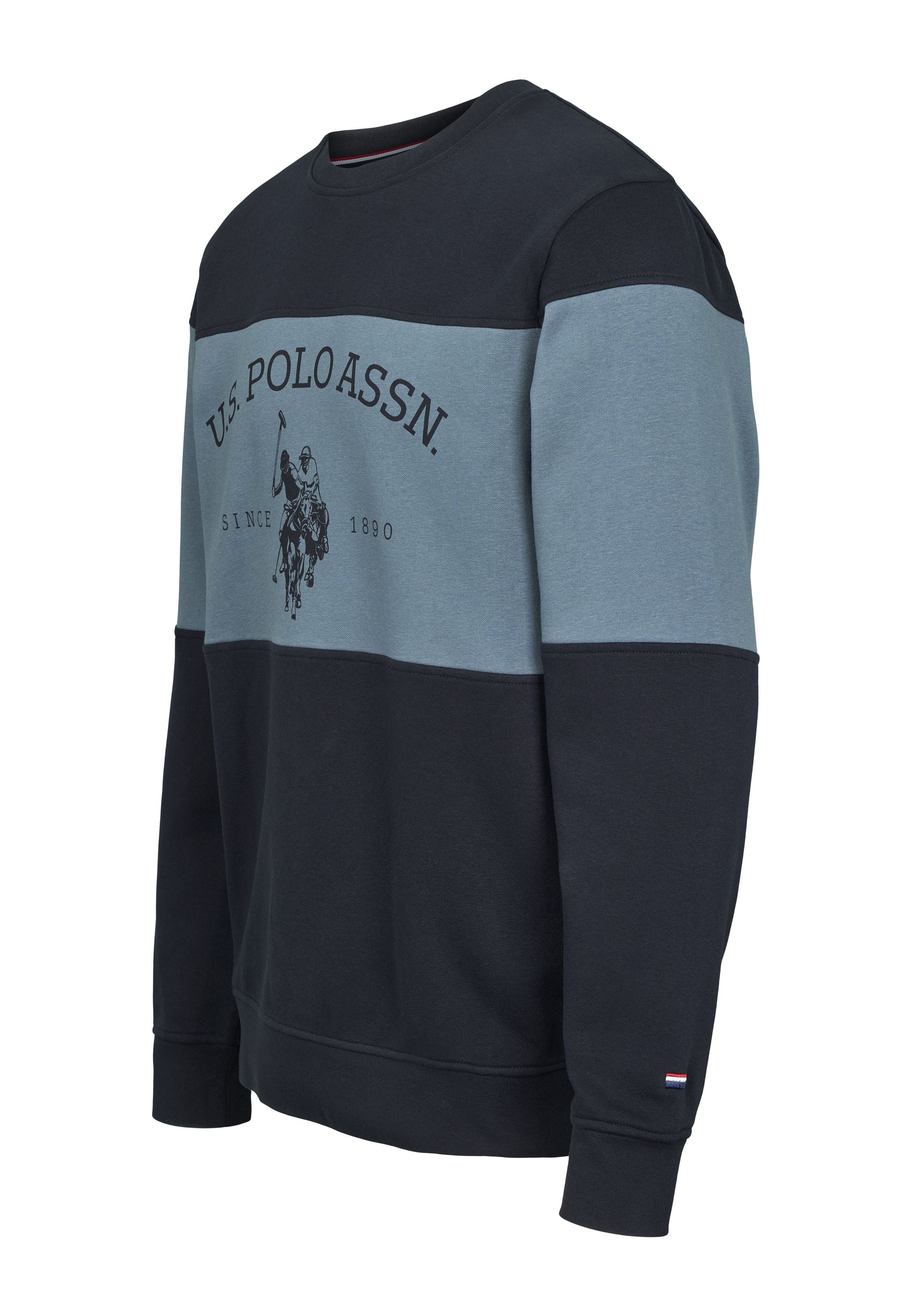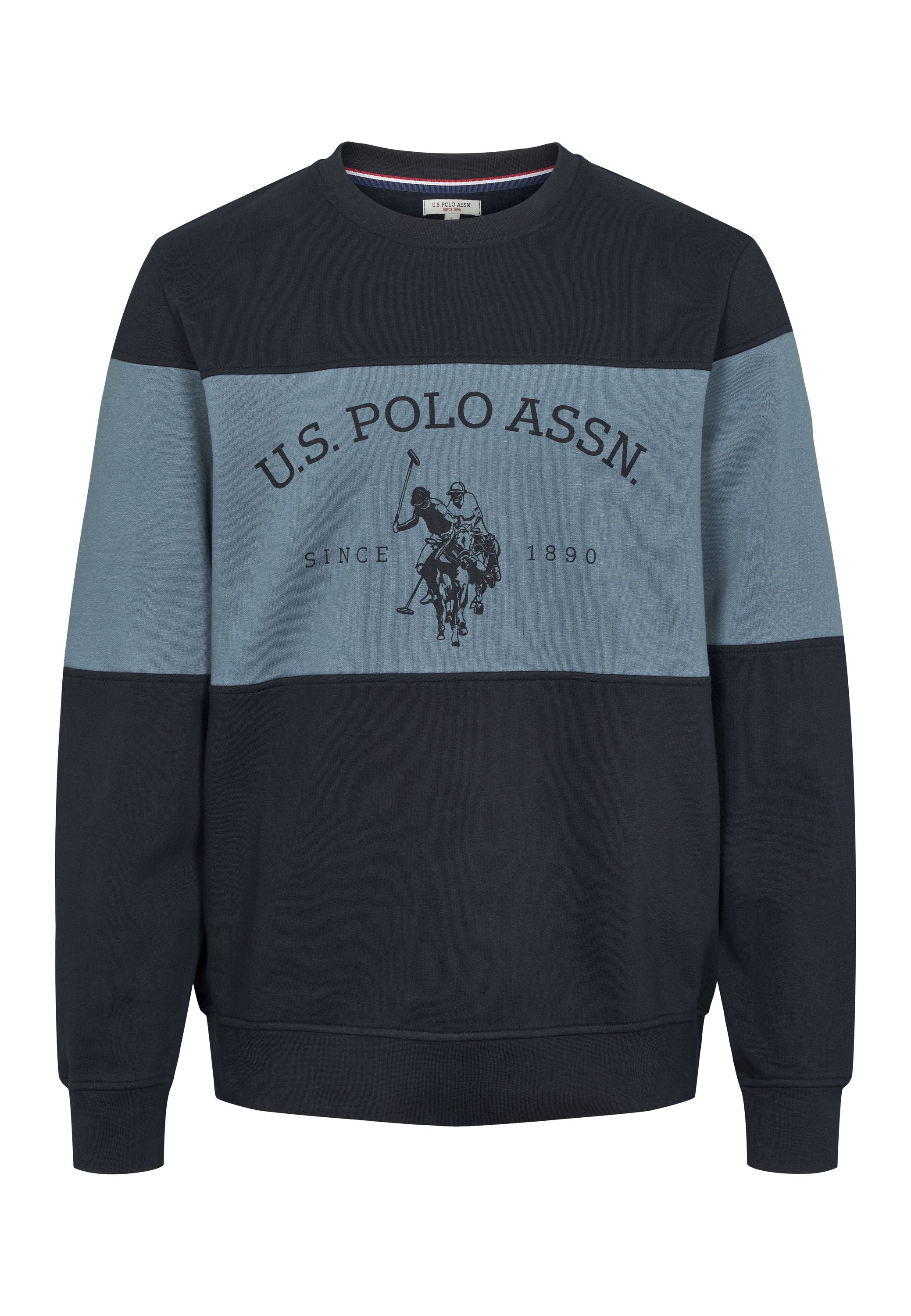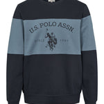 Cay sweatshirt från U.S. Polo Assn. kombinerar sportiga detaljer med en tidlös design. Modellen har en distinkt colorblock-look i marinblå och blå nyanser, prydd av ett stort logotyptryck på bröstet. Ribbstickade kanter vid hals, ärmar och nederkant ger en bekväm passform, medan den mjuka bomullsblandningen gör den bekväm att bära hela dagen. En sweatshirt som fungerar både till jeans och avslappnade byxor.