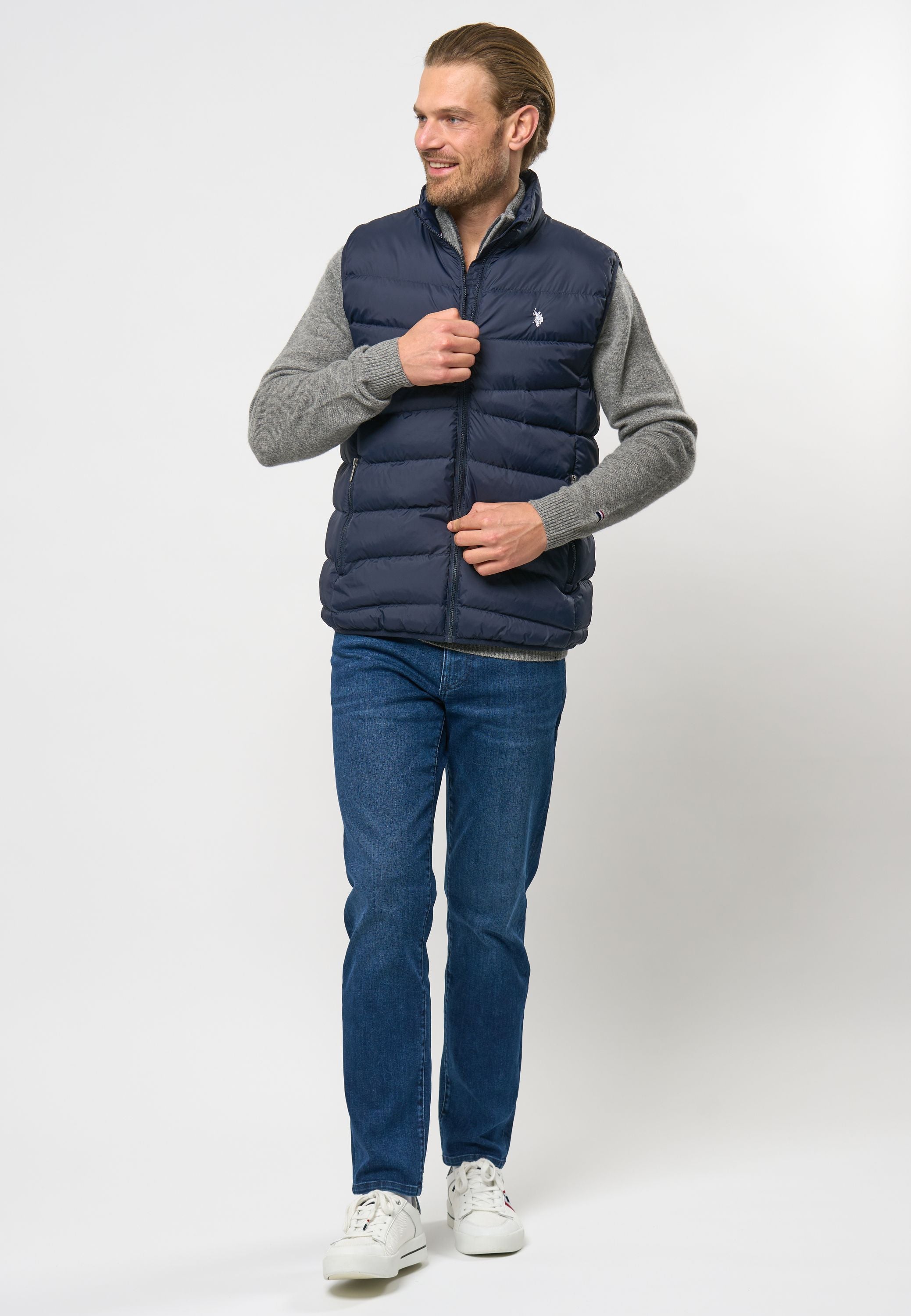 Eugene är en lätt och funktionell quiltad väst, idealisk för lager under övergångsperioderna. Västen har hög krage och dragkedja fram, vilket ger extra skydd mot vind och väder. Den lätta stoppningen säkerställer både värme och komfort utan att kännas tung. Eugene har en broderad logotyp på bröstet för en snygg touch.